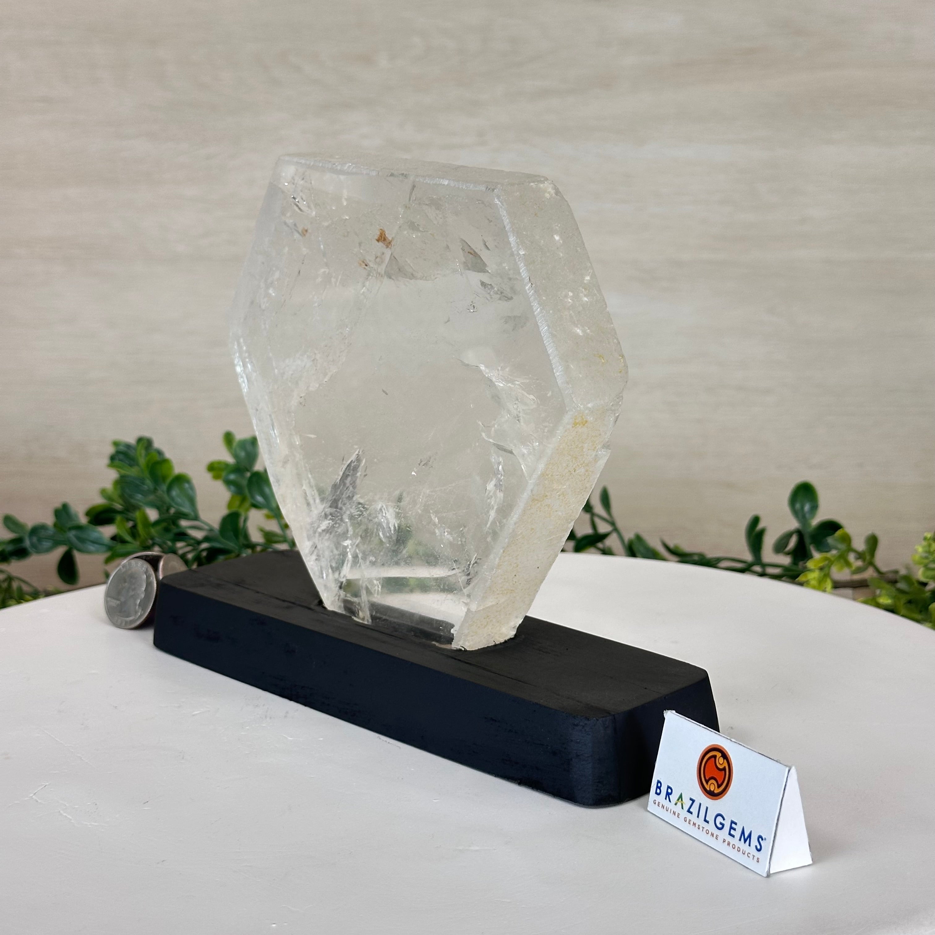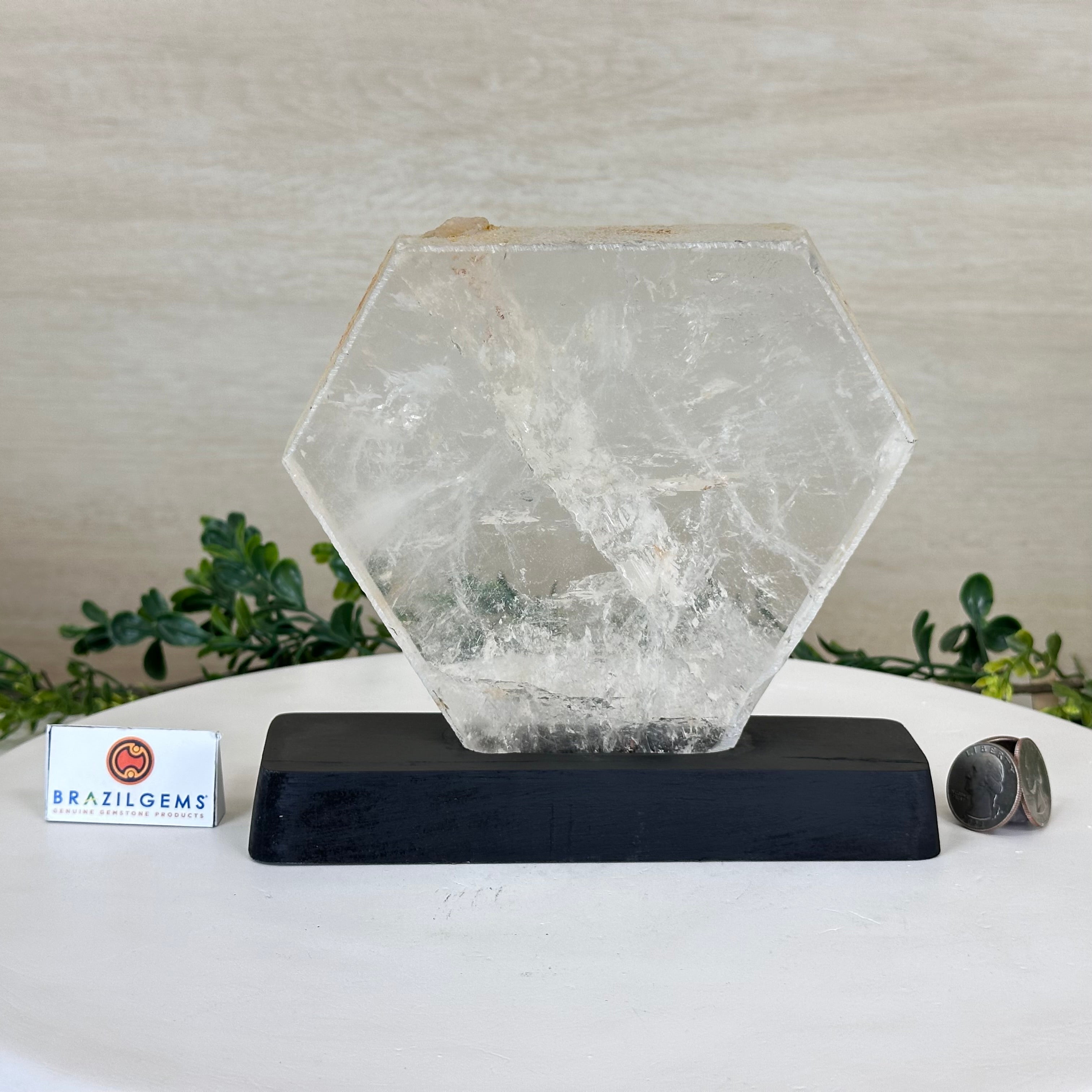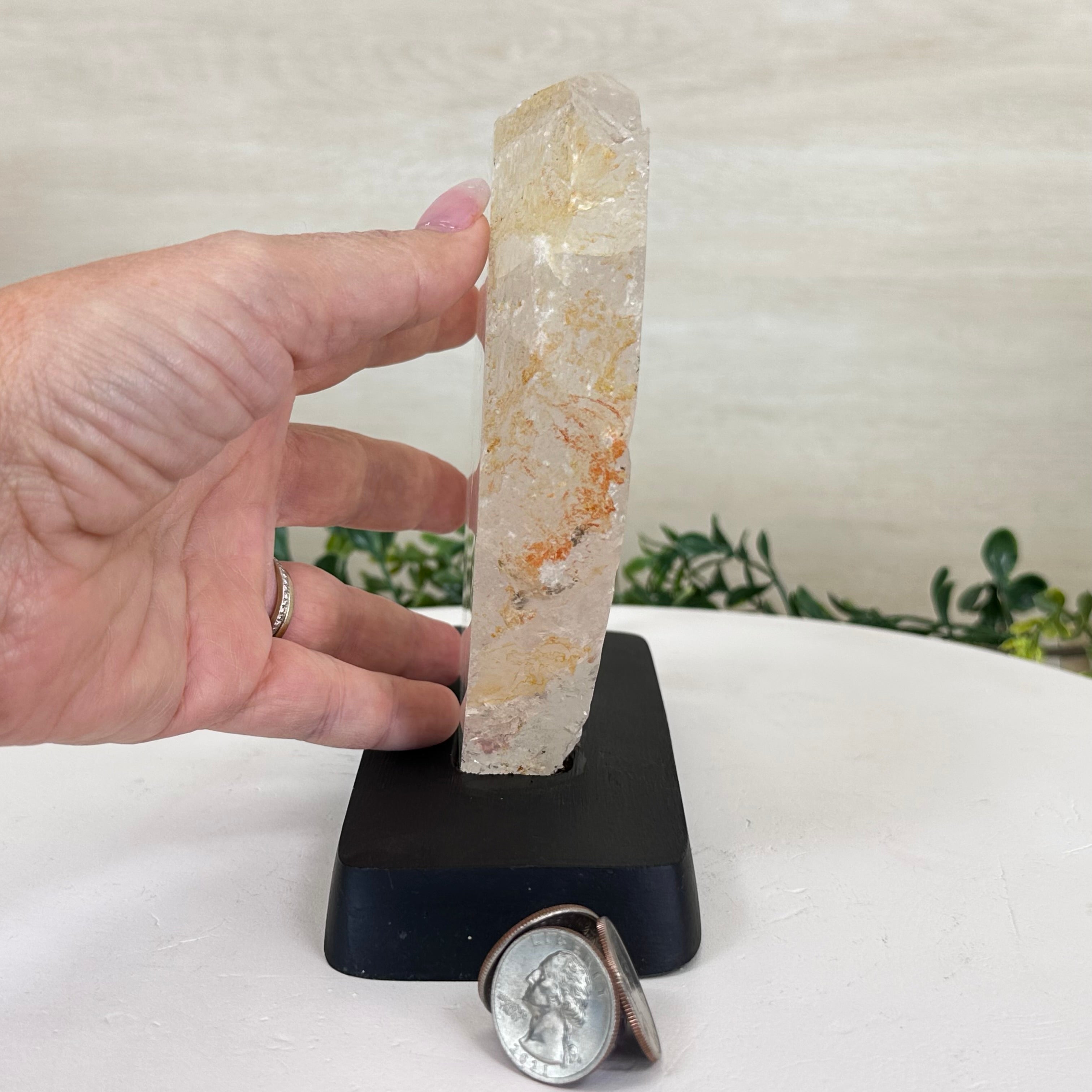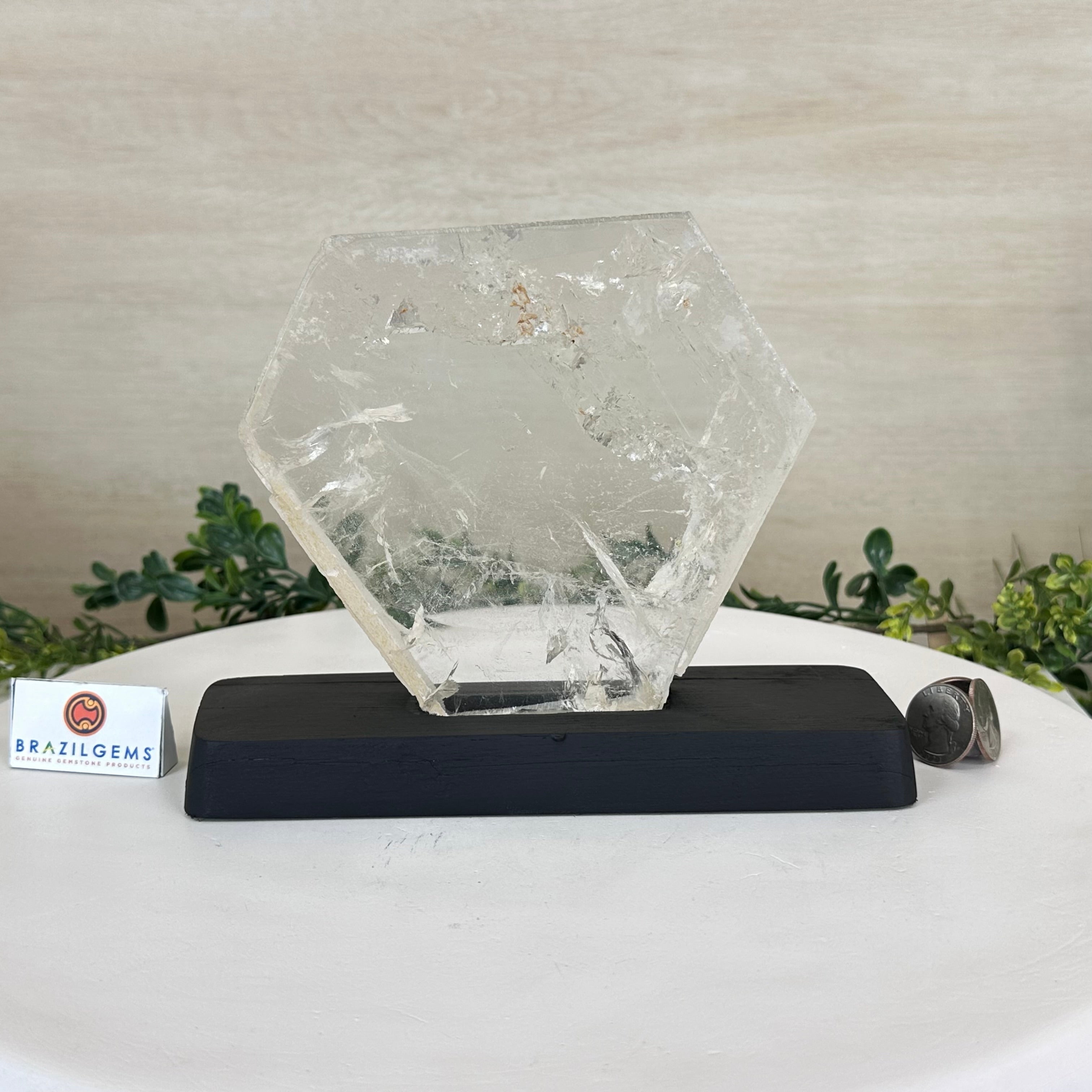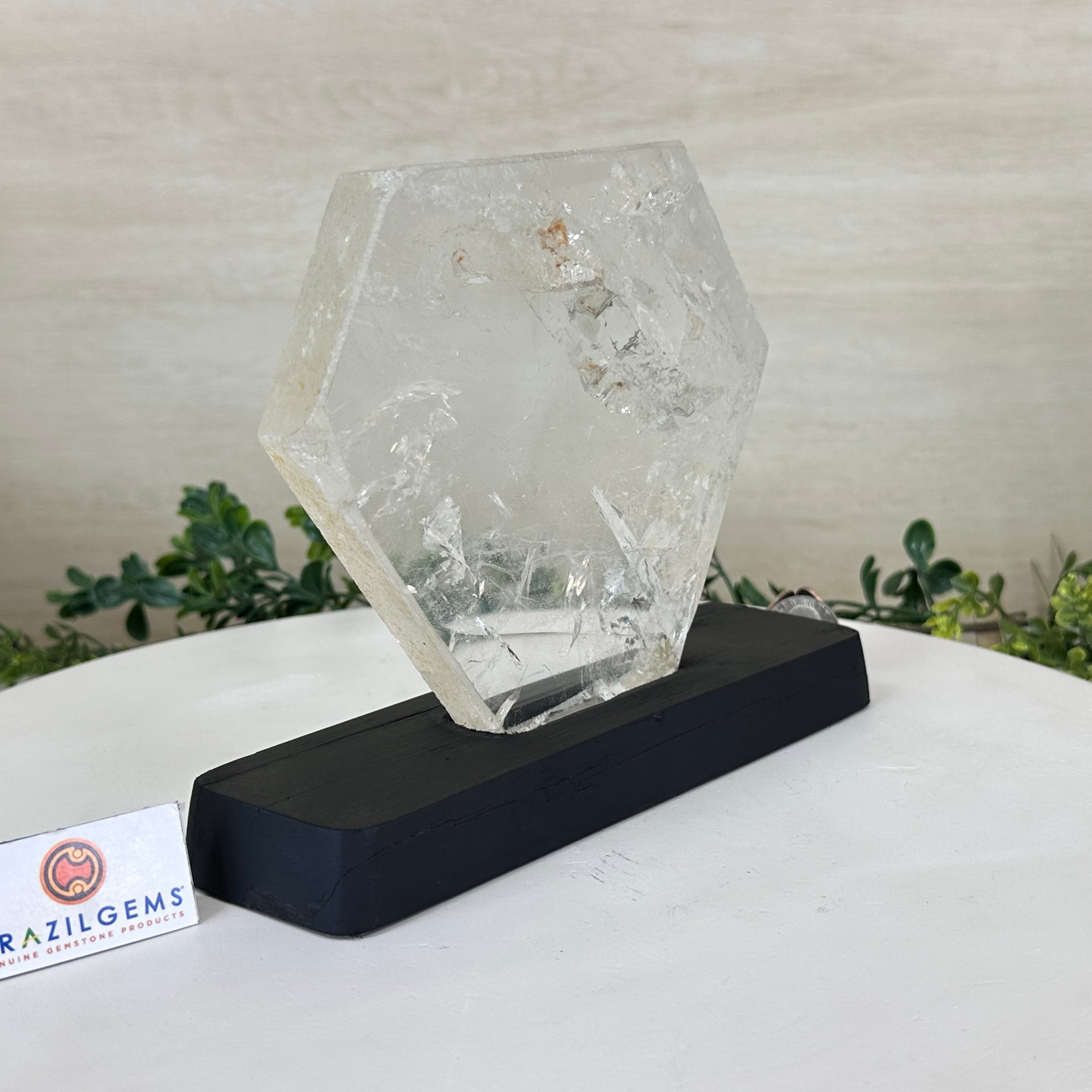 Clear Quartz Polished Slice on a Wood Base 7.7" Tall #6100CQ-001