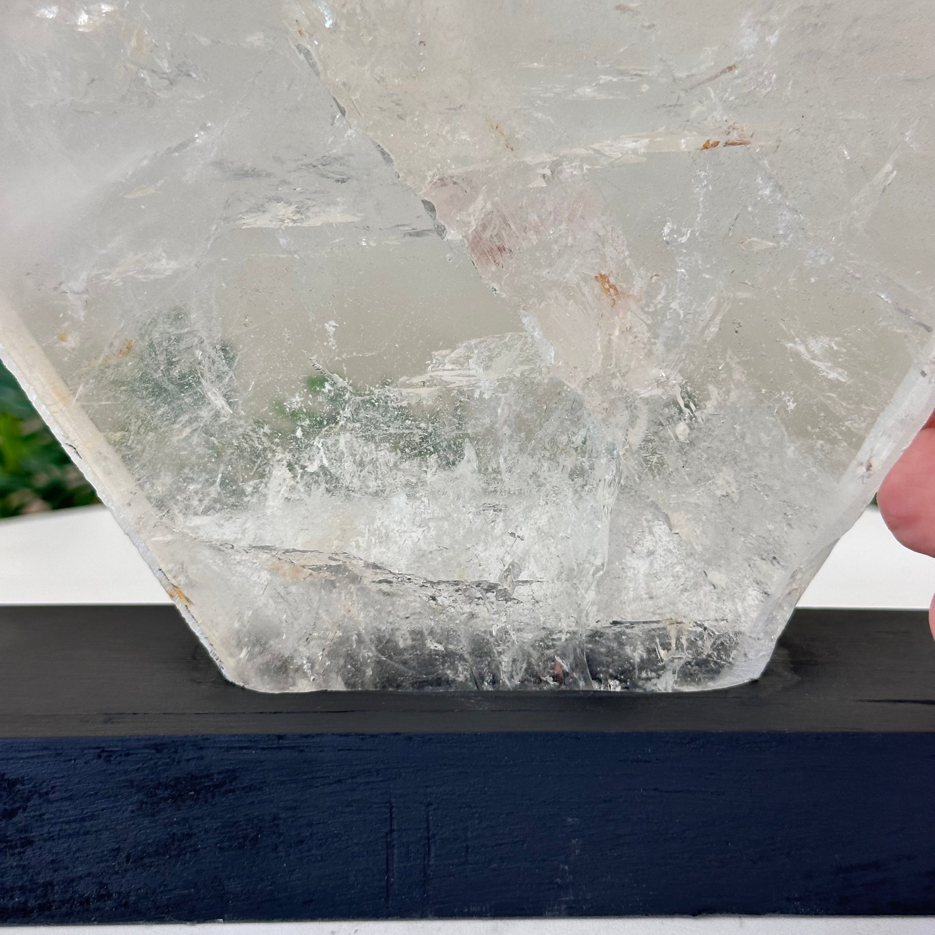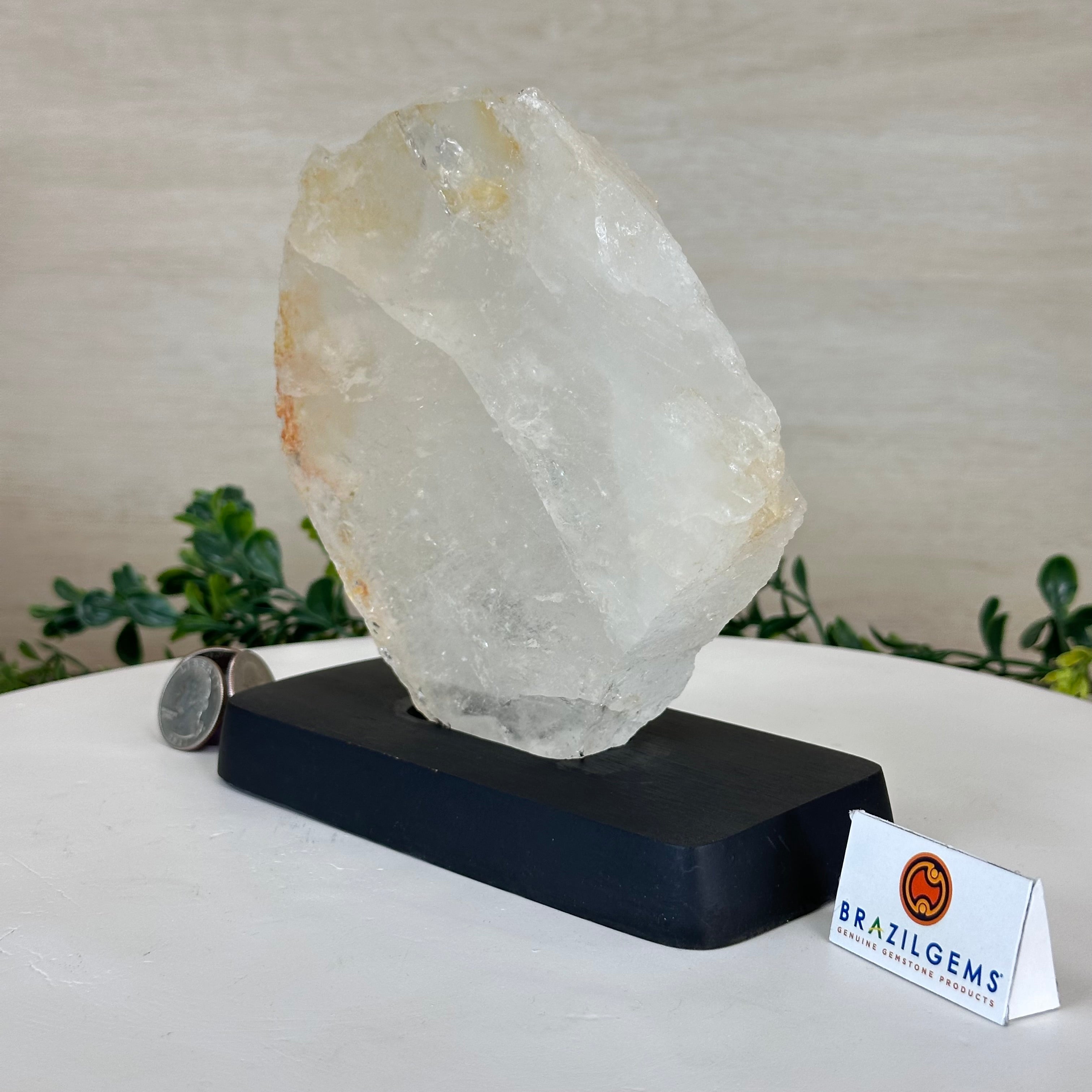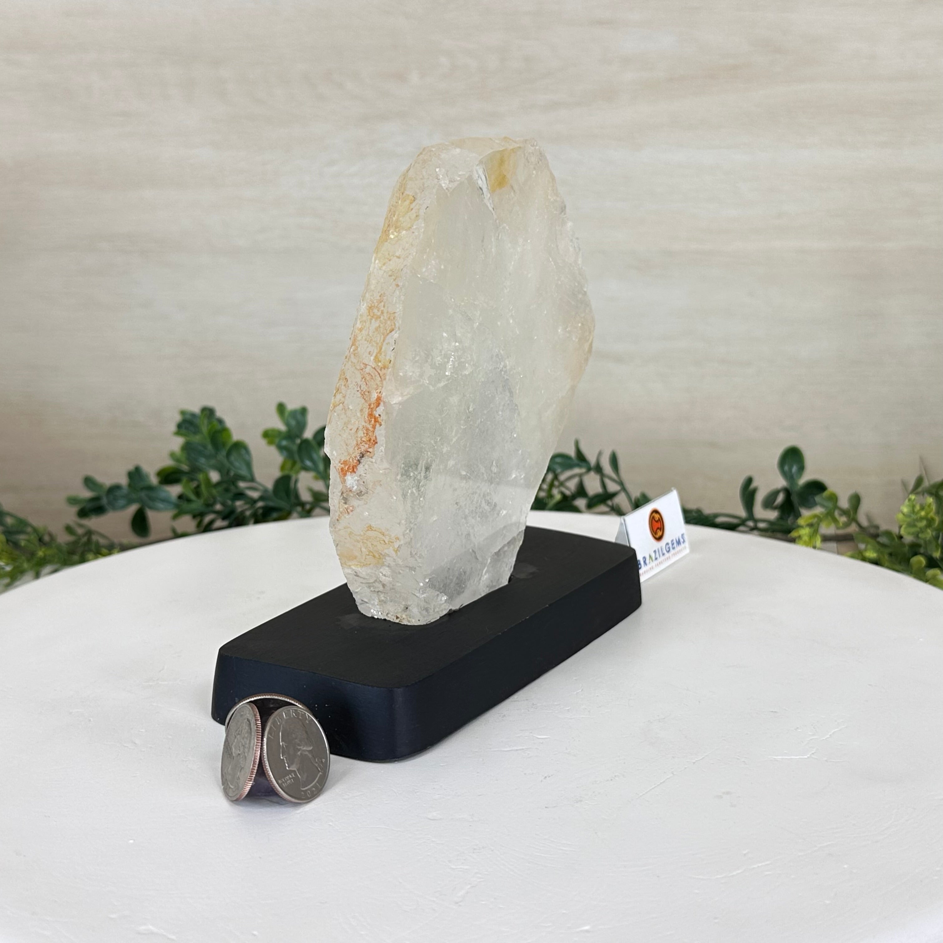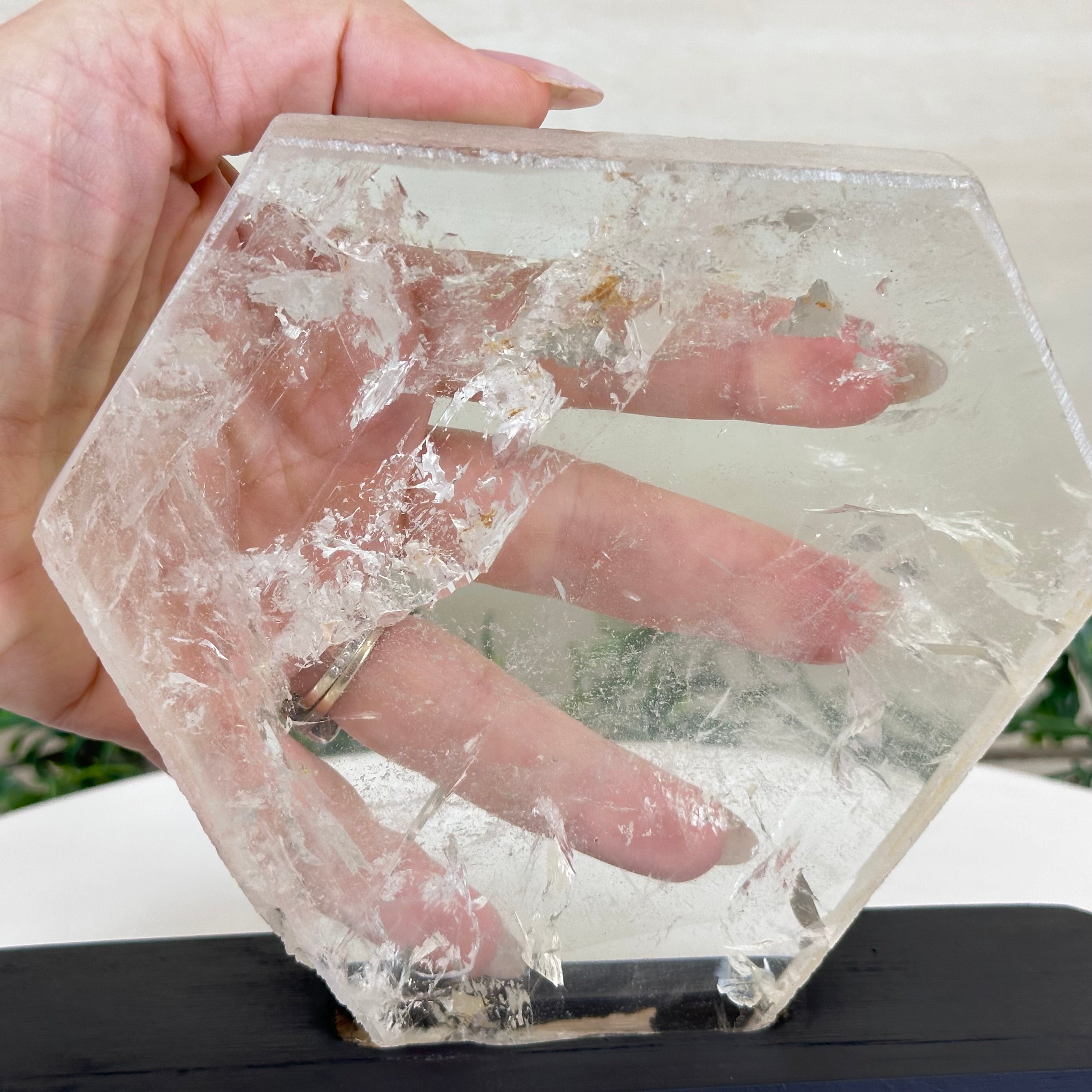Clear Quartz Polished Slice on a Wood Base 7.7" Tall #6100CQ-001