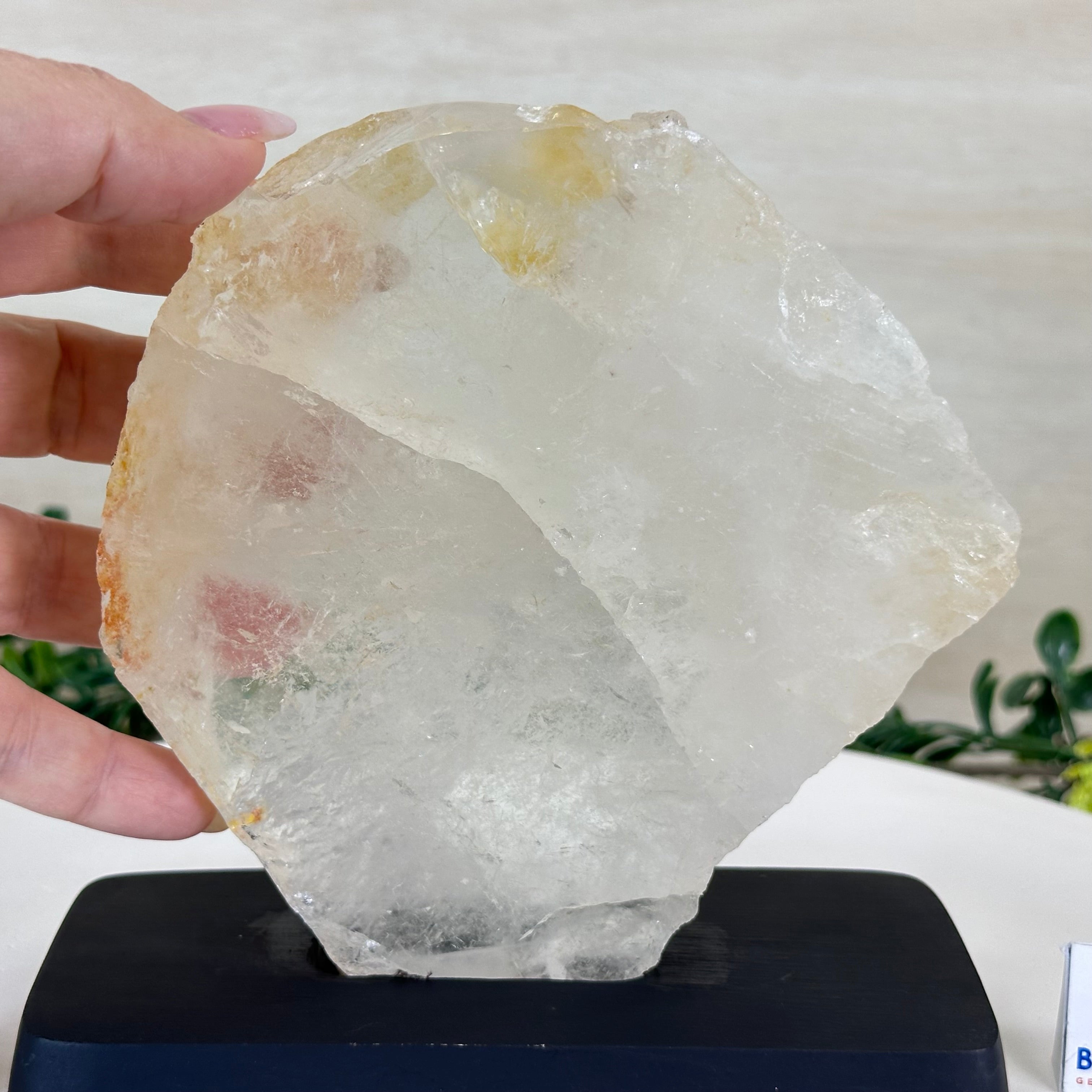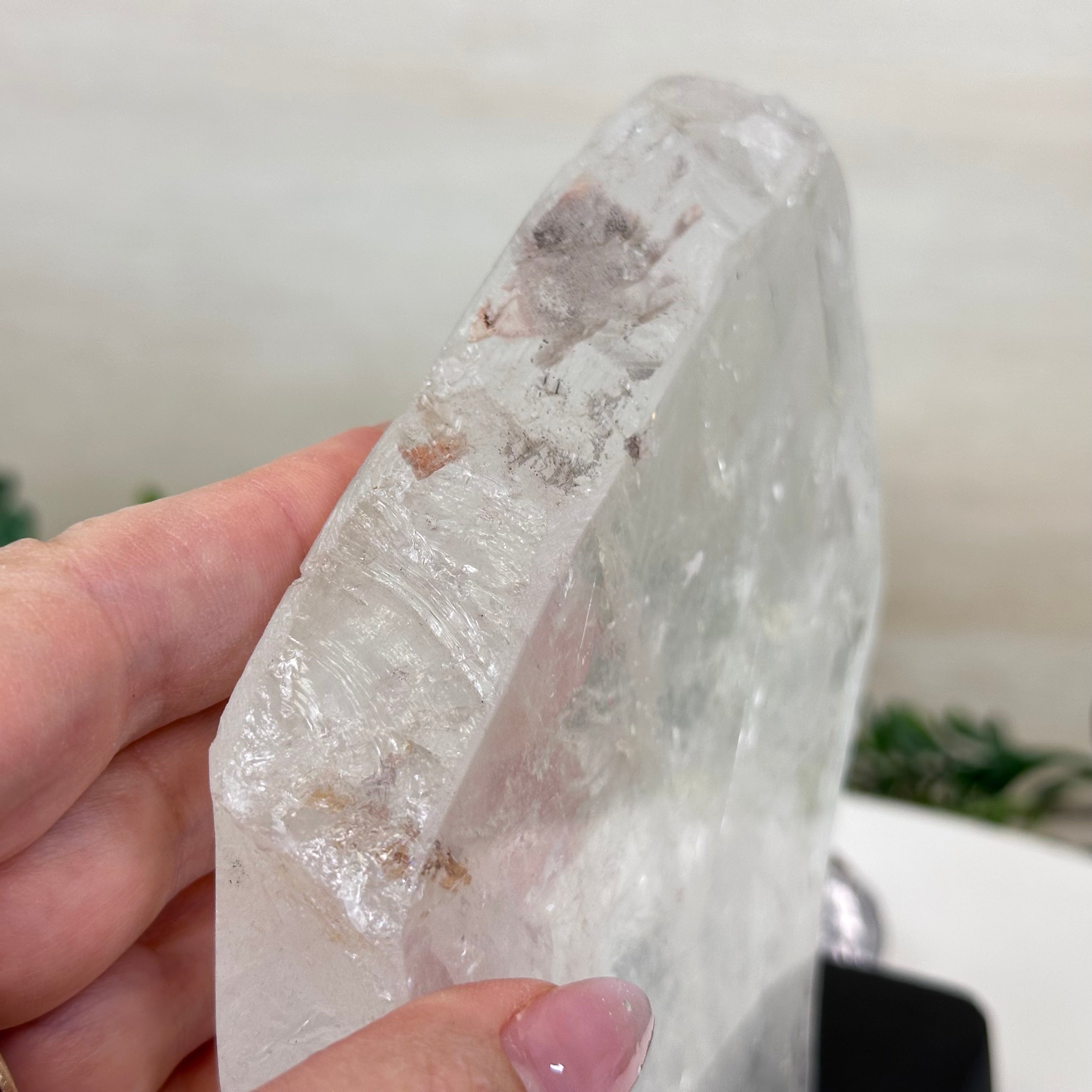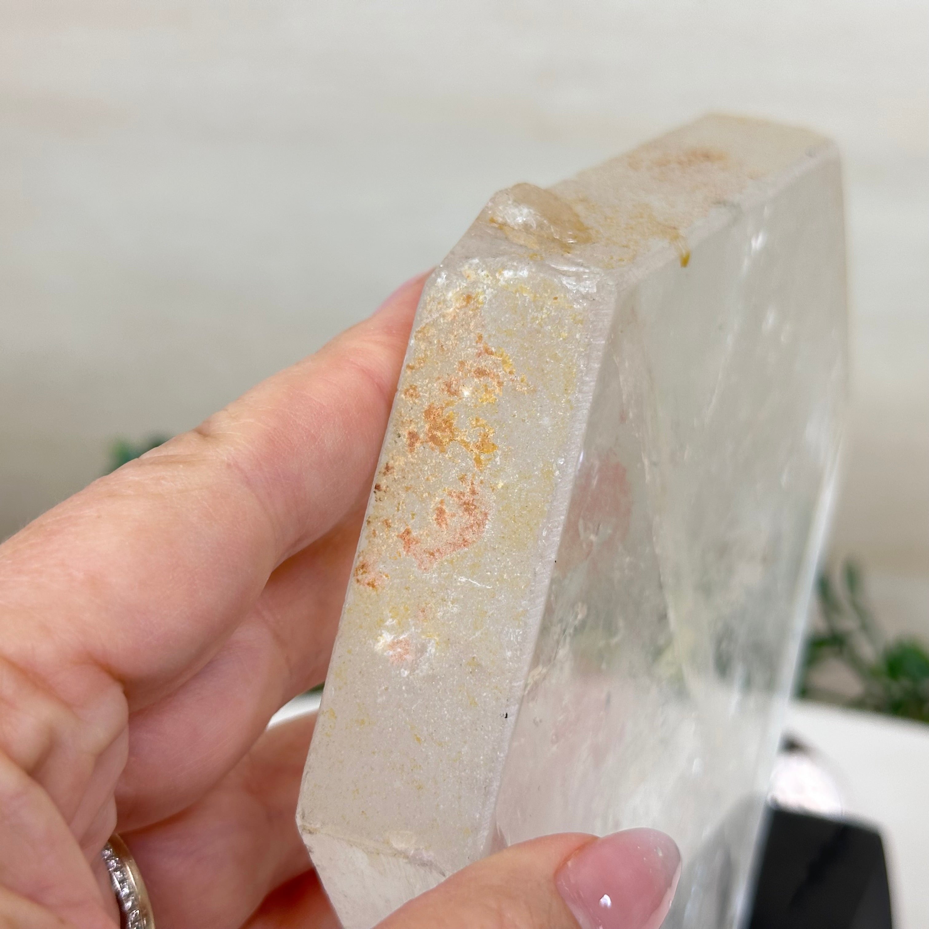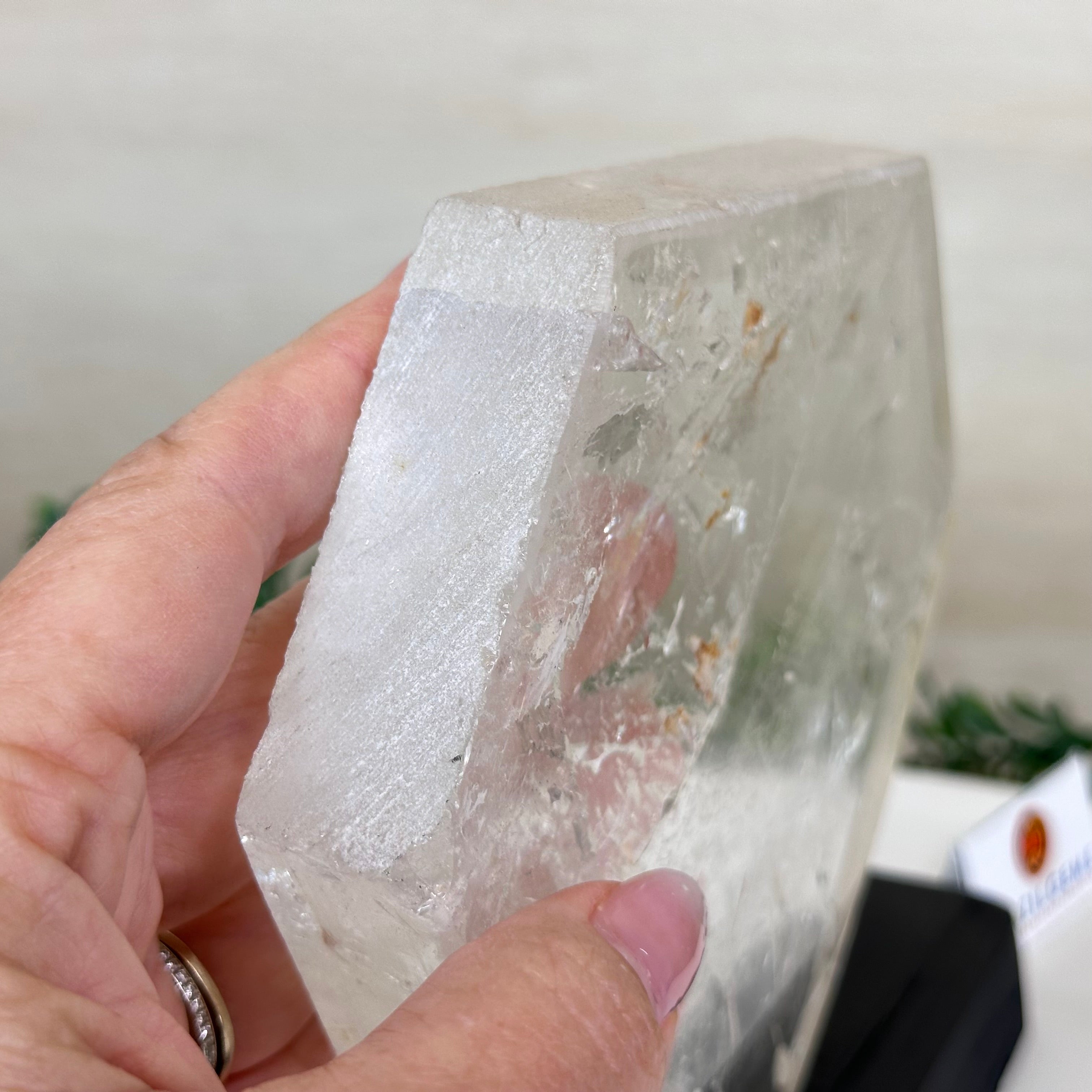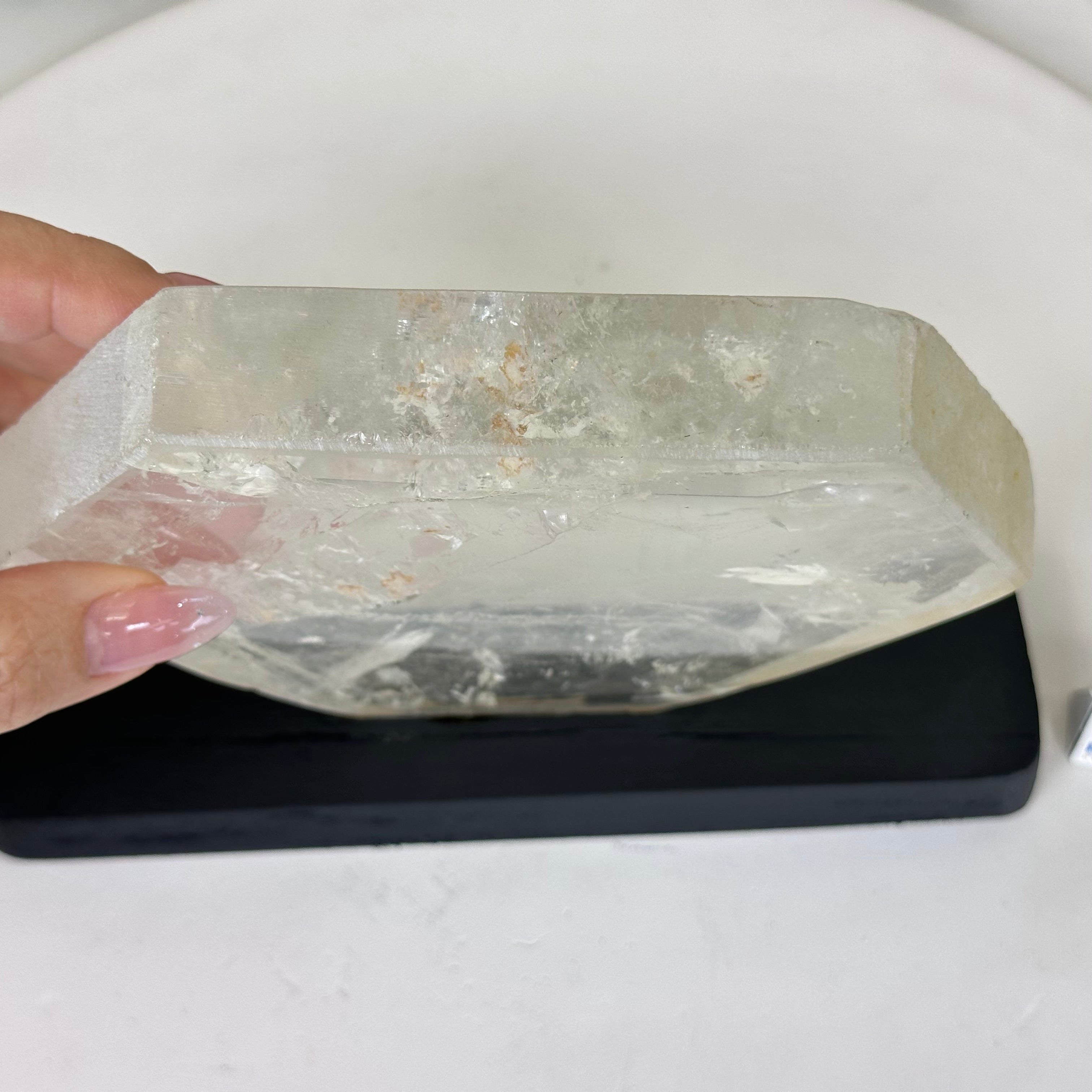 Clear Quartz Polished Slice on a Wood Base 7.7" Tall #6100CQ-001