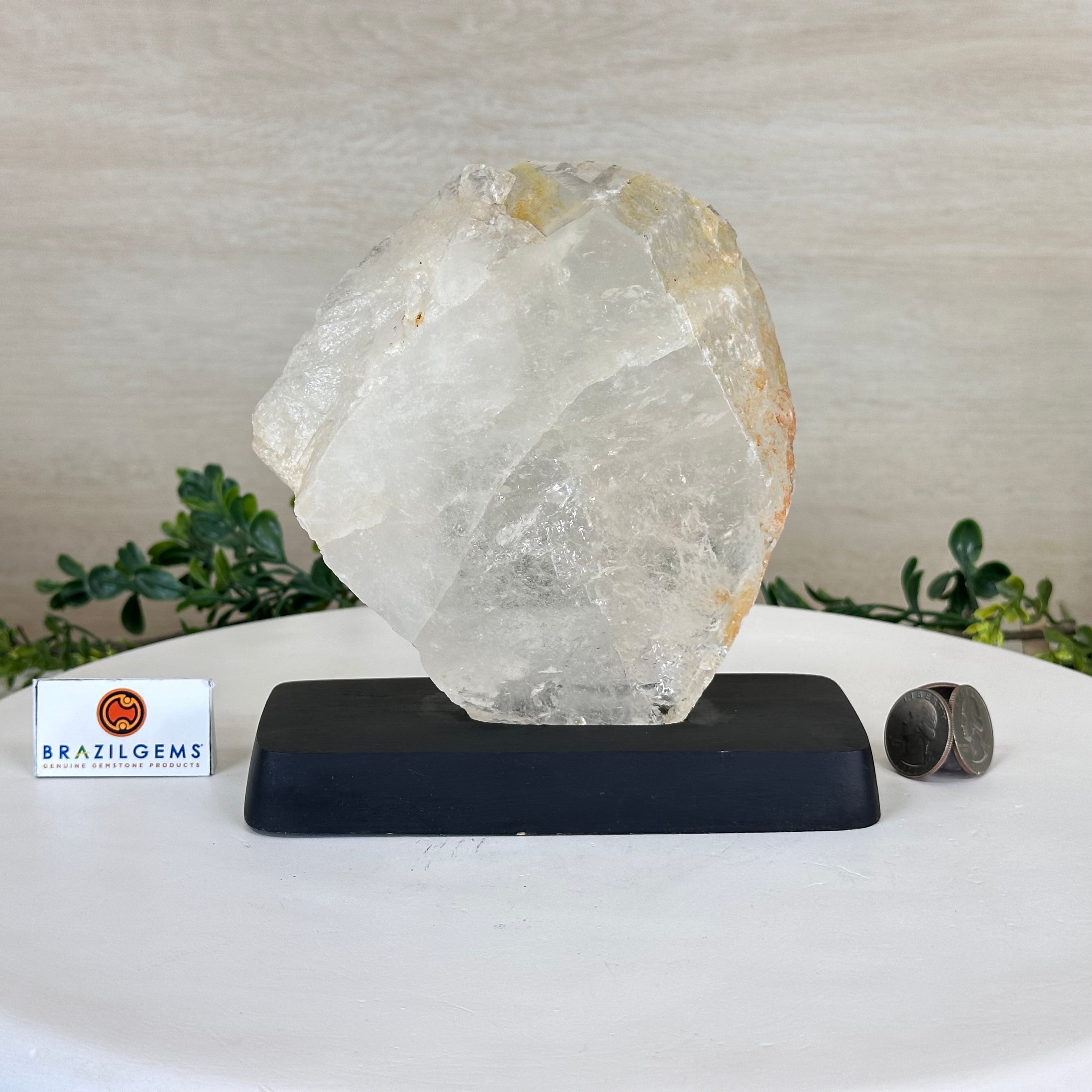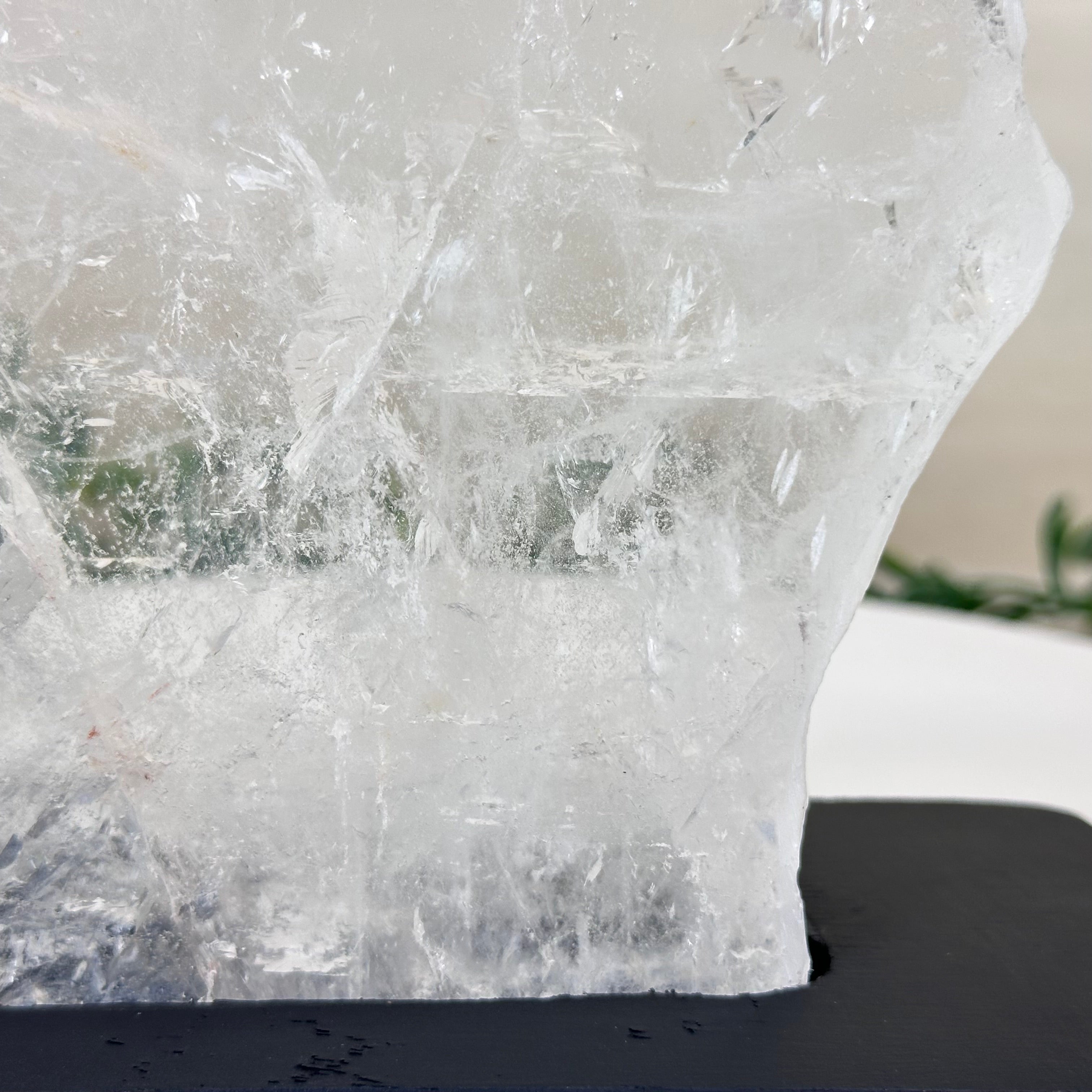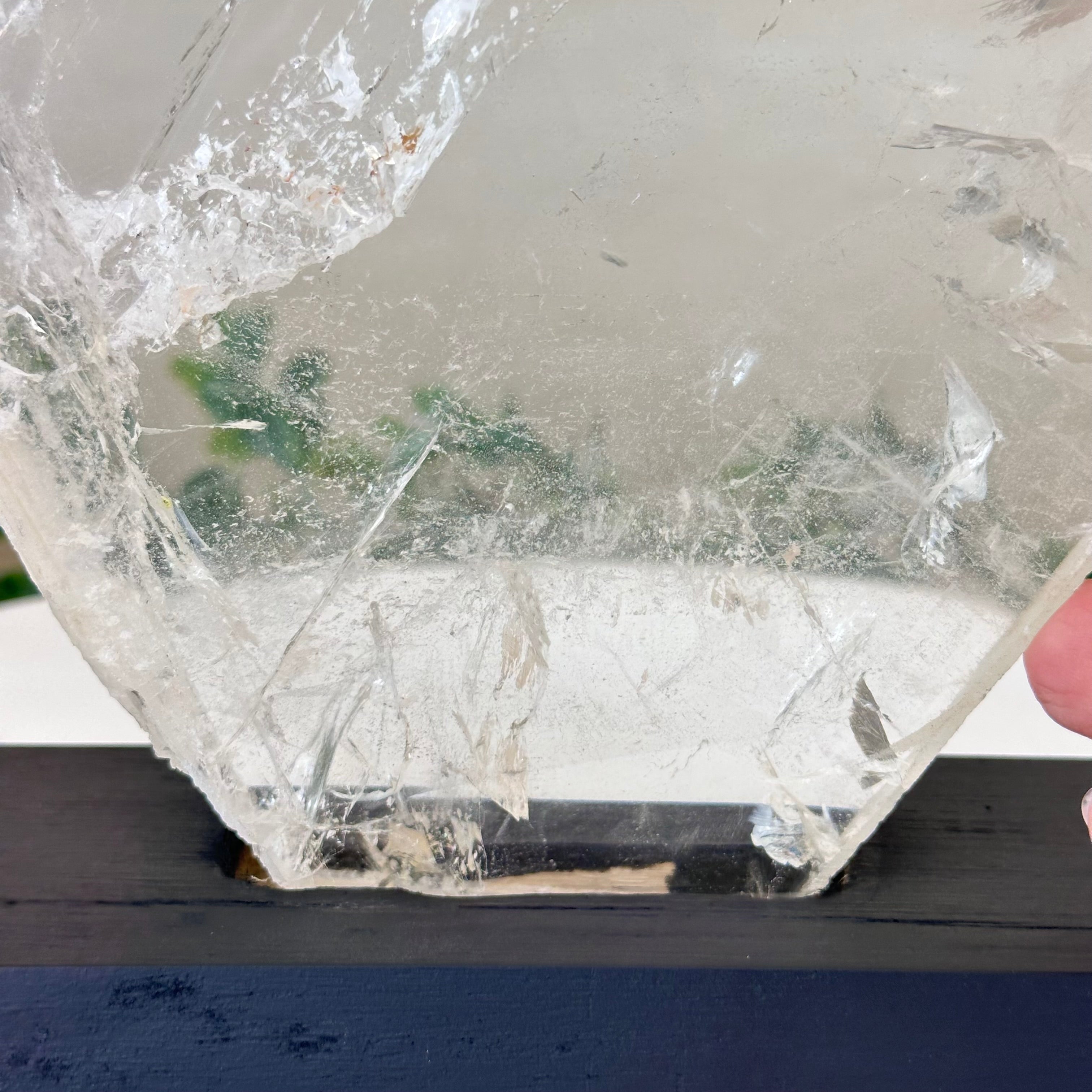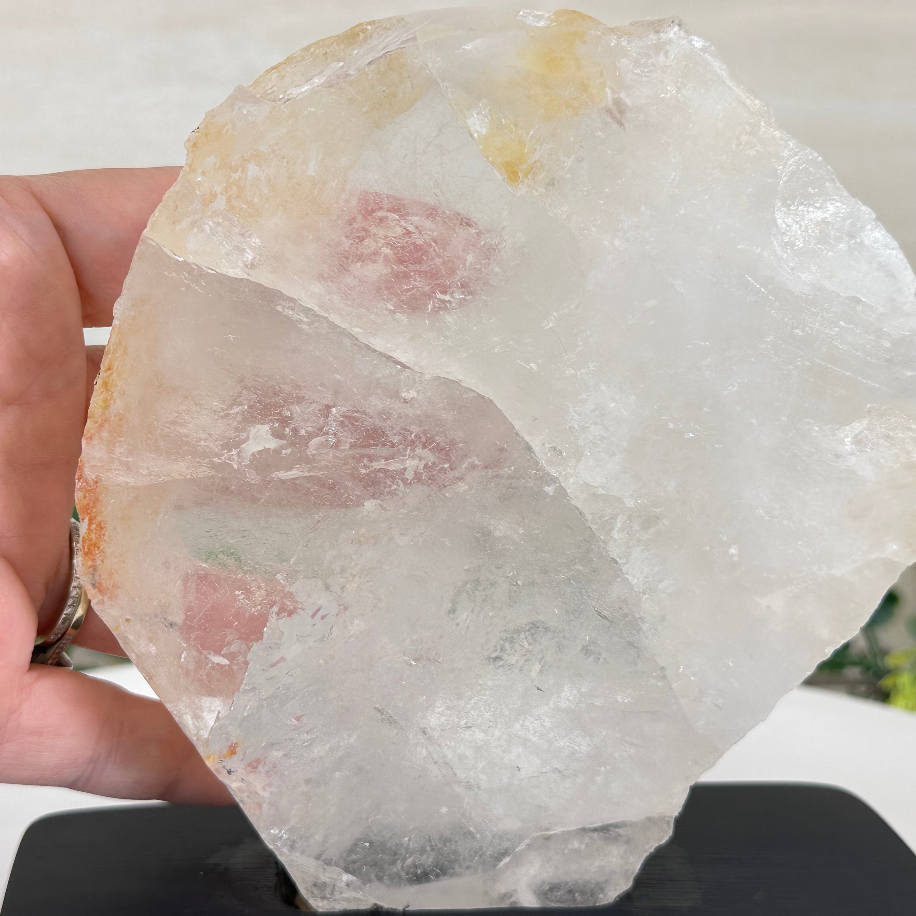 Clear Quartz Polished Slice on a Wood Base 7.7" Tall #6100CQ-001