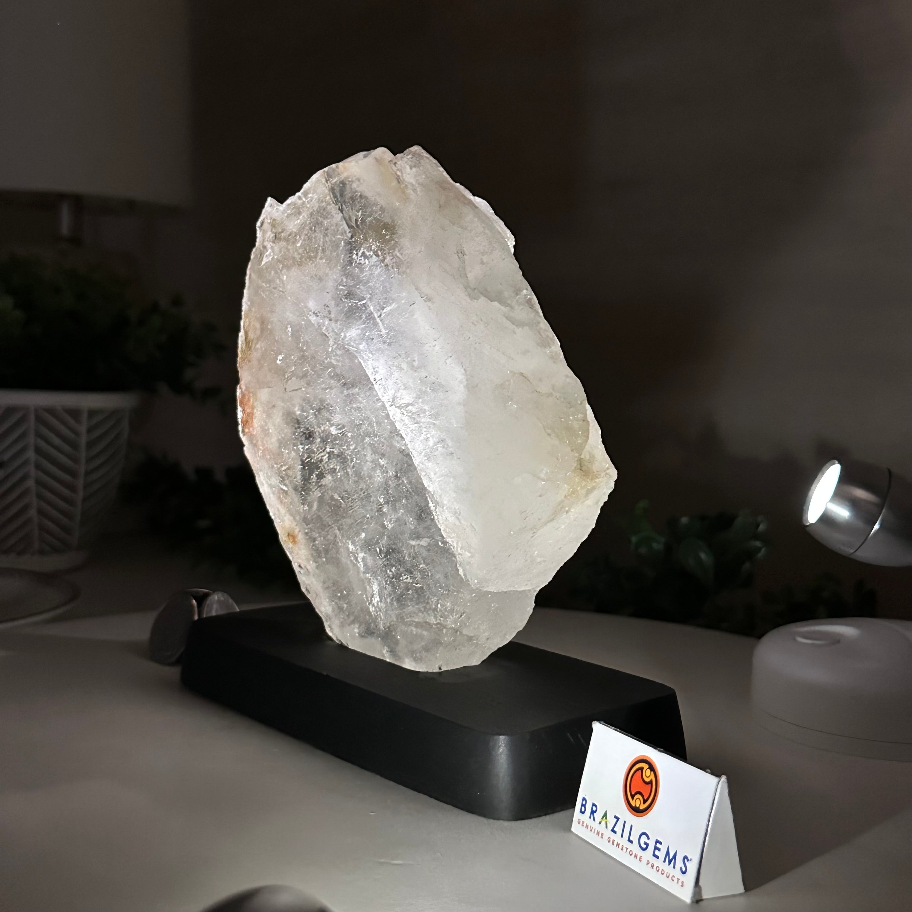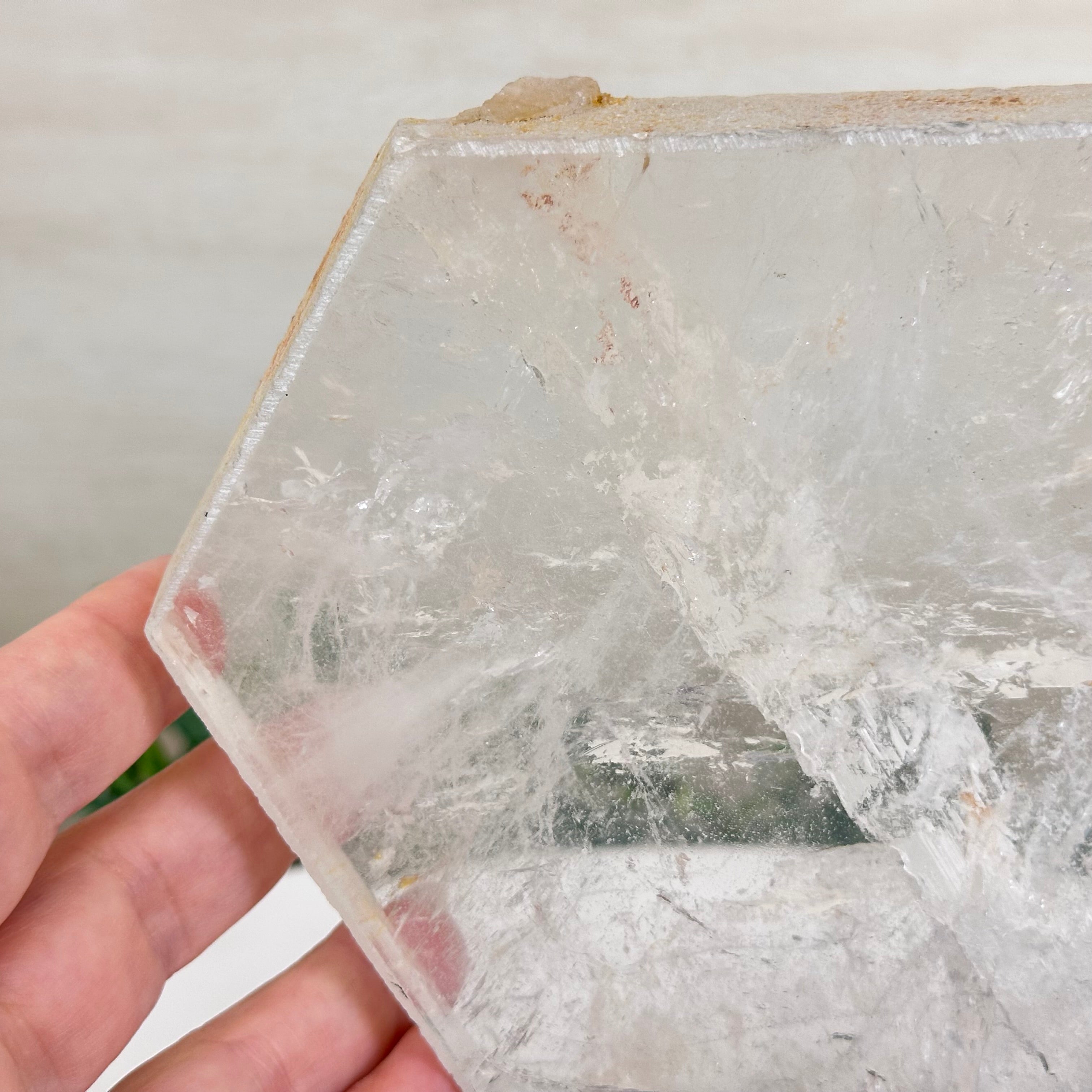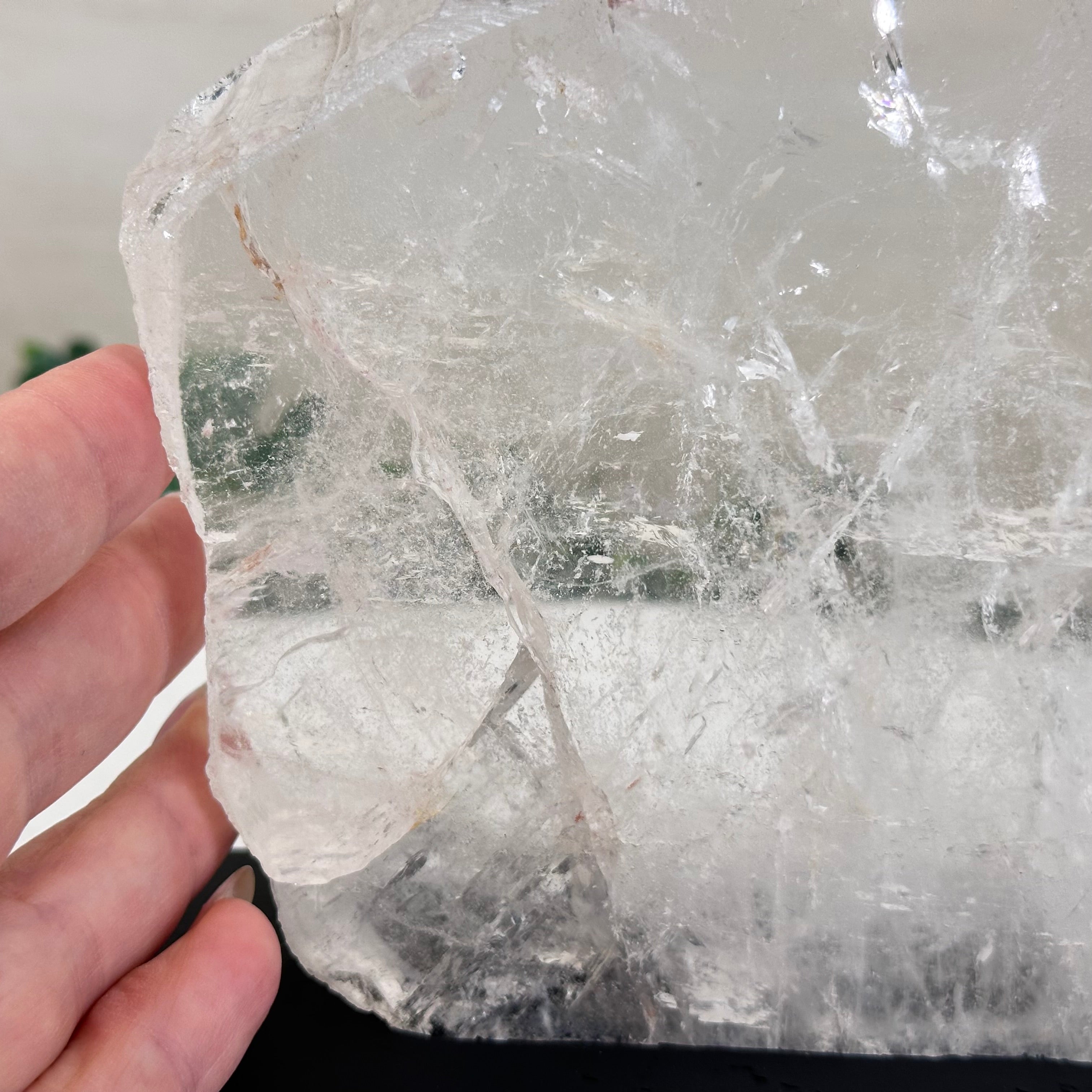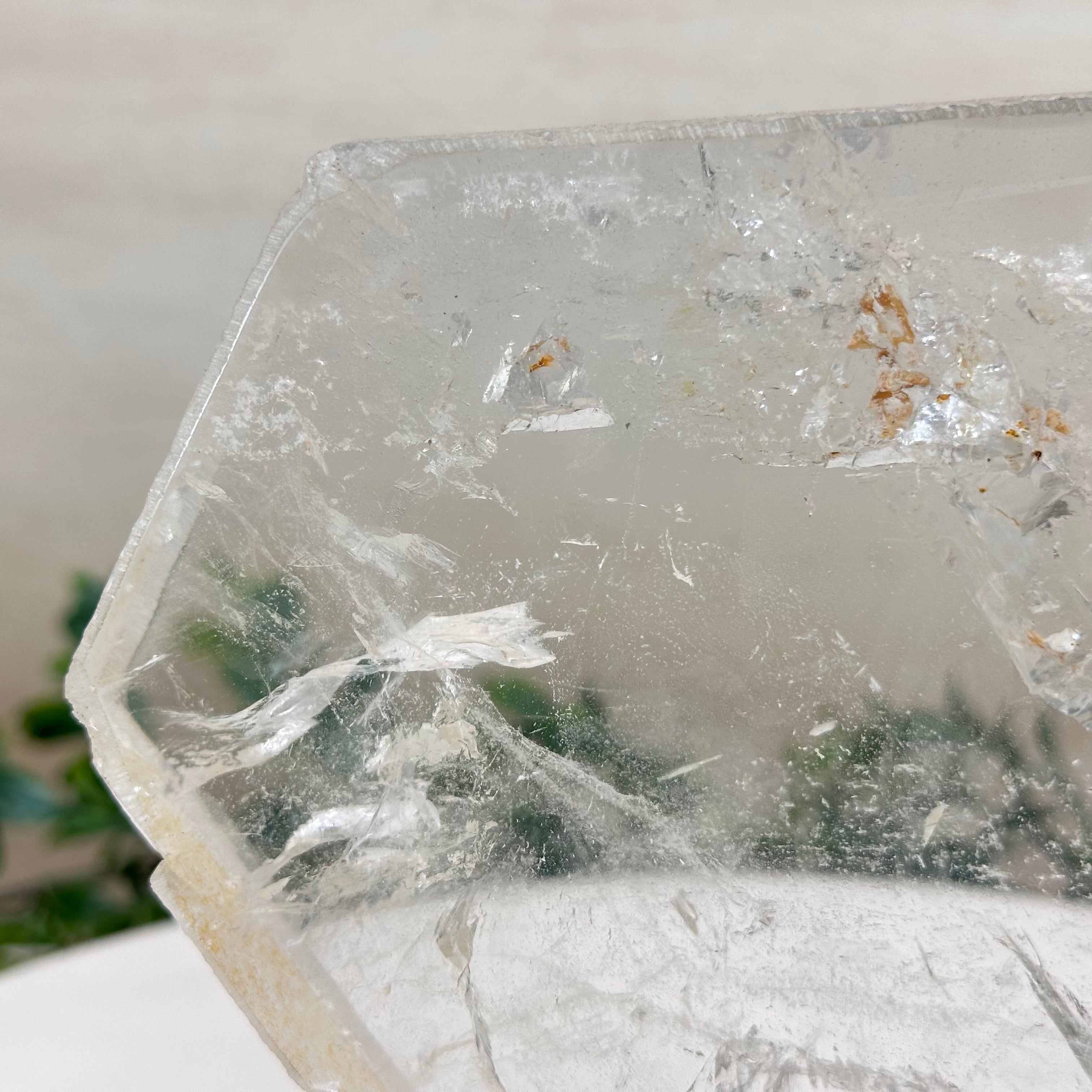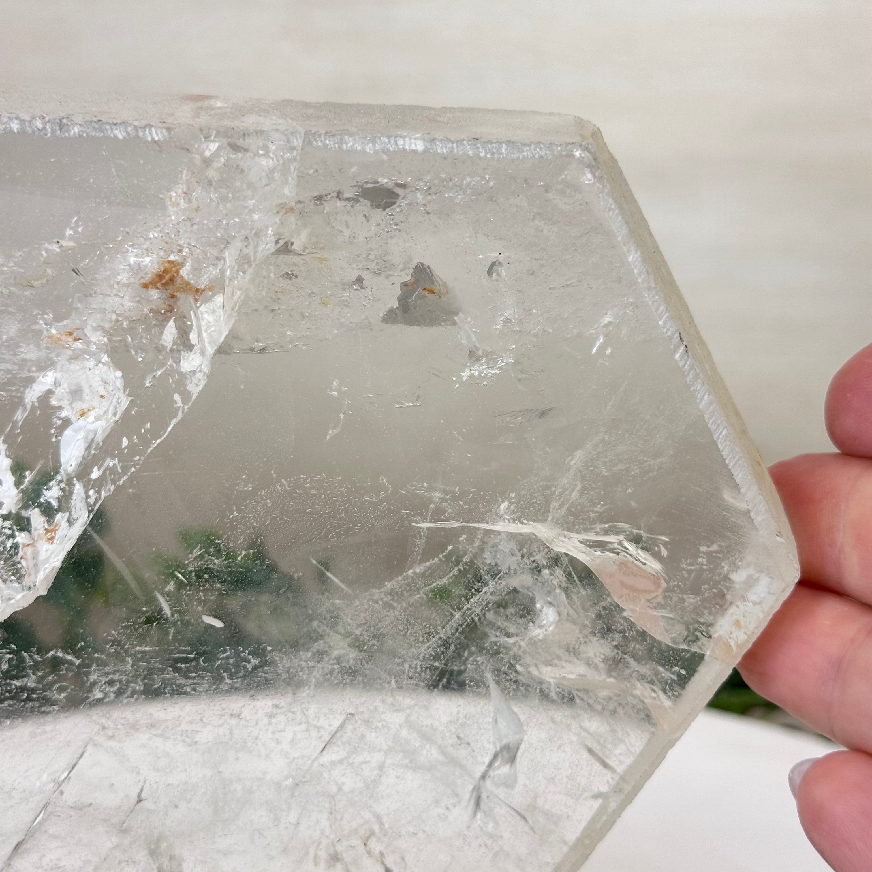 Clear Quartz Polished Slice on a Wood Base 7.7" Tall #6100CQ-001