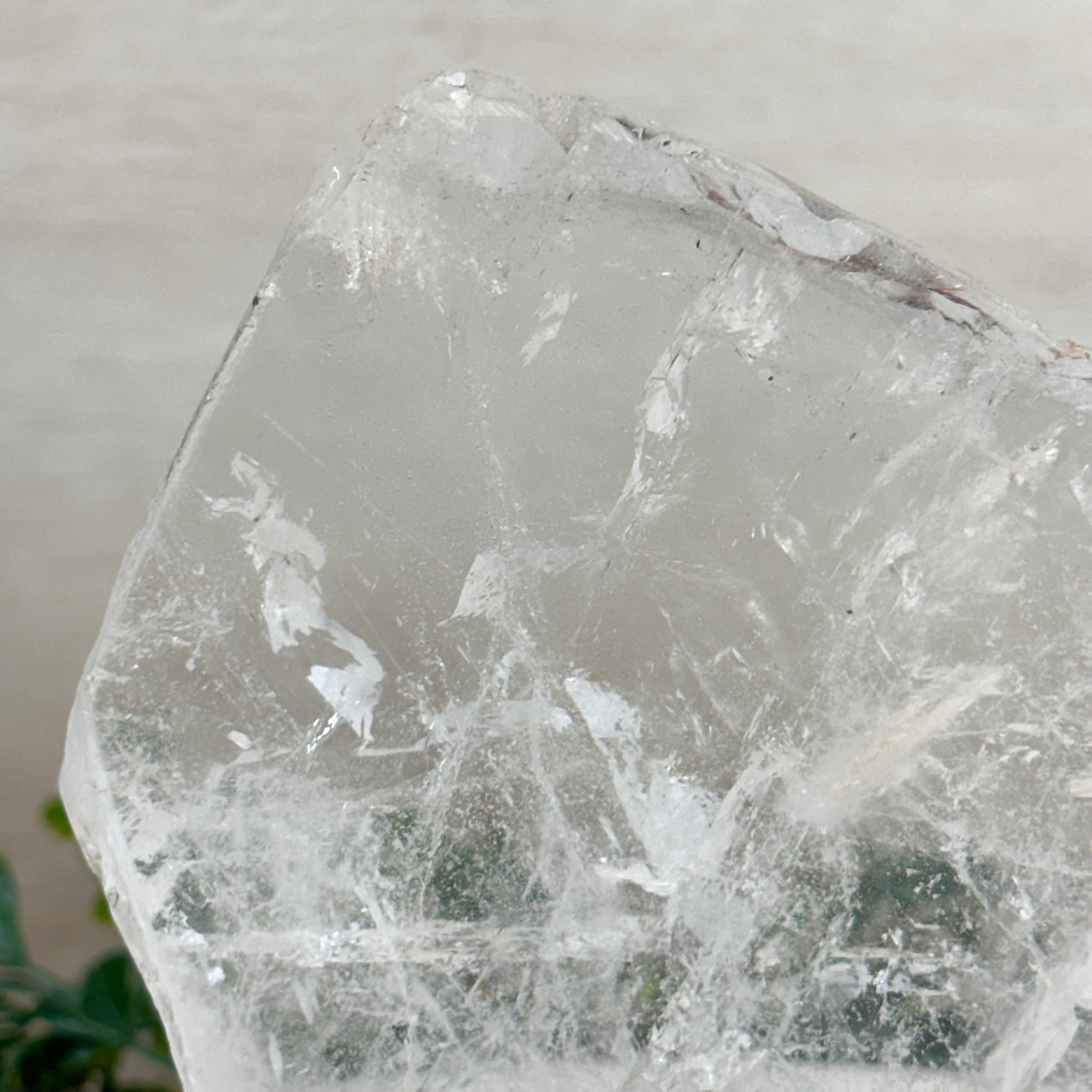 Clear Quartz Polished Slice on a Wood Base 6.4" Tall #6100CQ-003