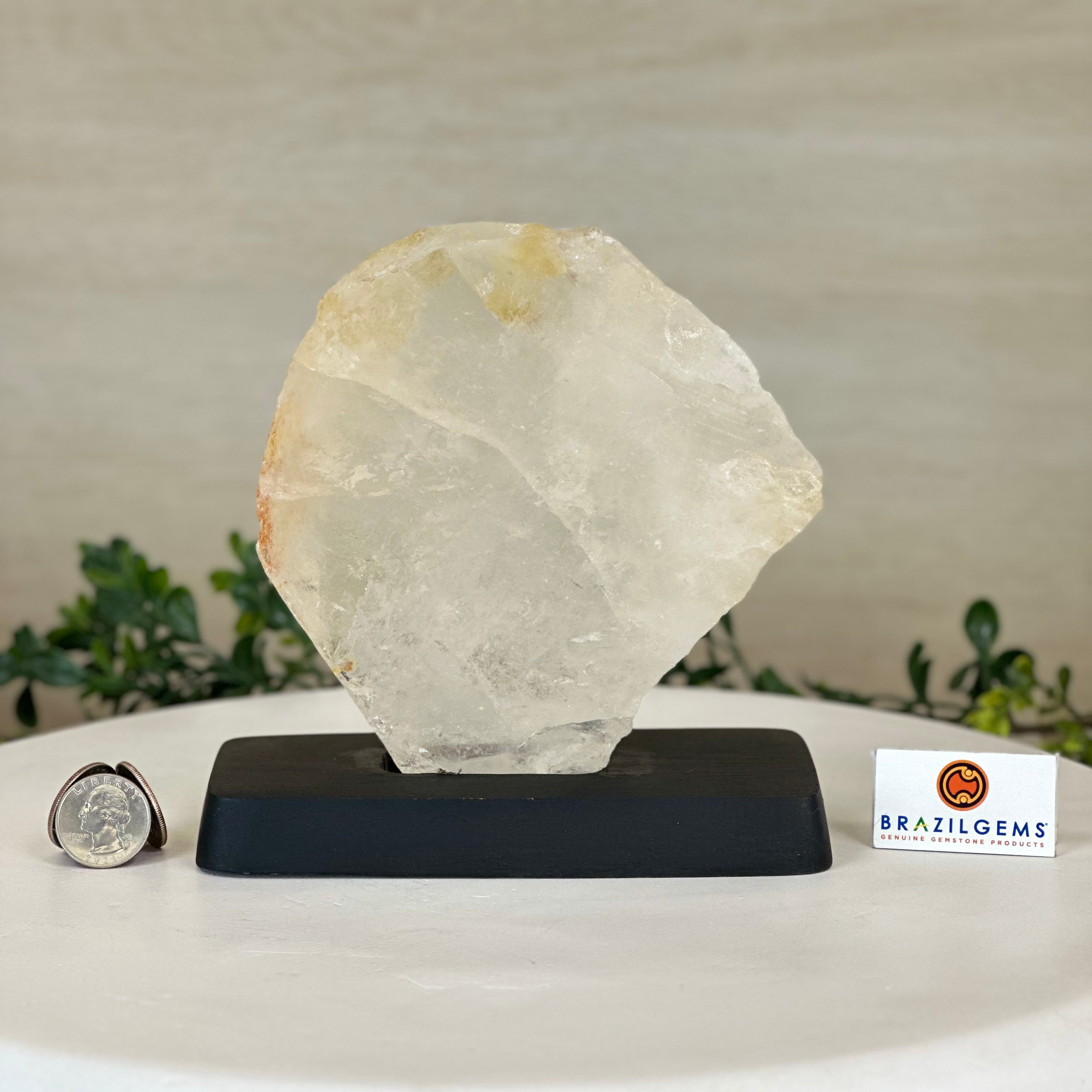 Clear Quartz Polished Slice on a Wood Base 6.2" Tall #6100CQ-005