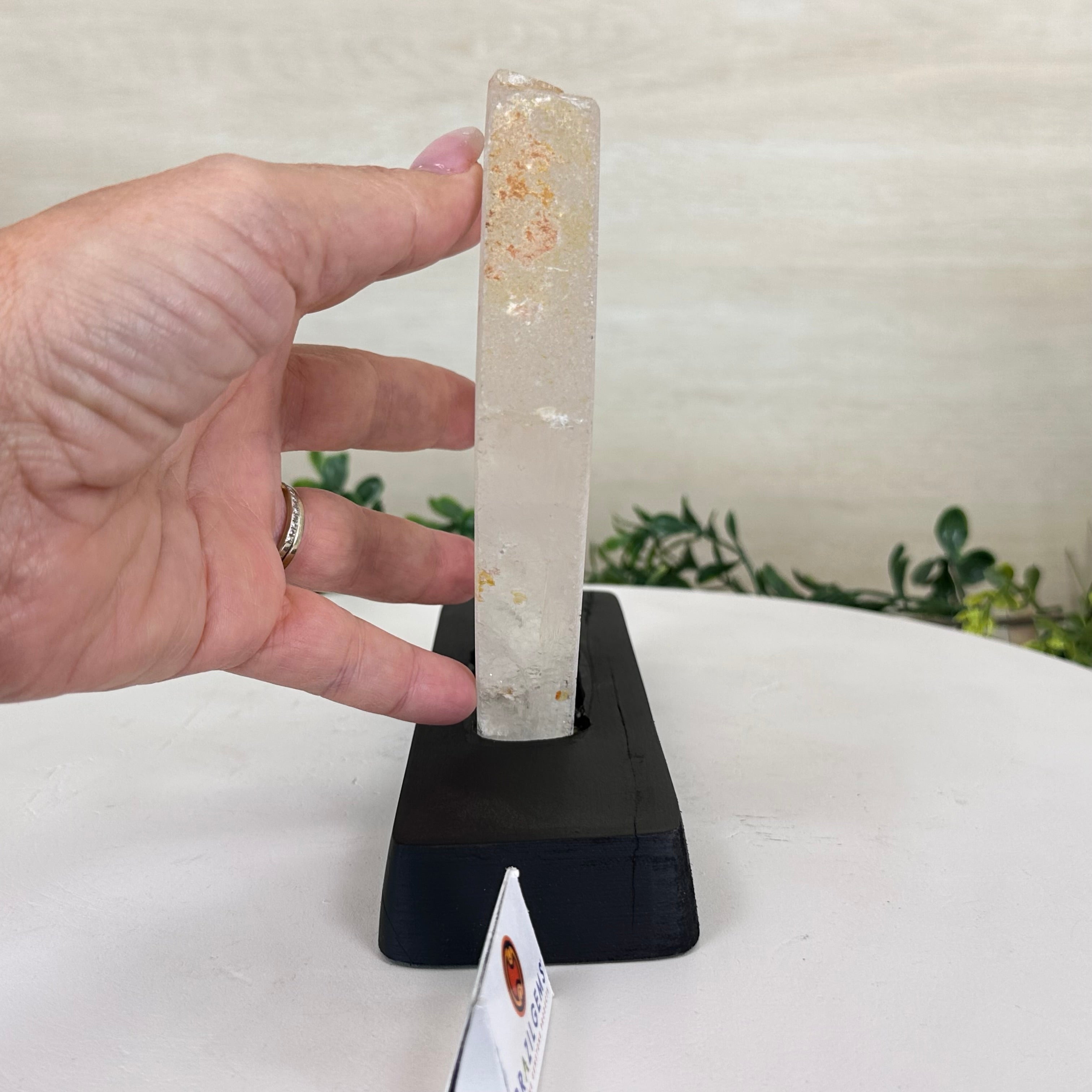Clear Quartz Polished Slice on a Wood Base 6.6" Tall #6100CQ-002
