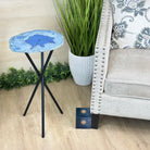 Blue Agate Side Table on Black Metal Base, 24.9" Tall #1342BL-002