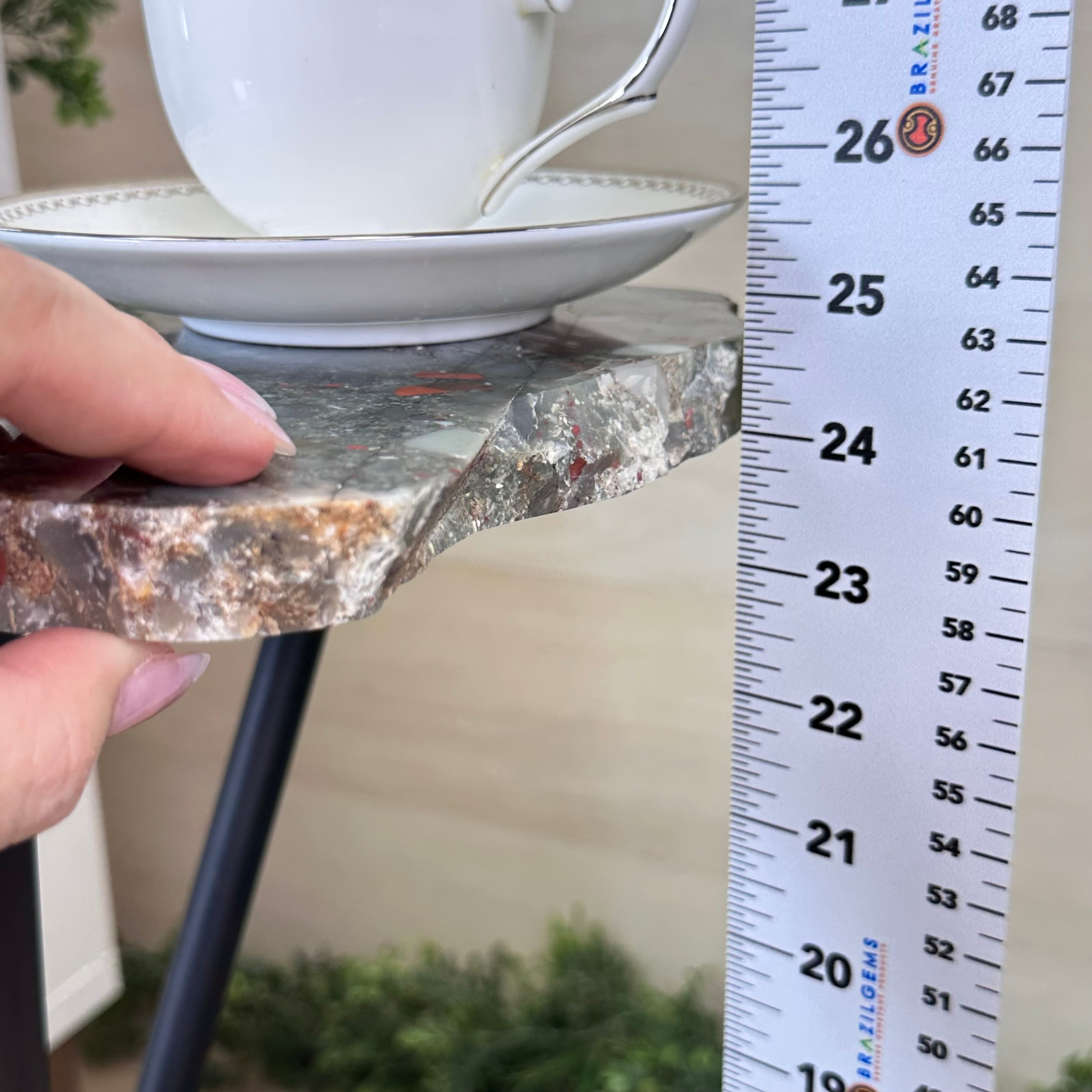 Disclaimer: This is a natural gemstone sold as is by Brazil Gems® as you see it in its images and video. It may contain natural imperfections as well as imperfections, scratches, repairs and broken edges from the extraction, slicing and polishing processes. Some assembly required to tighten the legs (Tool provided). The metal base was painted black. Brazil Gems® makes every effort to get measurements as exact as possible but they are done by human hands & eyes and therefore may have minor discrepancies.