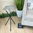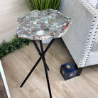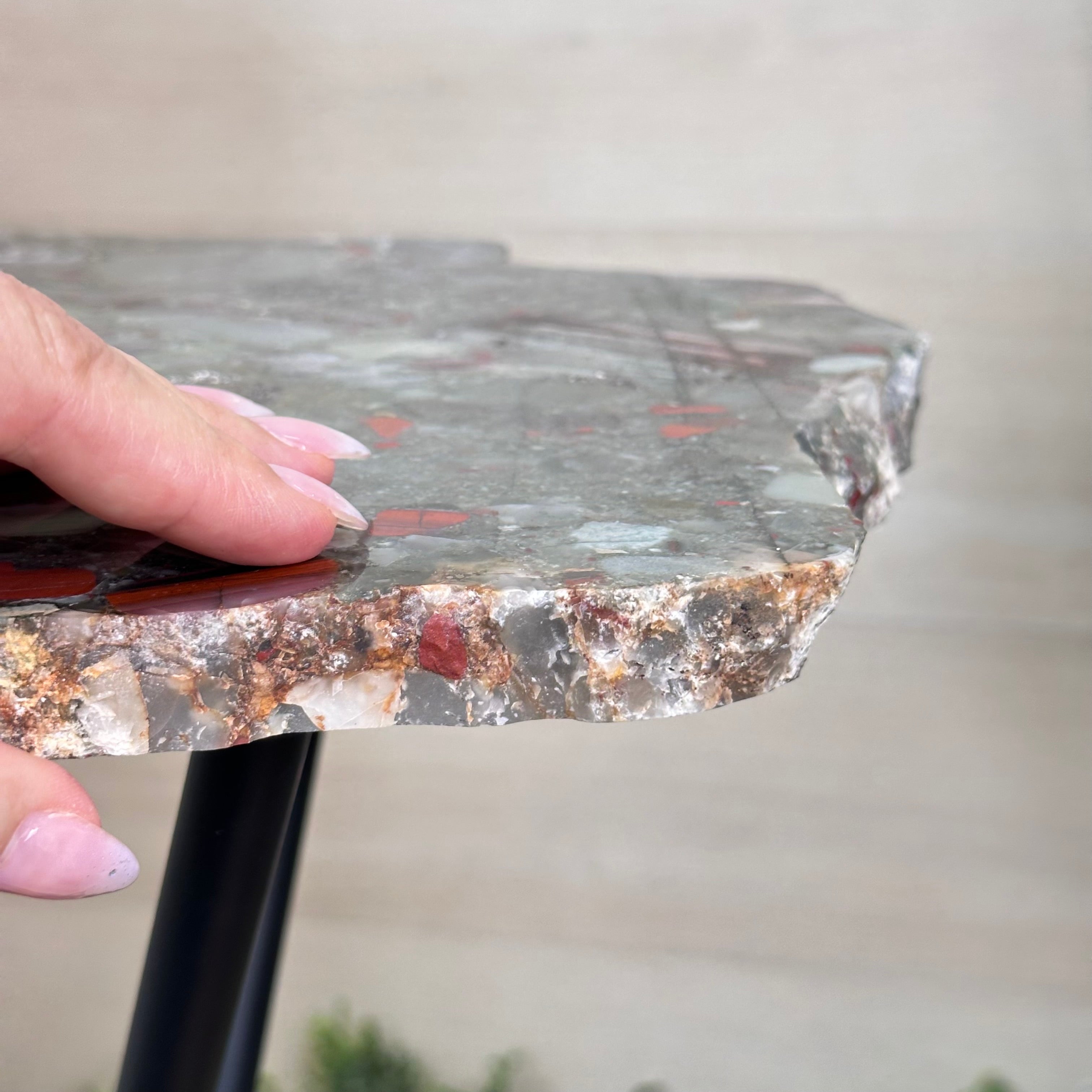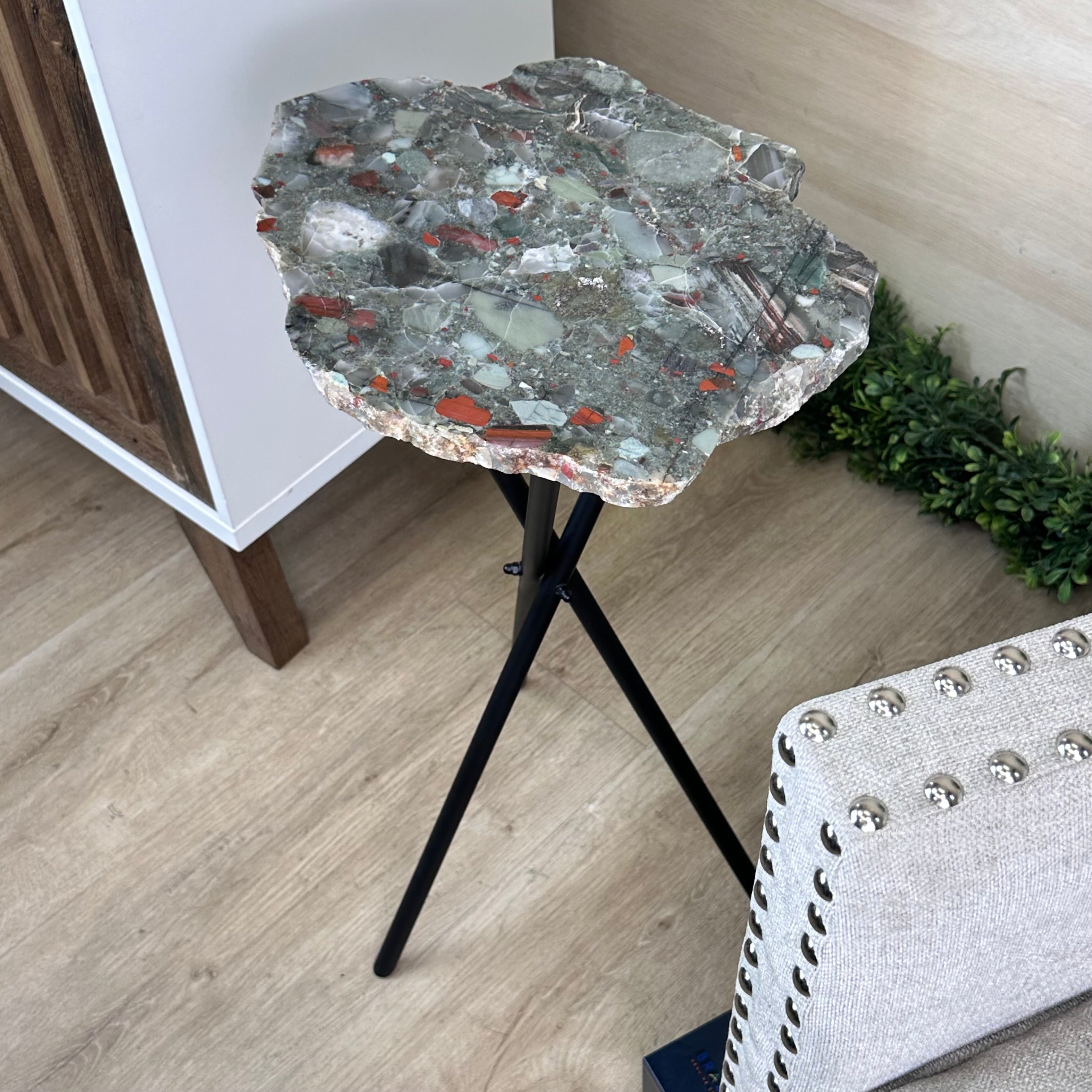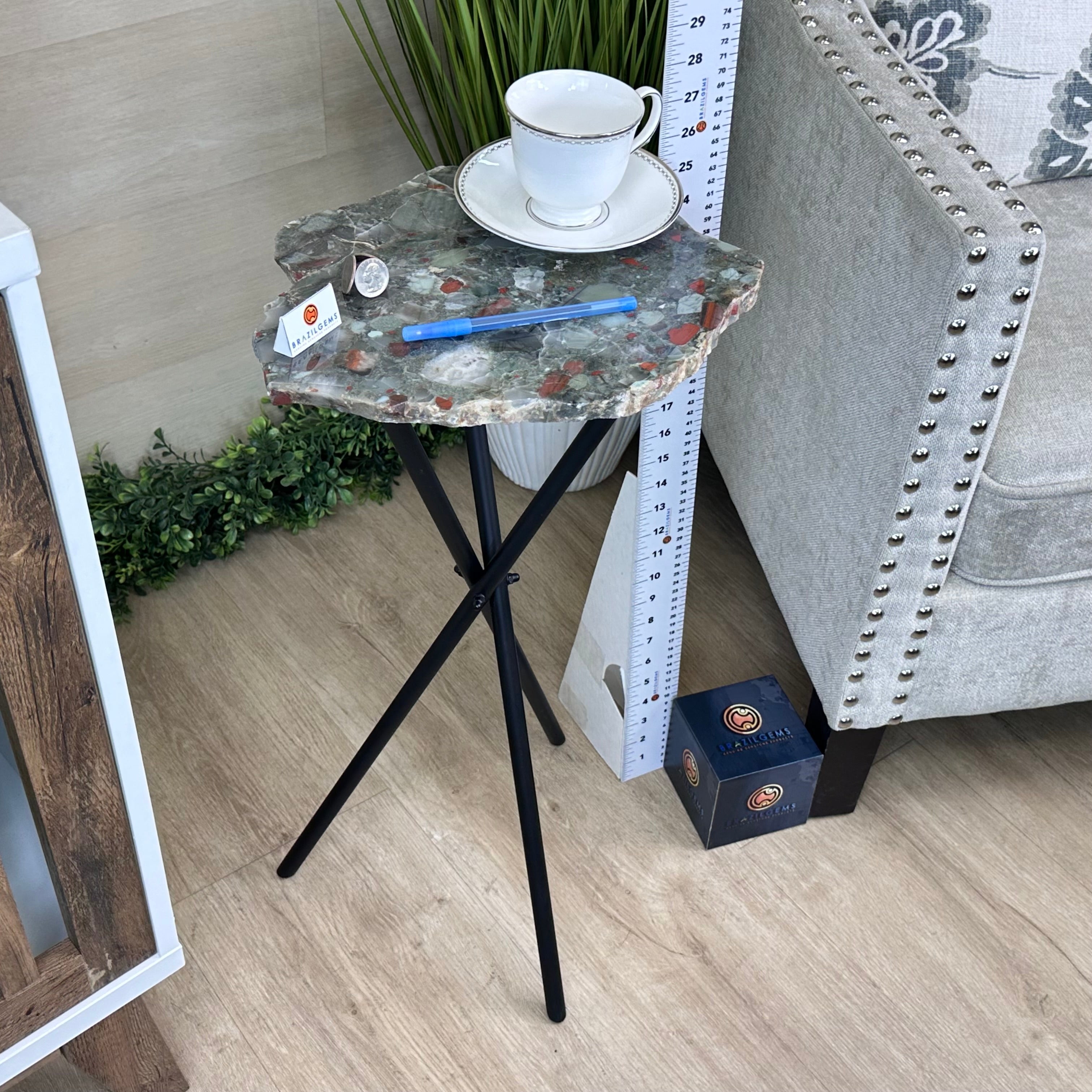 Natural Bloodstone Jasper Side Table on Black Metal Base, 24.9" Tall #1342BS-001