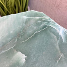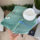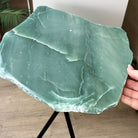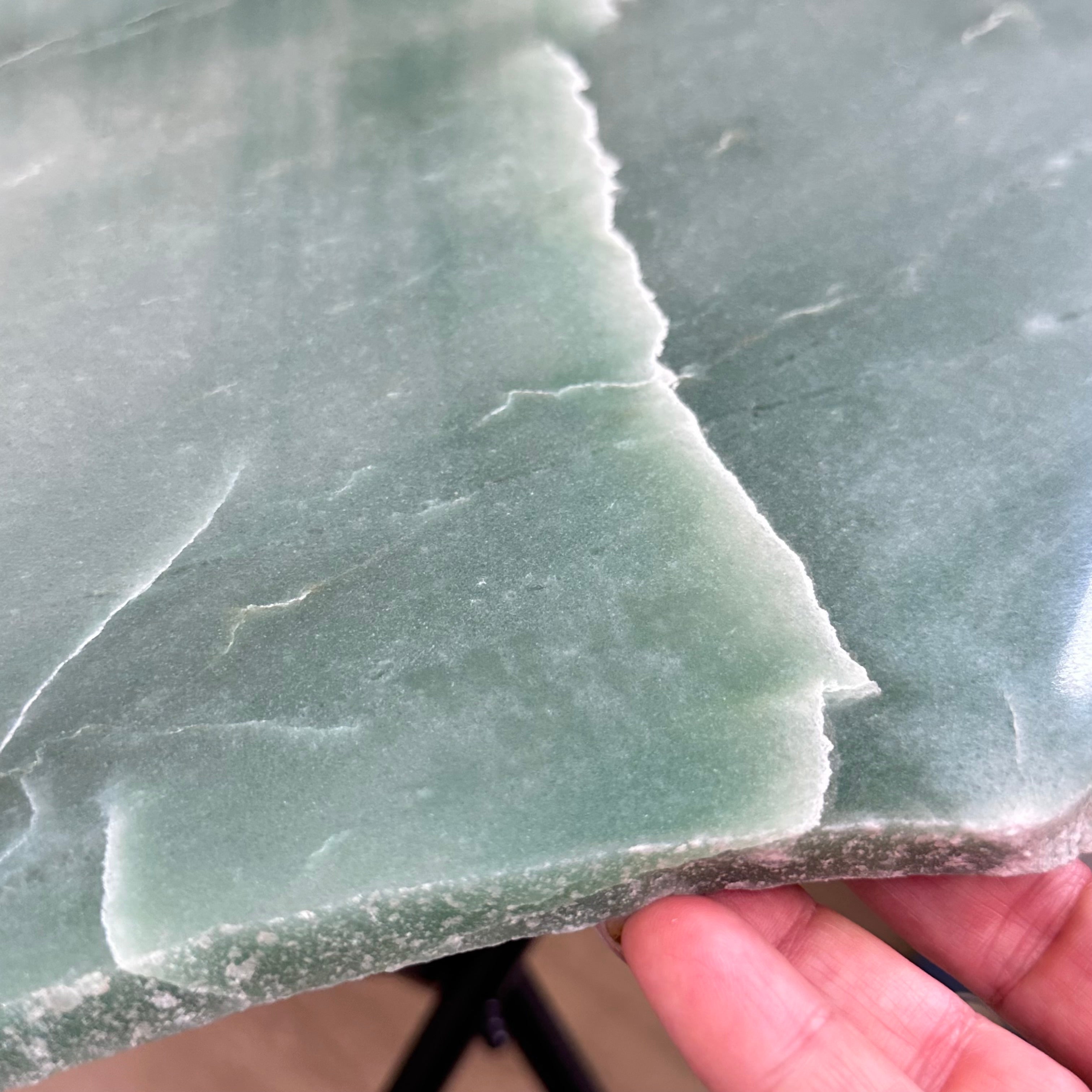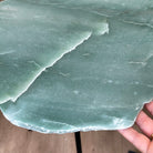 Large Natural Green Quartz Side Table w/ one slice of stone on a black metal base. An amazing vibrant specimen to accent the decor of your home.