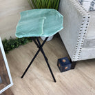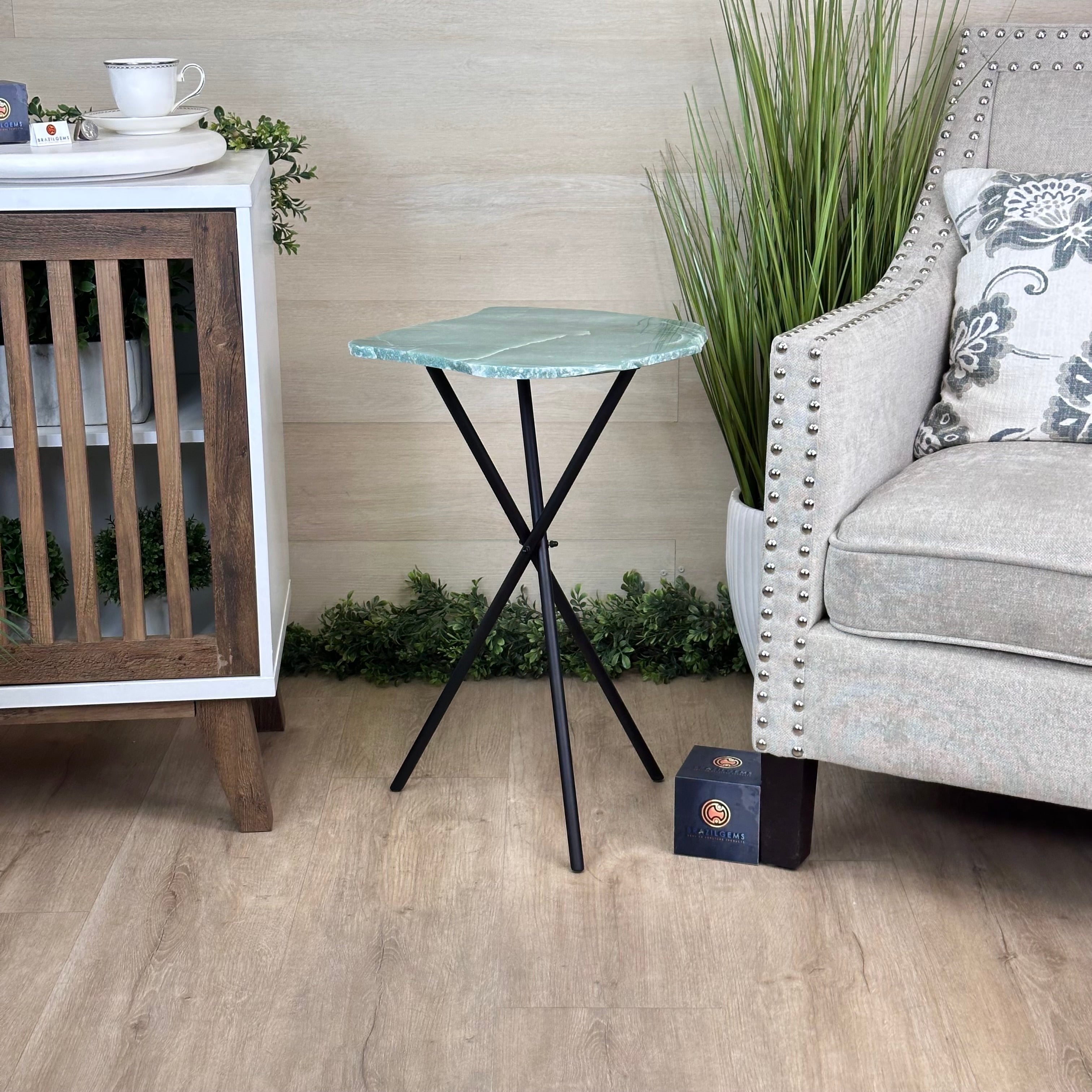 Natural Green Quartz Side Table on Black Metal Base, 24" Tall #1342GQ-003