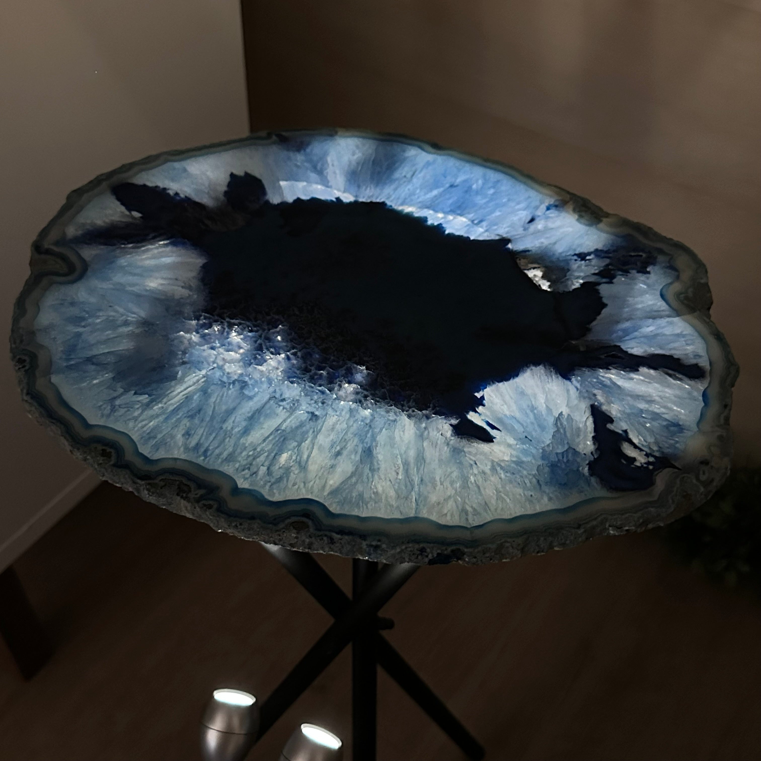 We also feature our one of a kind designer Handmade resin Agate tables made out of slices of stone, exclusively from Brazil Gems. The artisan process to make a gemstone table like this one is very extensive. Many expert hands work on the extraction, cutting, polishing, designing and making the table before it travels thousands of miles to get to you. Own it today so you can enjoy its beauty for a lifetime. Conveniently browse our site to find more information on our collection of amethyst and agate side tables today.