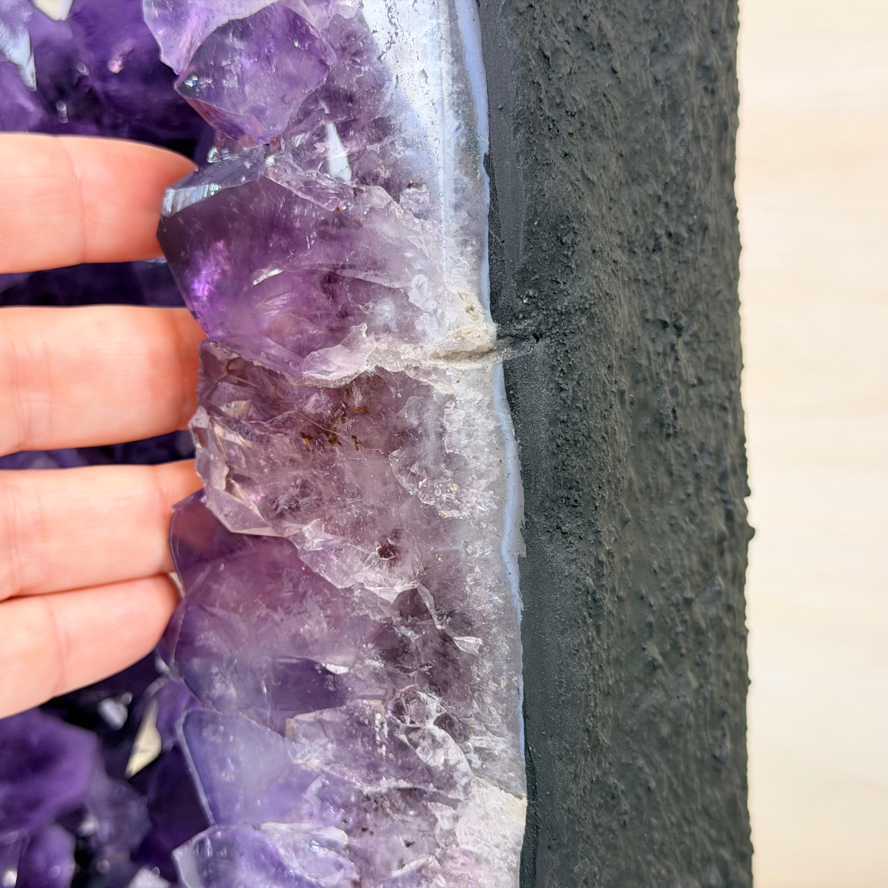 Sourced directly from Amethyst mine owners in Brazil, this magnificent piece showcases nature’s artistry at its finest, formed over millions of years in ancient volcanic cavities.