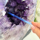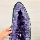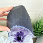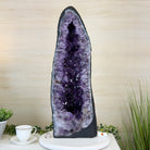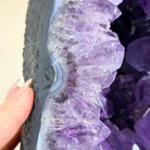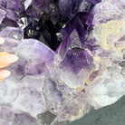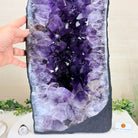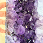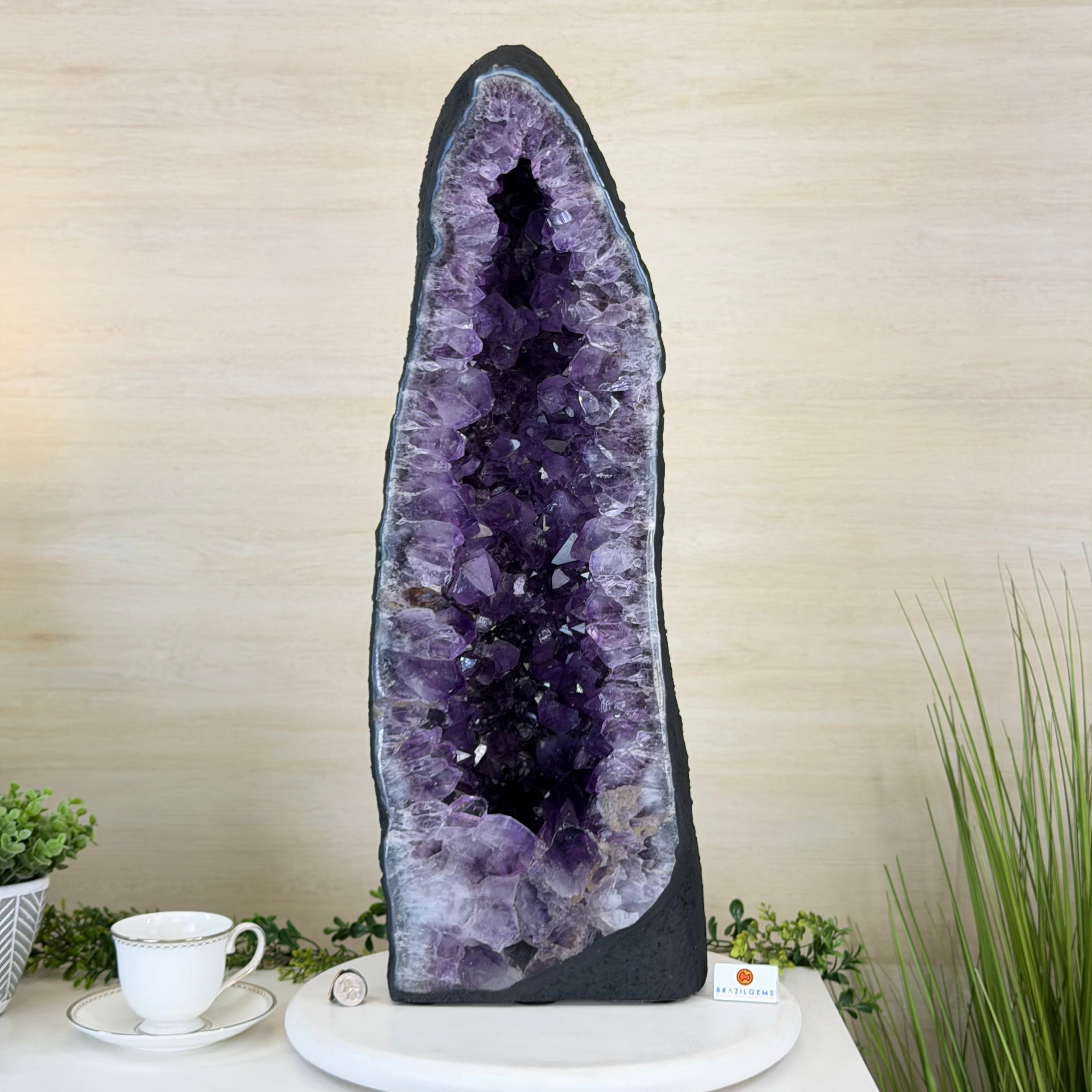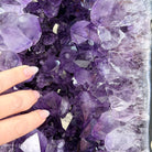 A Majestic statement piece for your space, this elegant awe-inspiring Brazilian Amethyst Cathedral, a Super Quality geode, commands attention with its large purple crystals and vibrant energy by Brazil Gems®.