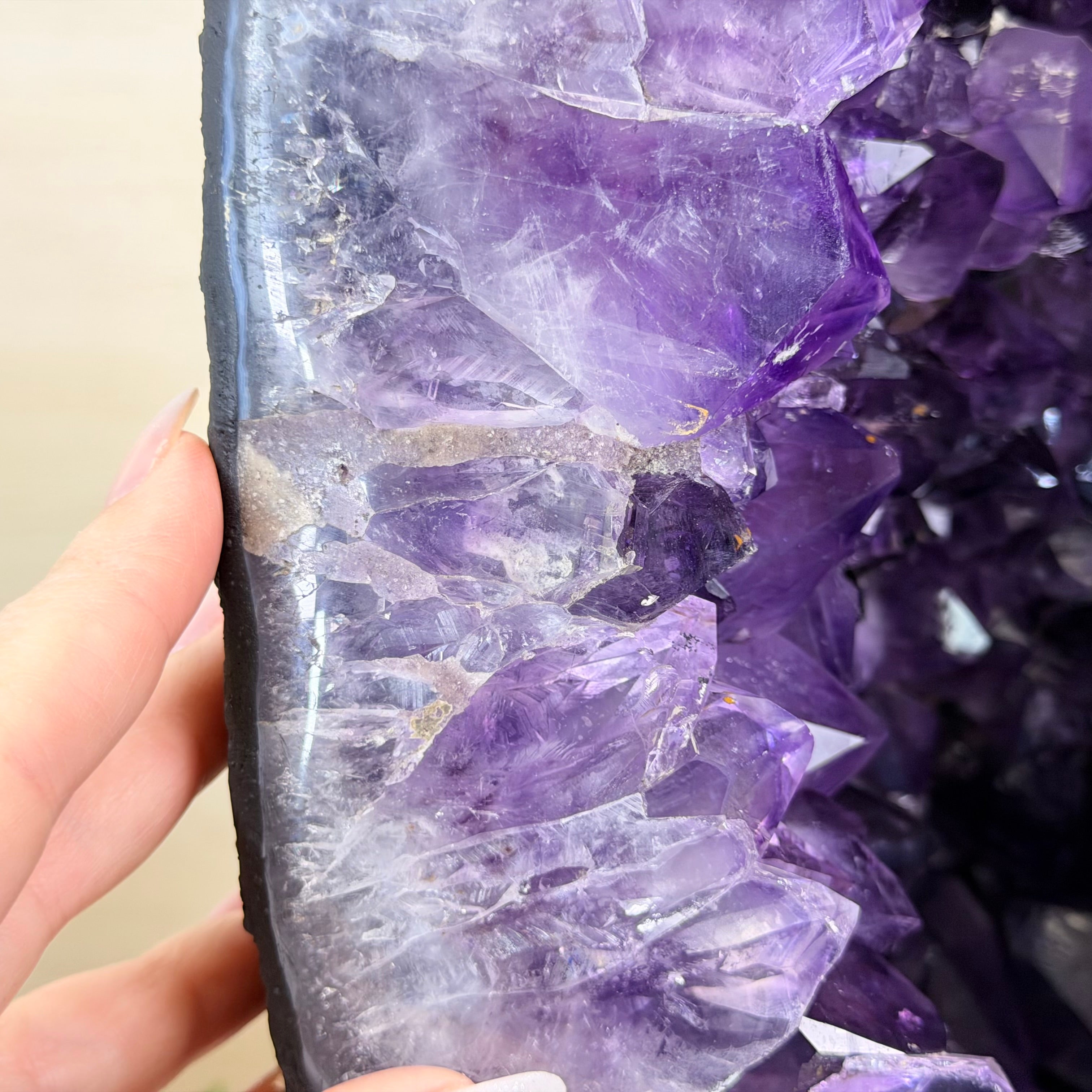 Sourced directly from Amethyst mine owners in Brazil, this magnificent piece showcases nature’s artistry at its finest, formed over millions of years in ancient volcanic cavities.