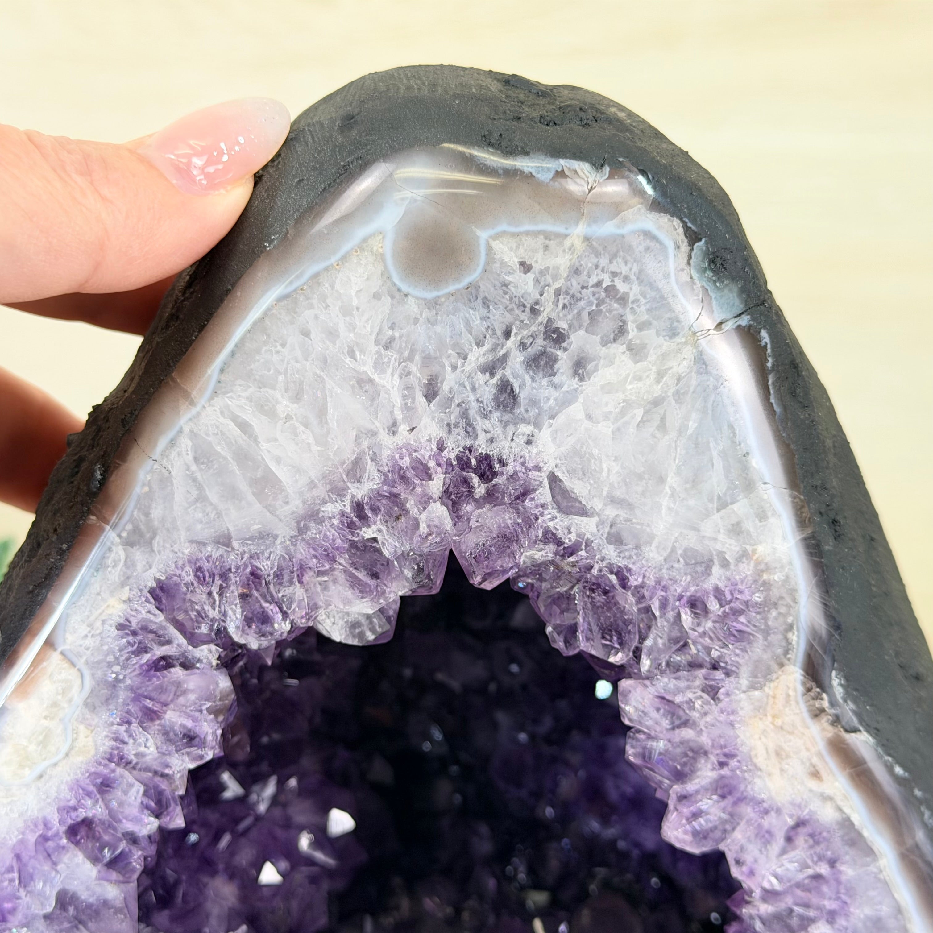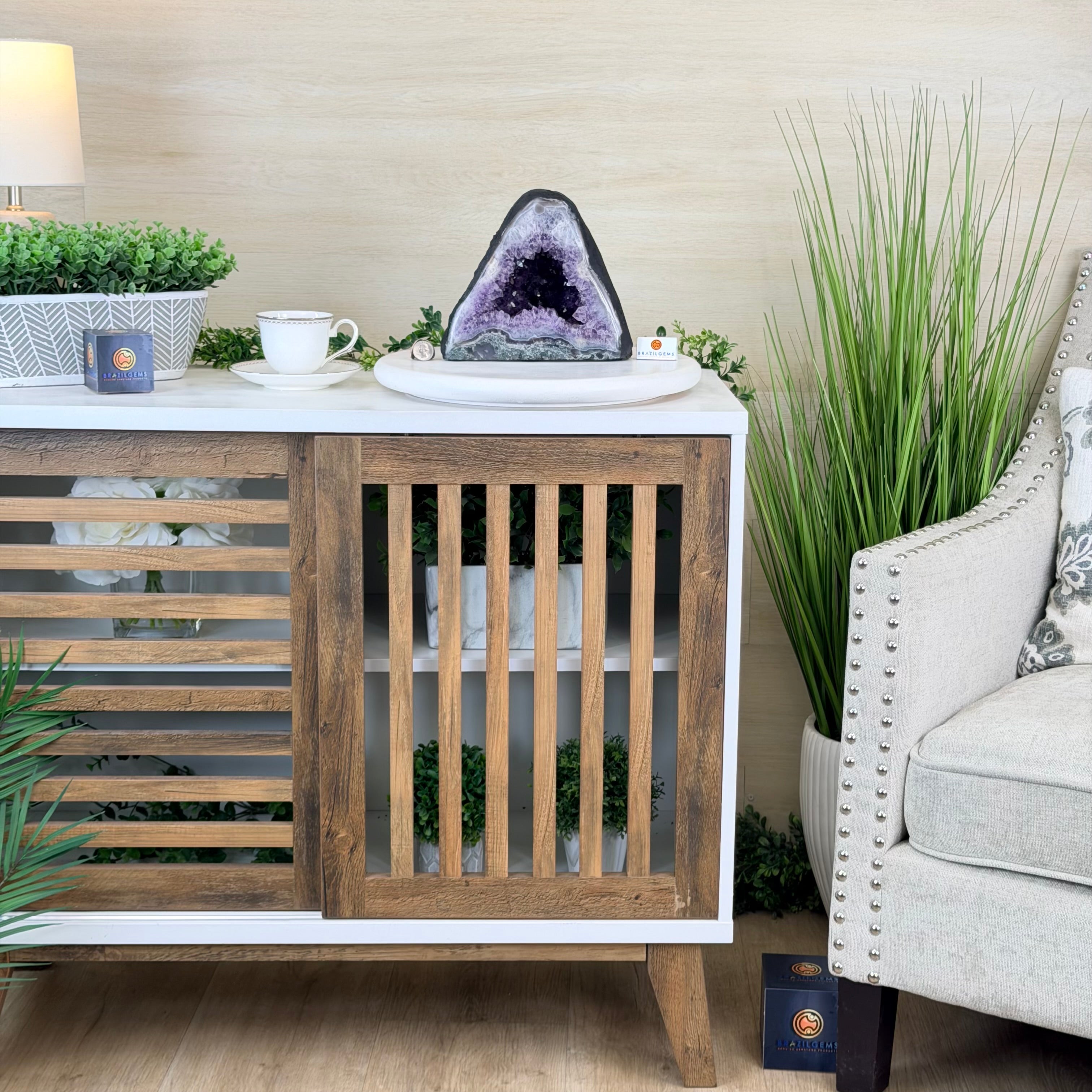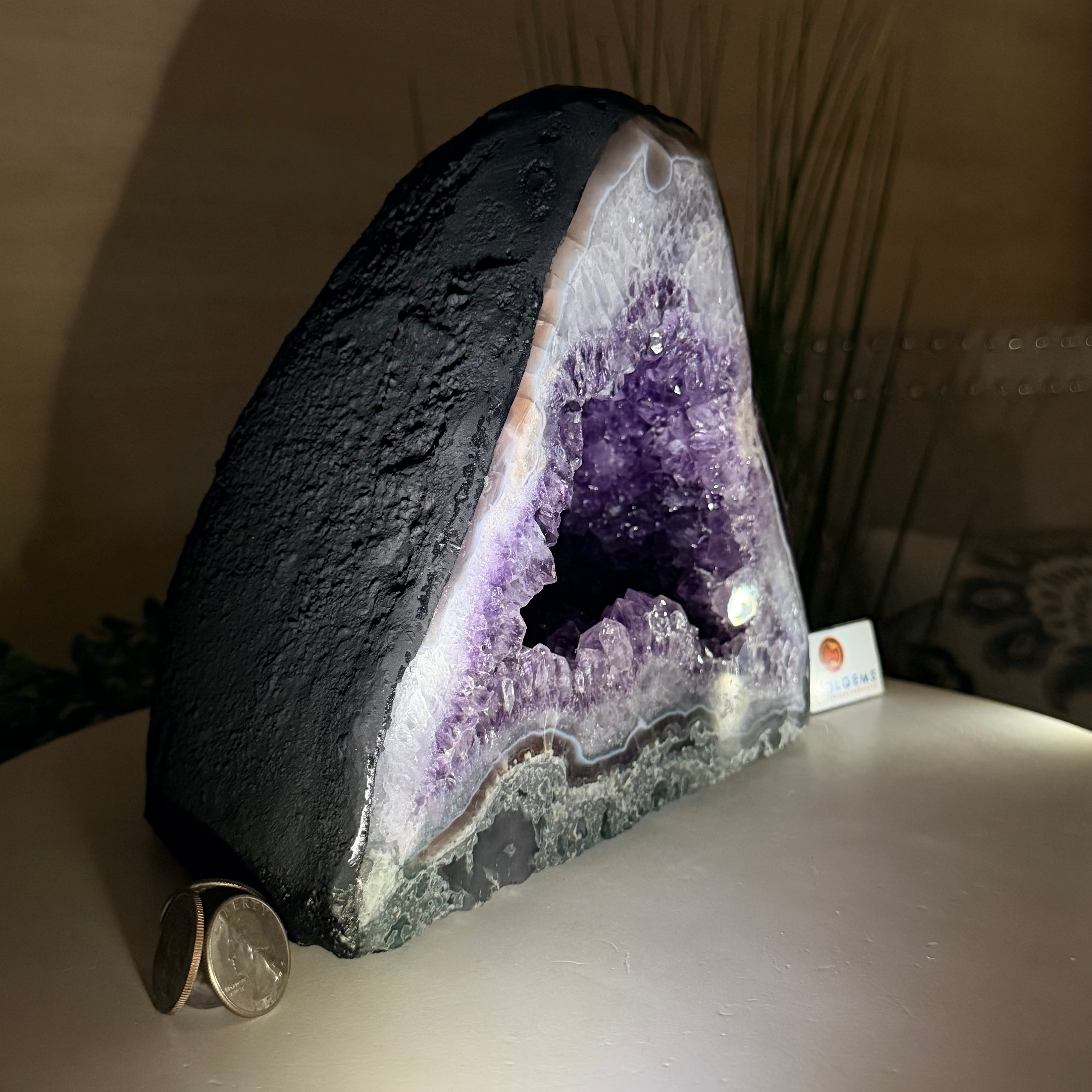 Sourced directly from Amethyst mine owners in Brazil, this magnificent piece showcases nature’s artistry at its finest, formed over millions of years in ancient volcanic cavities.
