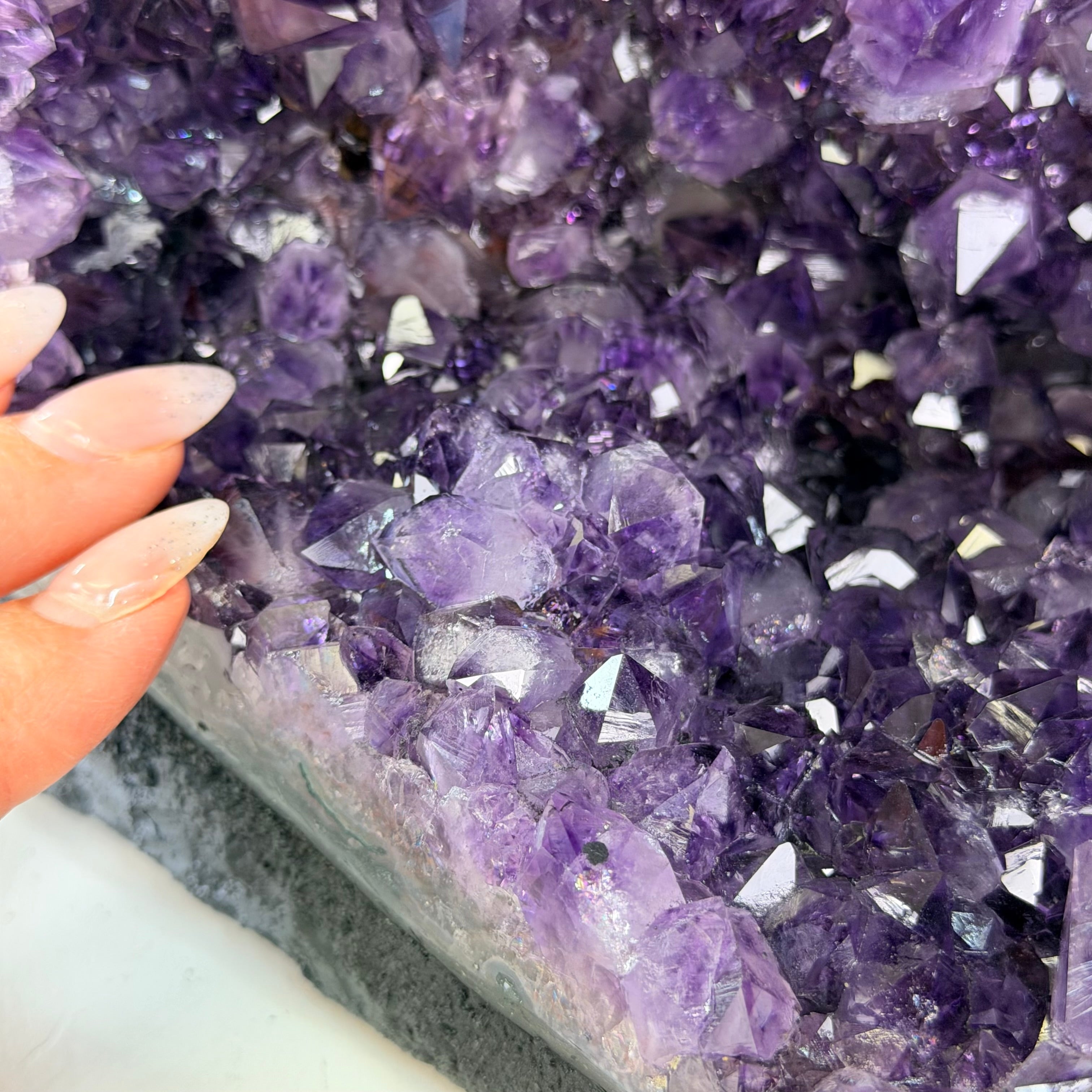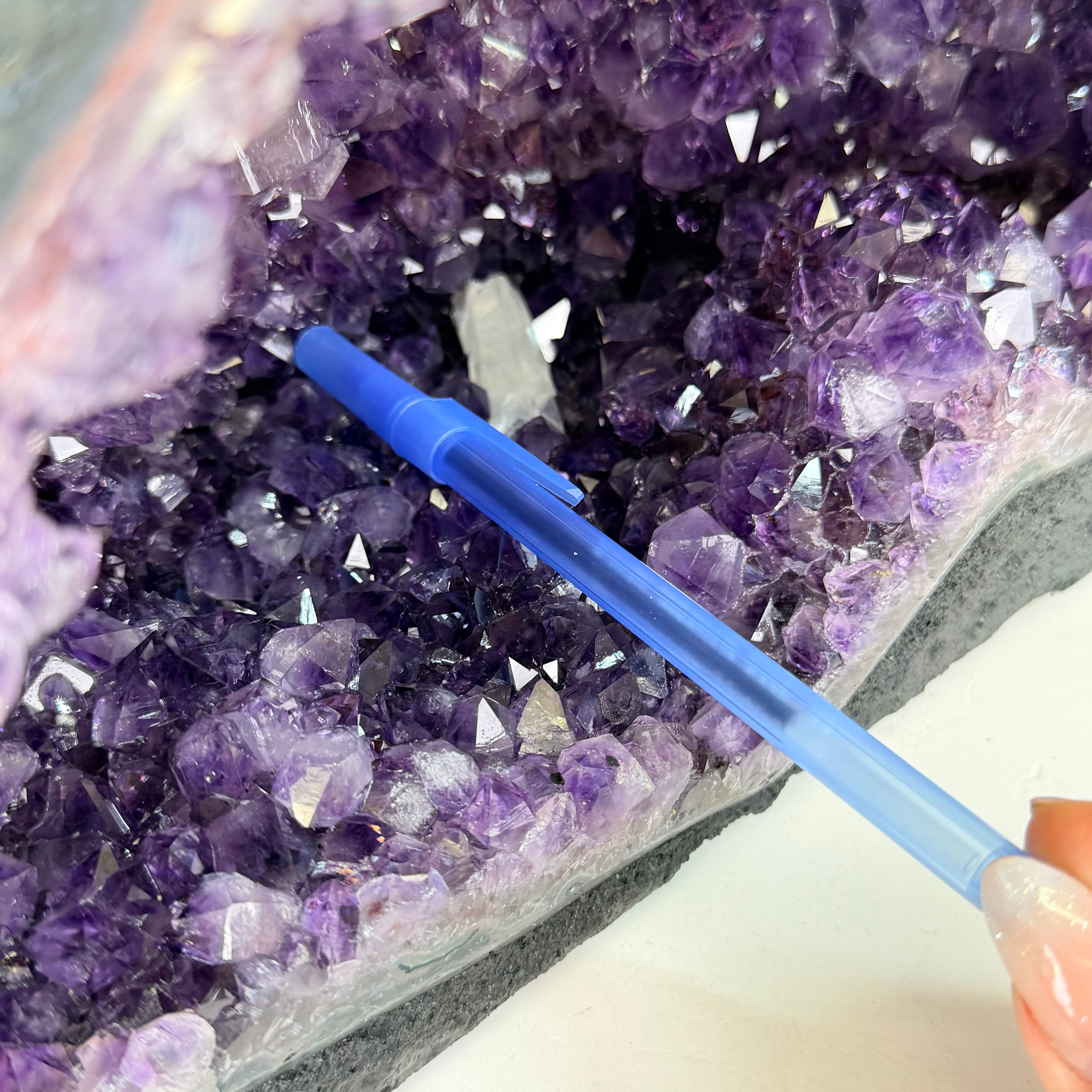 Sourced directly from Amethyst mine owners in Brazil, this magnificent piece showcases nature’s artistry at its finest, formed over millions of years in ancient volcanic cavities.