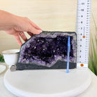 Disclaimer: This is a natural gemstone crystal sold by Brazil Gems® as is and as you see it in its images and video. It is the exact one you will receive. It may contain natural imperfections as well as imperfections, broken edges and repairs from the extraction, polishing and prepping processes. In order for it to stand on its own, the back and bottom have been reinforced with a small amount of cement then painted black. At Brazil Gems® we make every effort to get measurements as exact as possible but they are done by human hands and eyes and therefore may have minor discrepancies.
