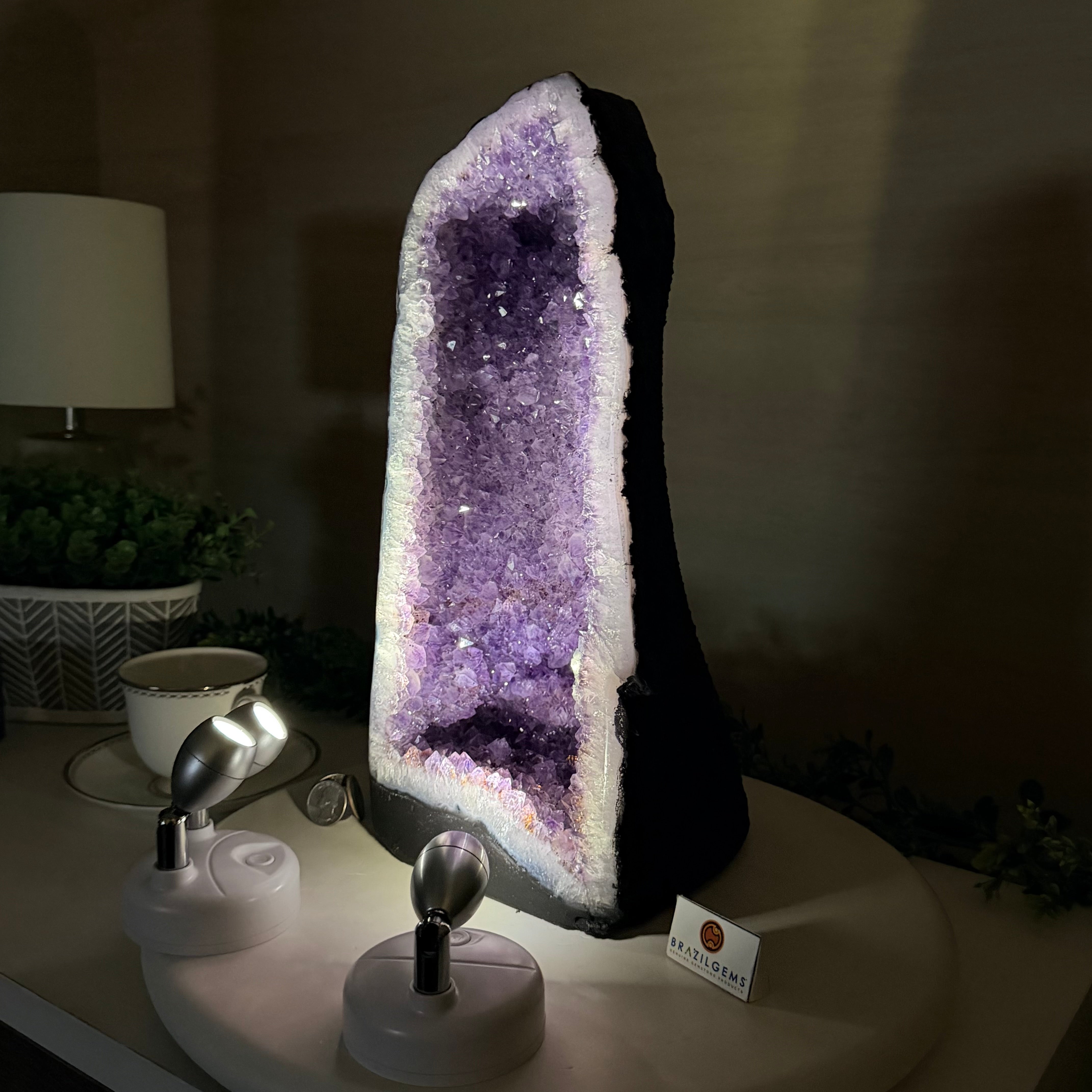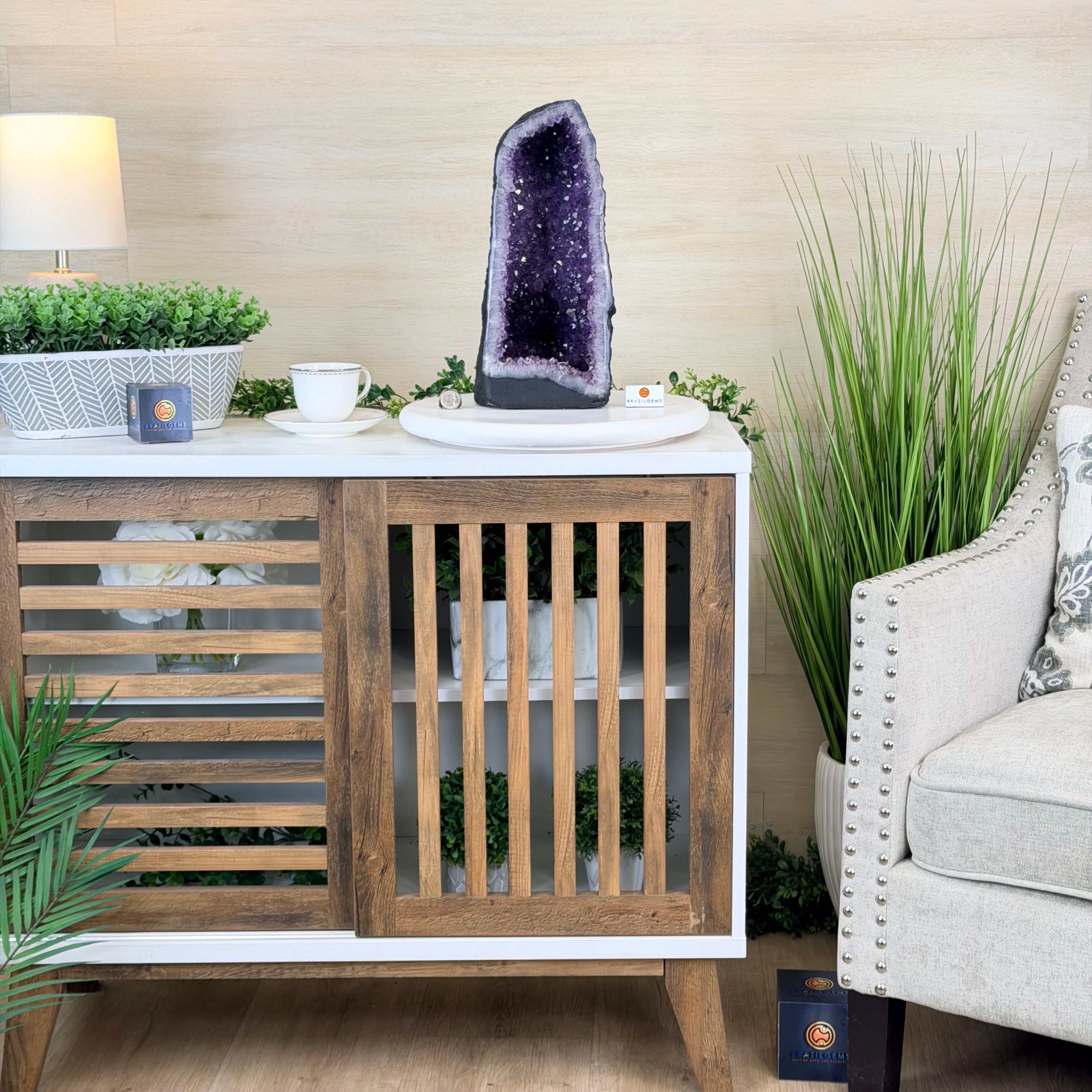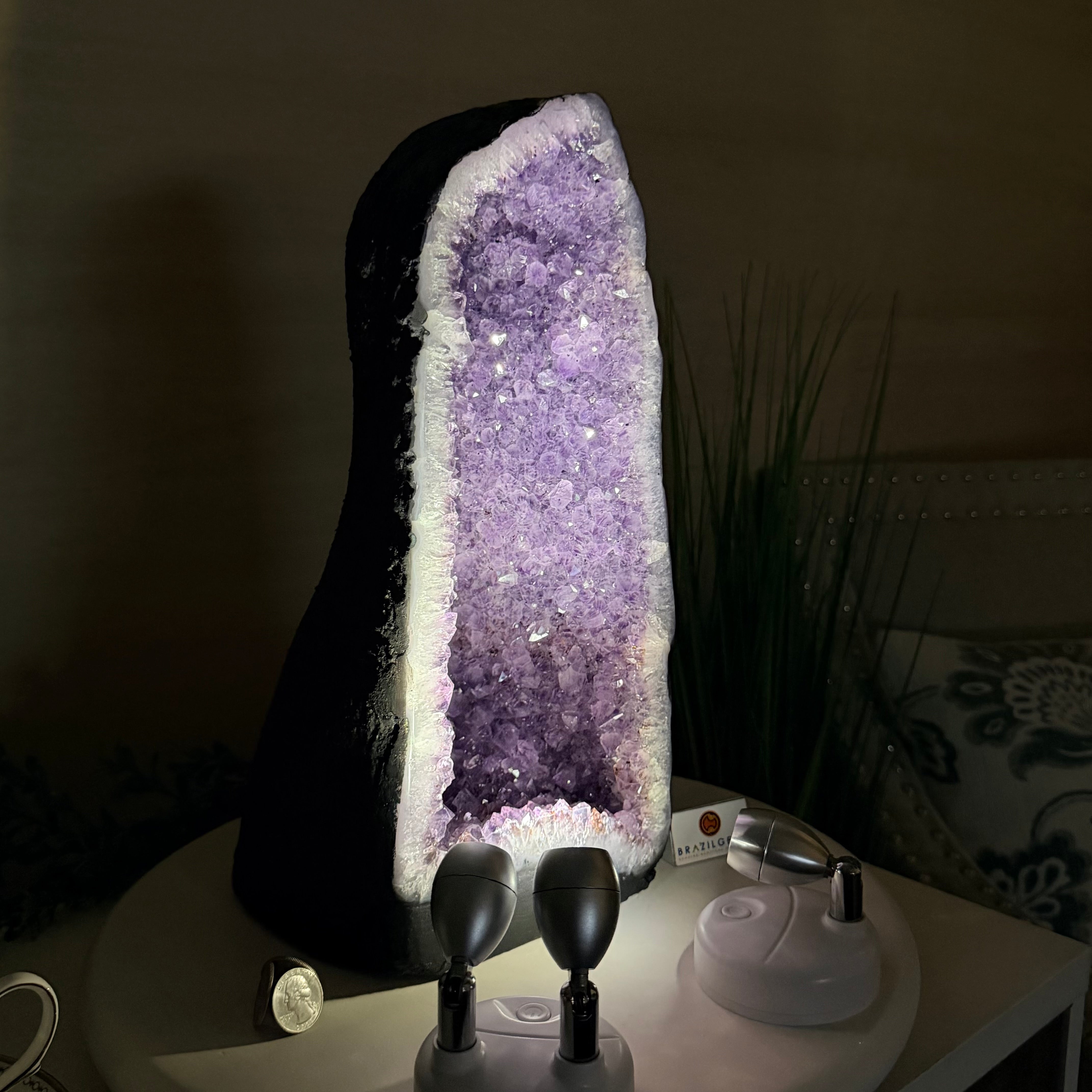 Sourced directly from Amethyst mine owners in Brazil, this magnificent piece showcases nature’s artistry at its finest, formed over millions of years in ancient volcanic cavities.