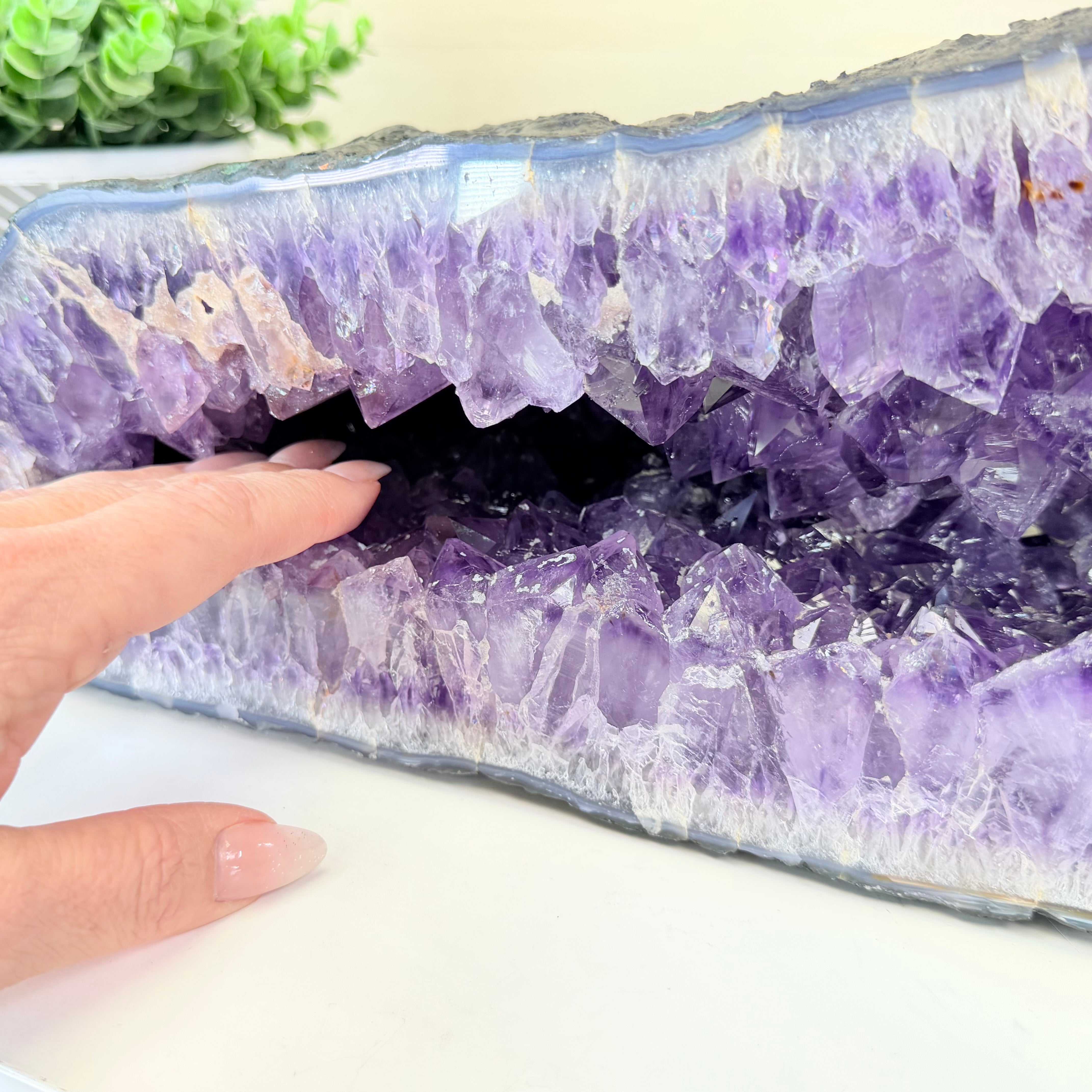 Formed over millions of years deep within the earth, this stunning geode is now ready to become a striking centerpiece in your space. Take a closer look — it’s truly special.