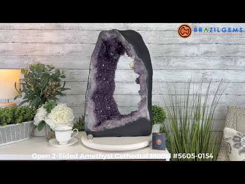 Discover the sophistication of this Extra Quality Open 2-Sided (Window) Brazilian Amethyst Cathedral by Brazil Gems®. It has nicely shaped amethyst points with violet colors and polished edges with Agate bands.
