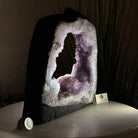 Disclaimer: This is a natural gemstone crystal sold by Brazil Gems® as is and as you see it in its images and video. It is the exact one you will receive. It may contain natural imperfections and/or imperfections, broken edges and repairs from the extraction, polishing and prepping processes. In order for it to stand on its own, the sides and bottom have been reinforced with a small amount of cement then painted black. We make every effort to get measurements as exact as possible but they are done by human hands & eyes and therefore may have minor discrepancies.