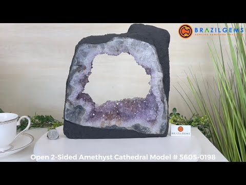 Discover the sophistication of this Extra Quality Open 2-Sided Brazilian Amethyst Cathedral by Brazil Gems®. It has nicely shaped amethyst points with violet colors and polished edges. Very unique piece!