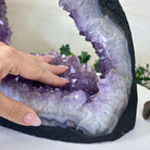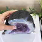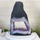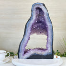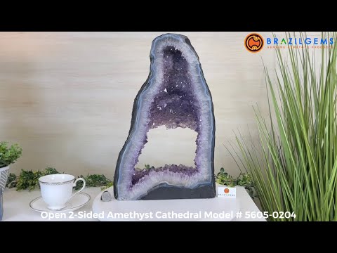 Discover the sophistication of this Extra Quality Open 2-Sided Brazilian Amethyst Cathedral by Brazil Gems®. It has nicely shaped amethyst points with violet colors and polished edges with Agate bands. Very unique piece!