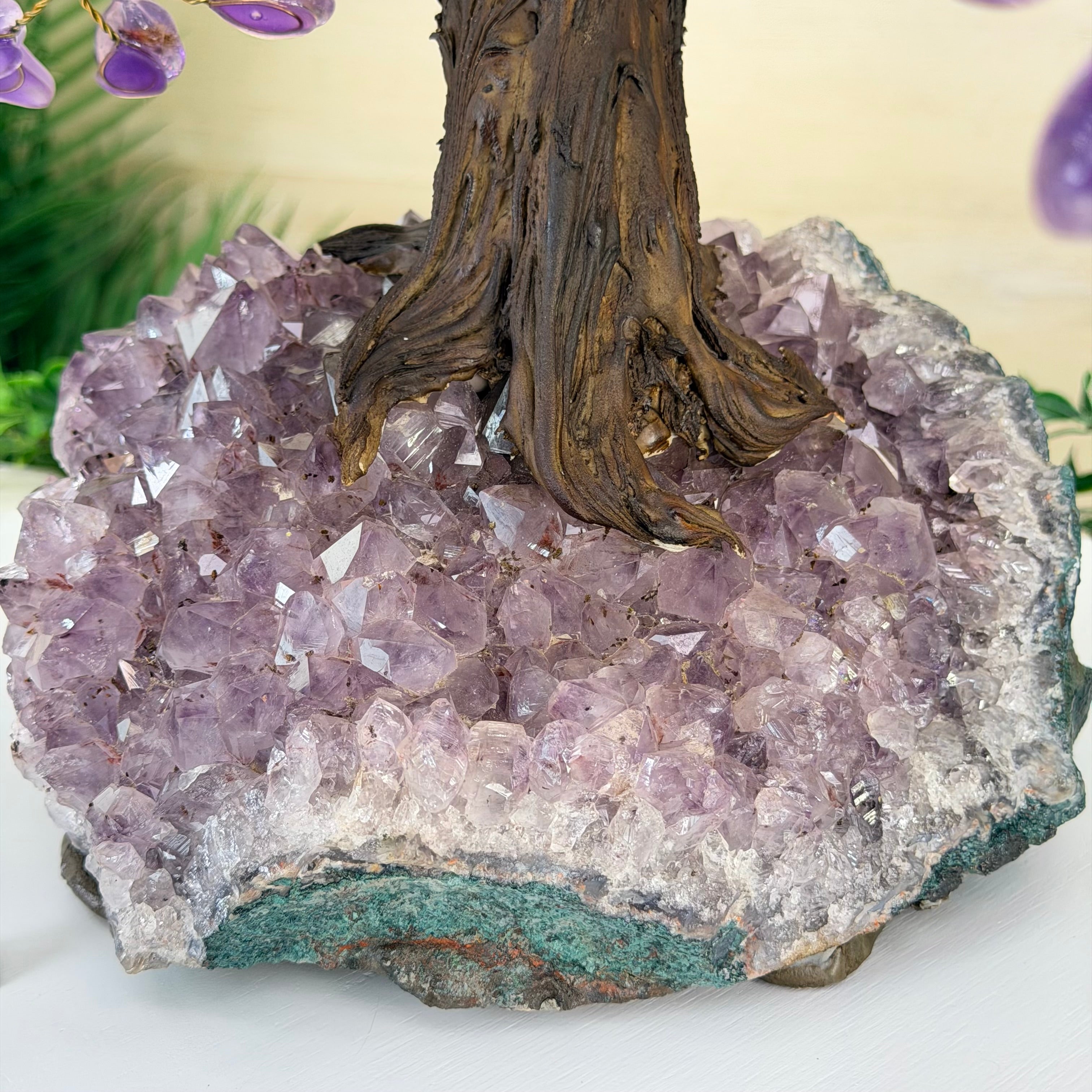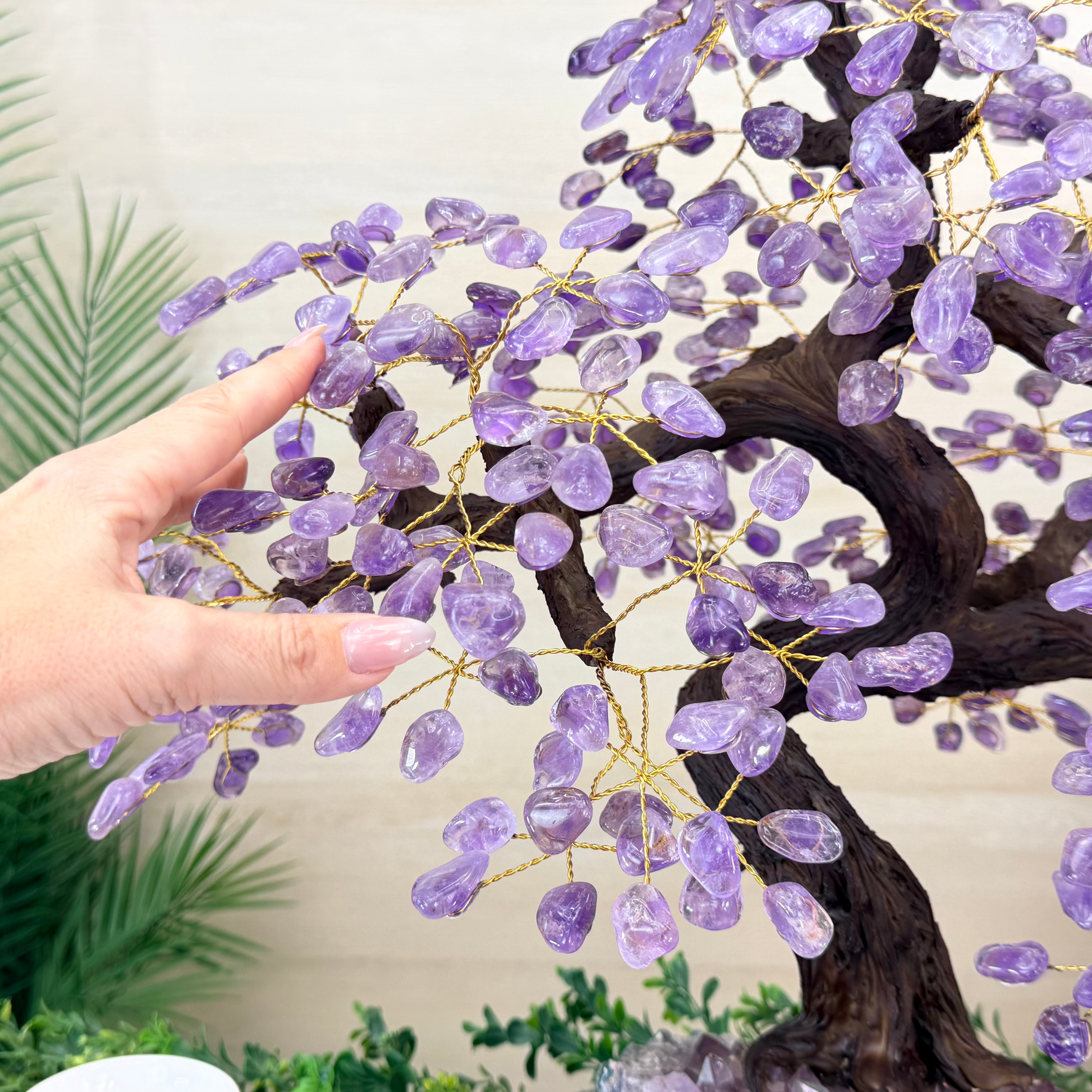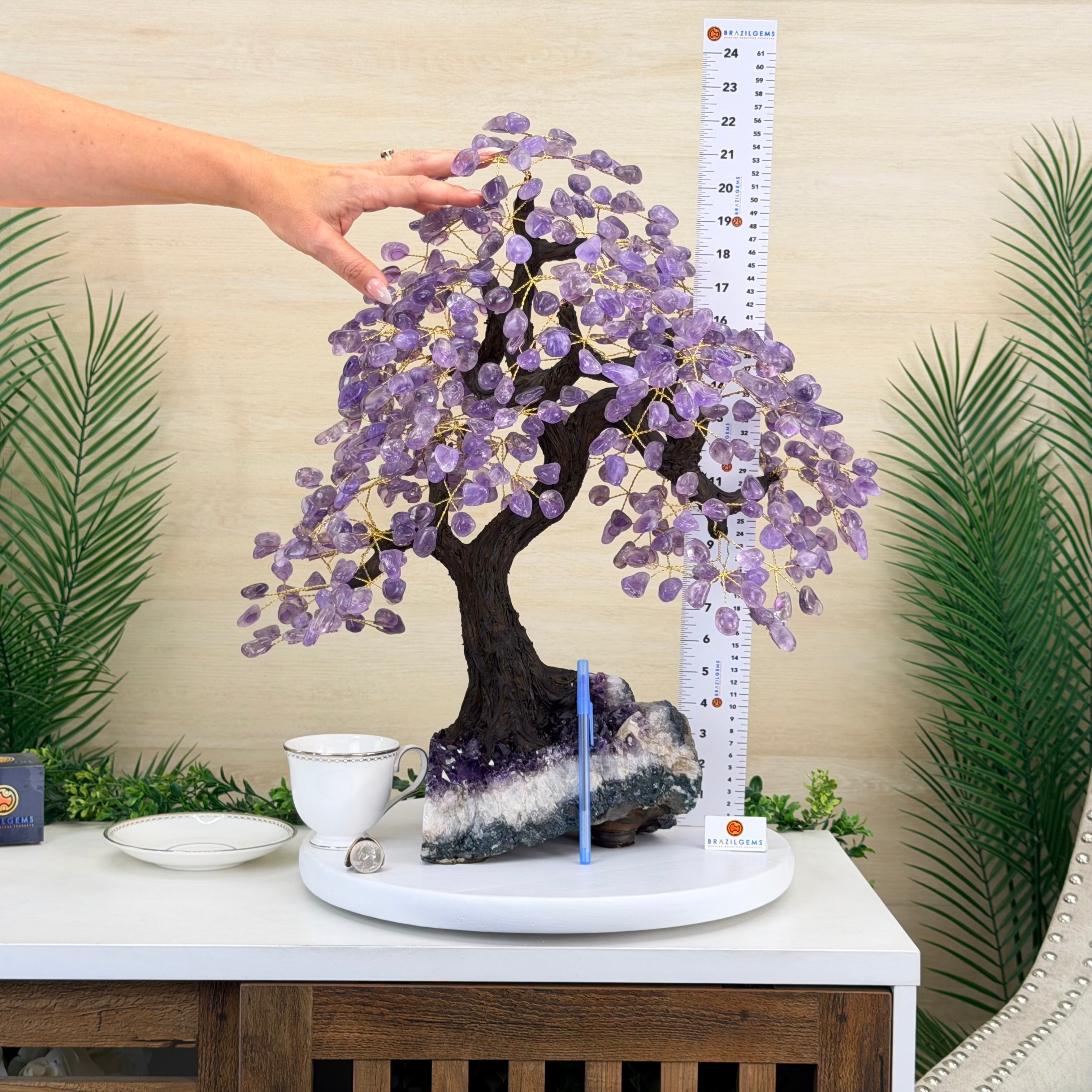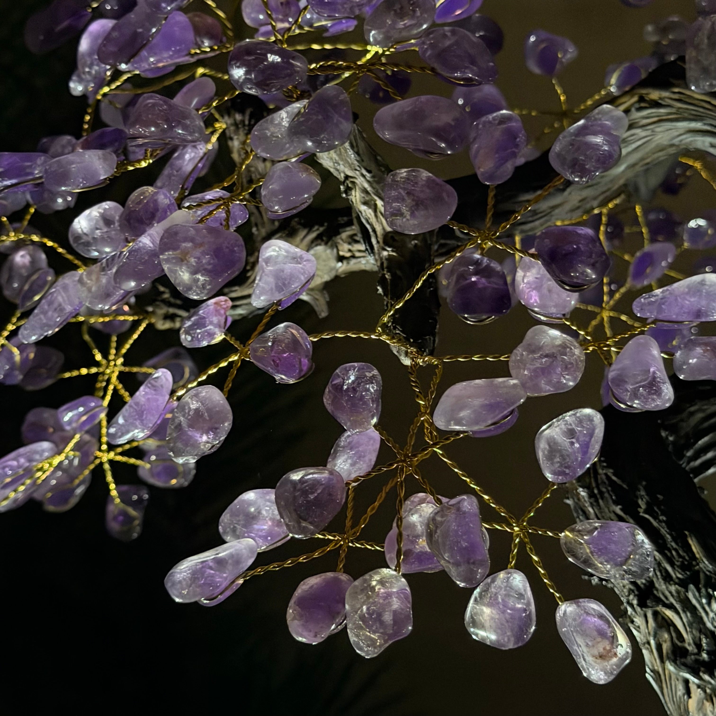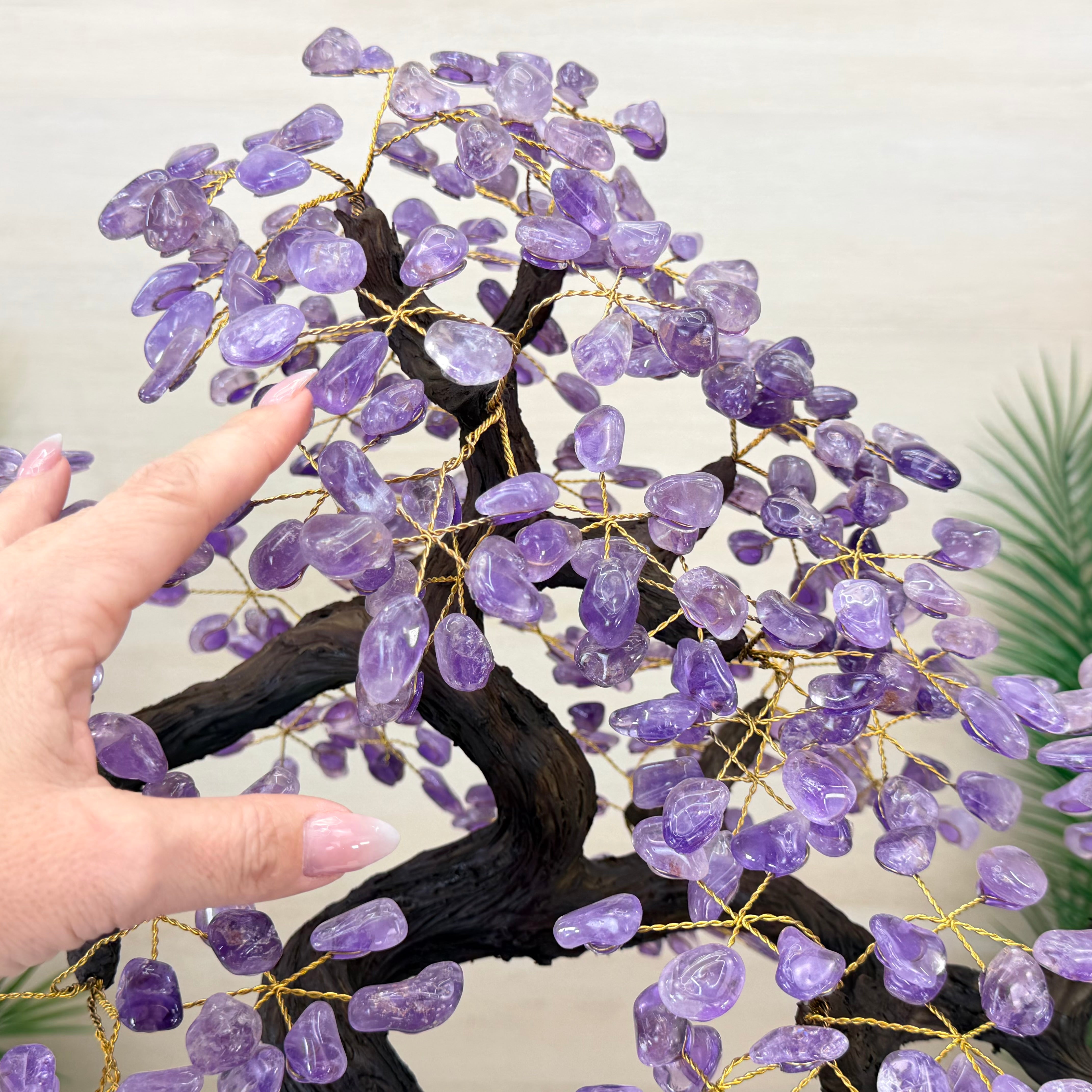 Brazil Gems® brings you Handmade Amethyst Gemstone trees with a crystal cluster base, resin trunk, wired branches and tumbled Amethyst gemstones.