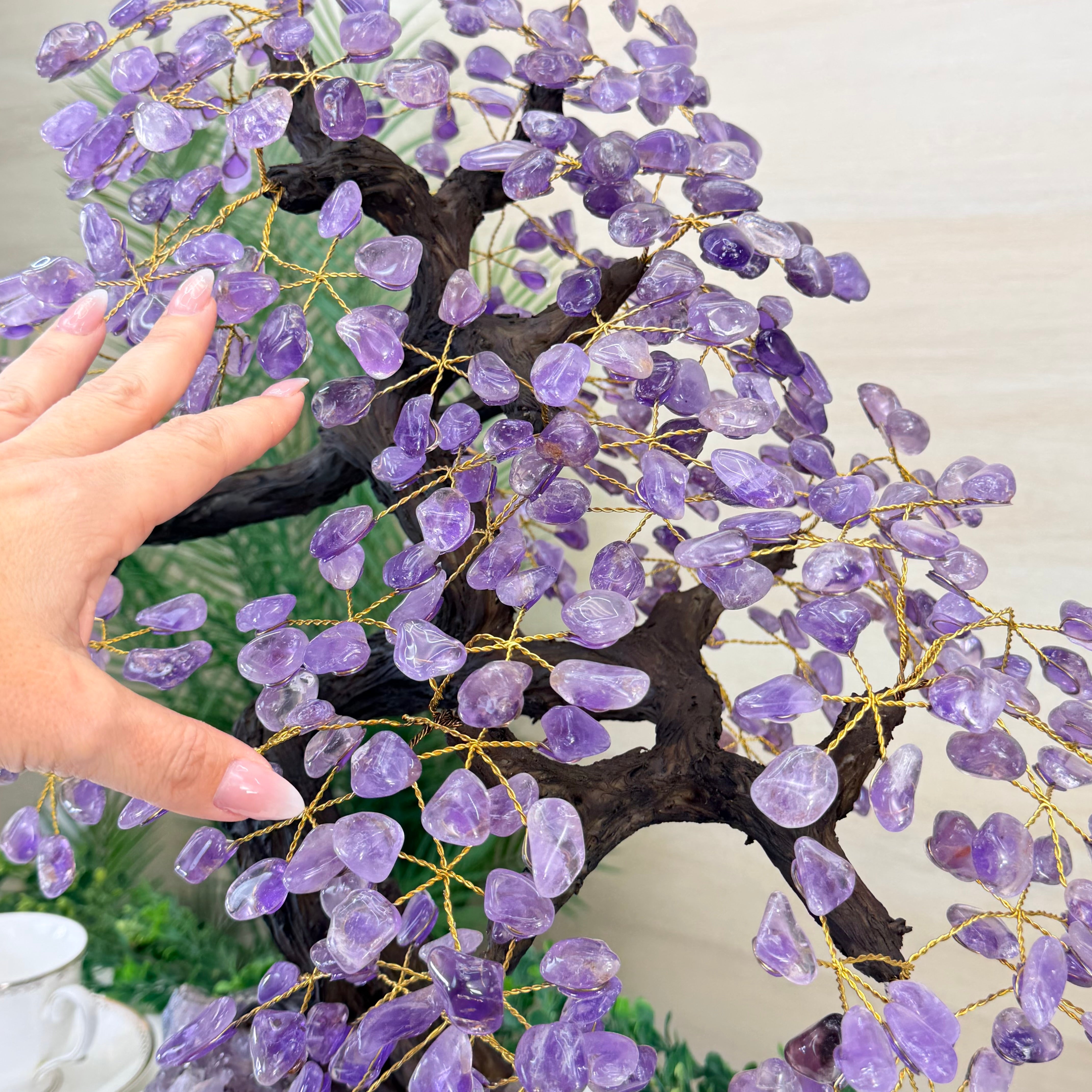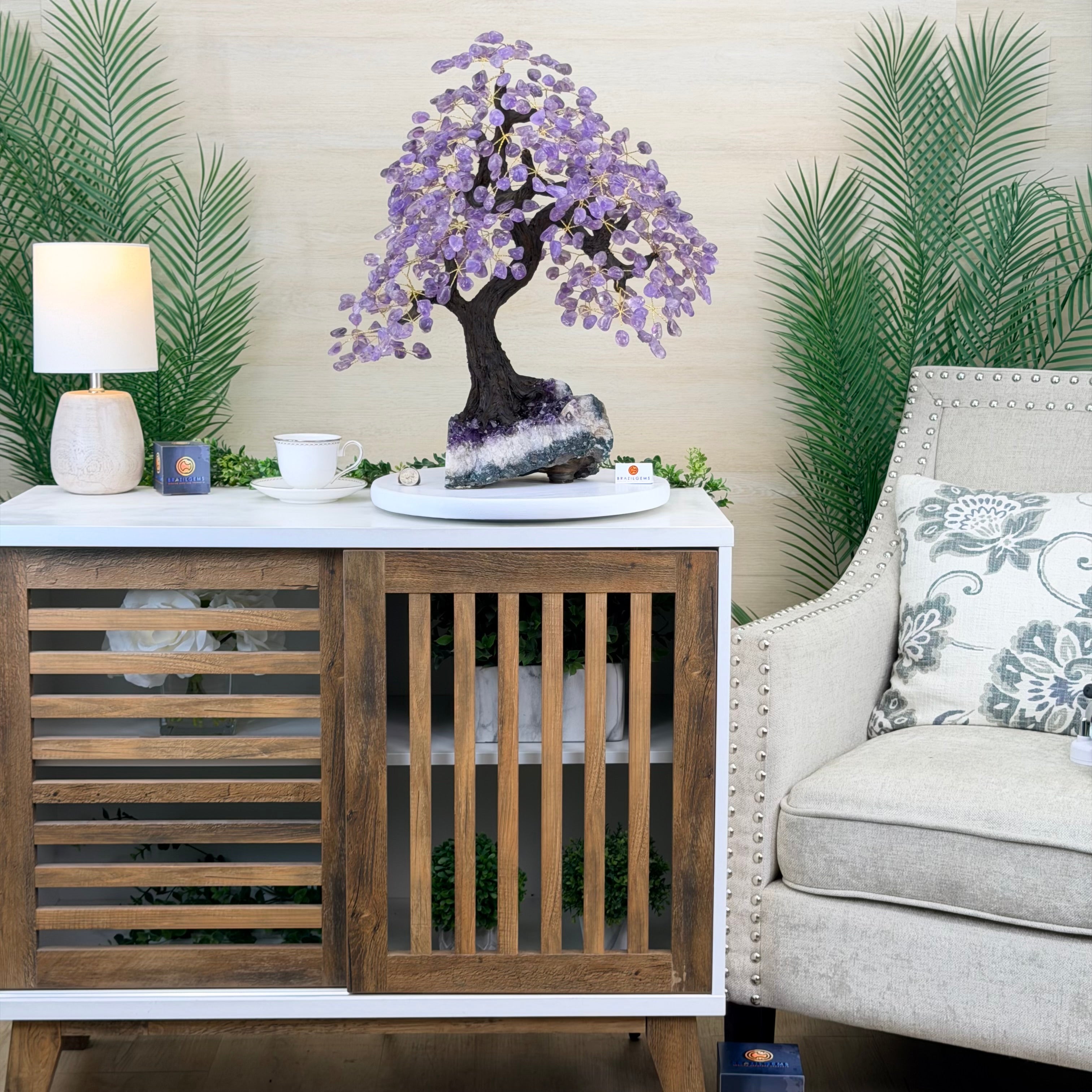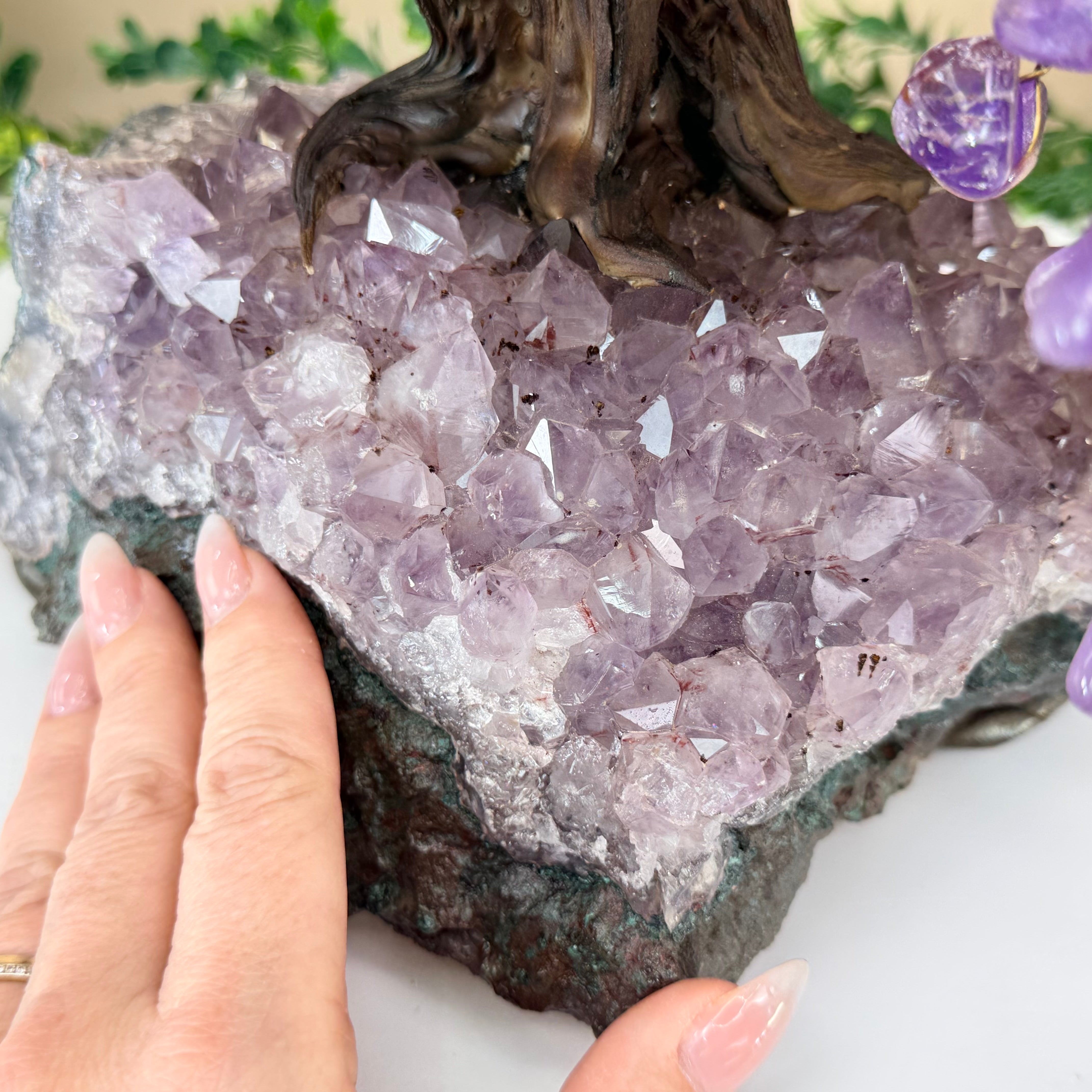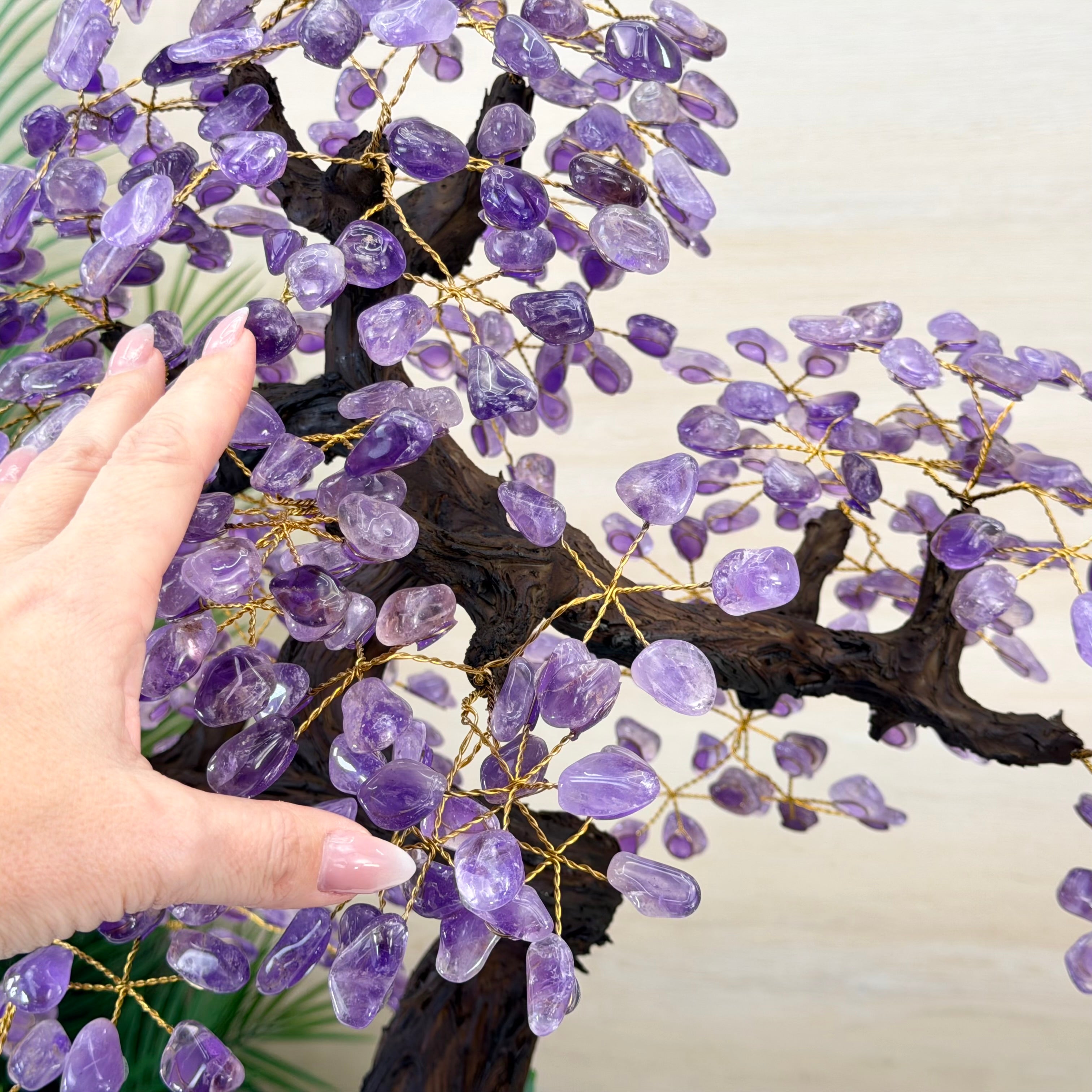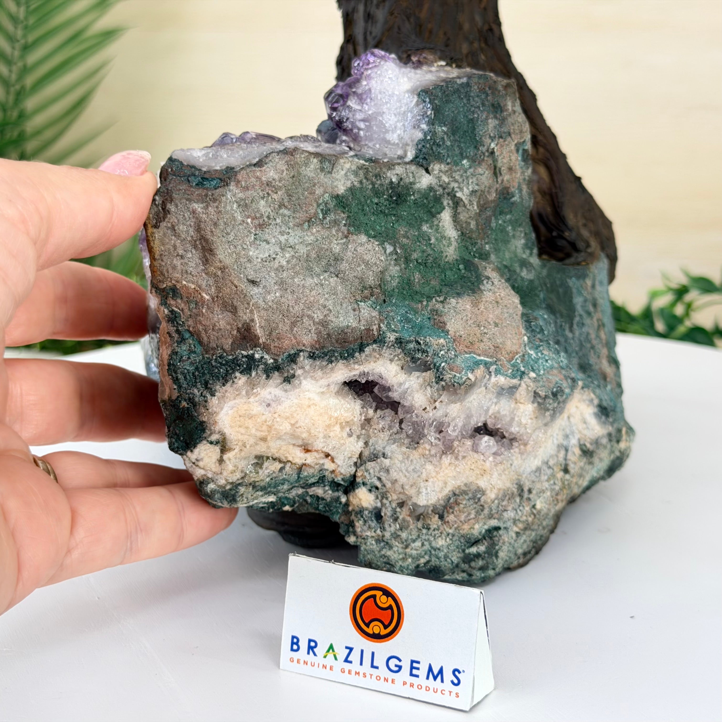 Brazil Gems® brings you Handmade Amethyst Gemstone trees with a crystal cluster base, resin trunk, wired branches and tumbled Amethyst gemstones.