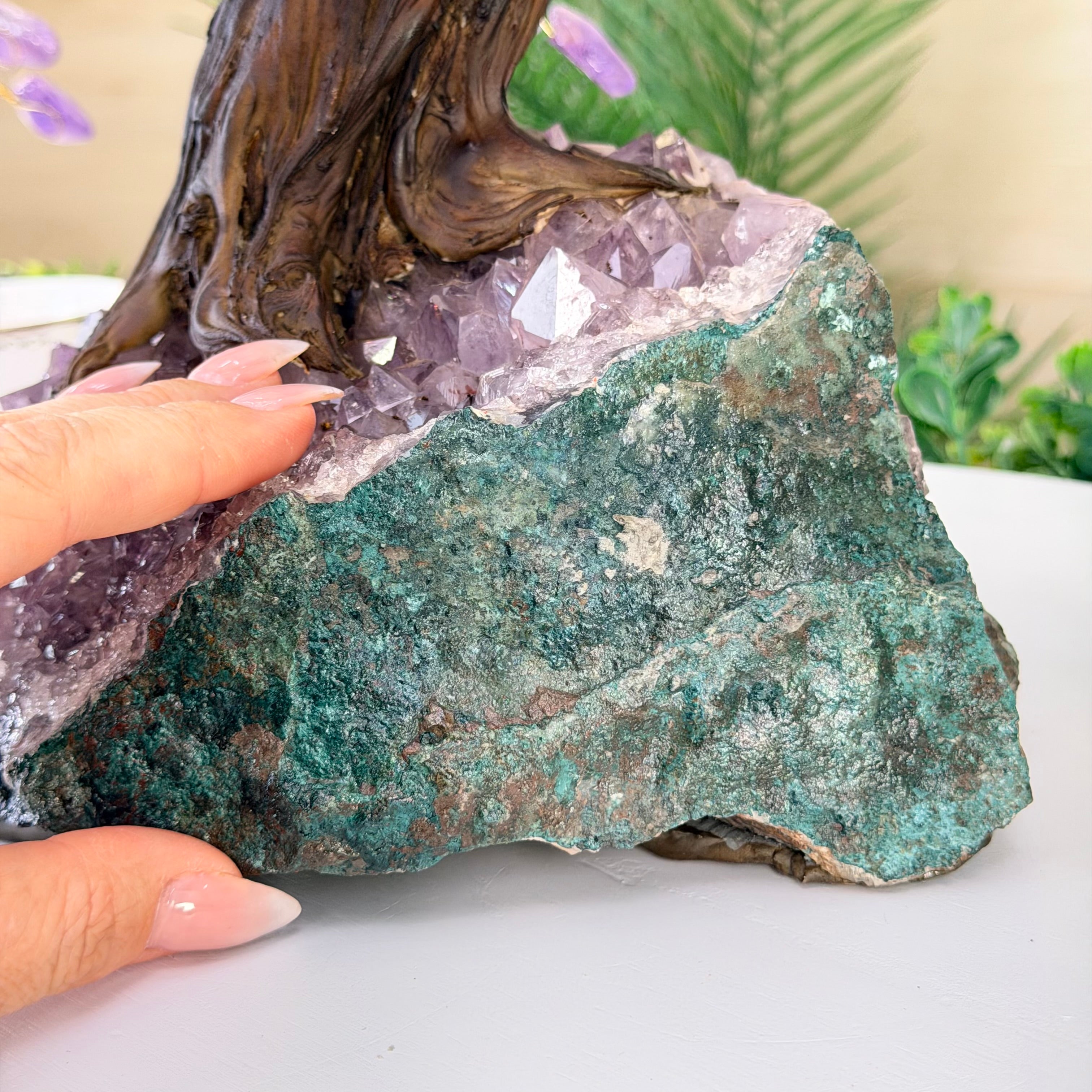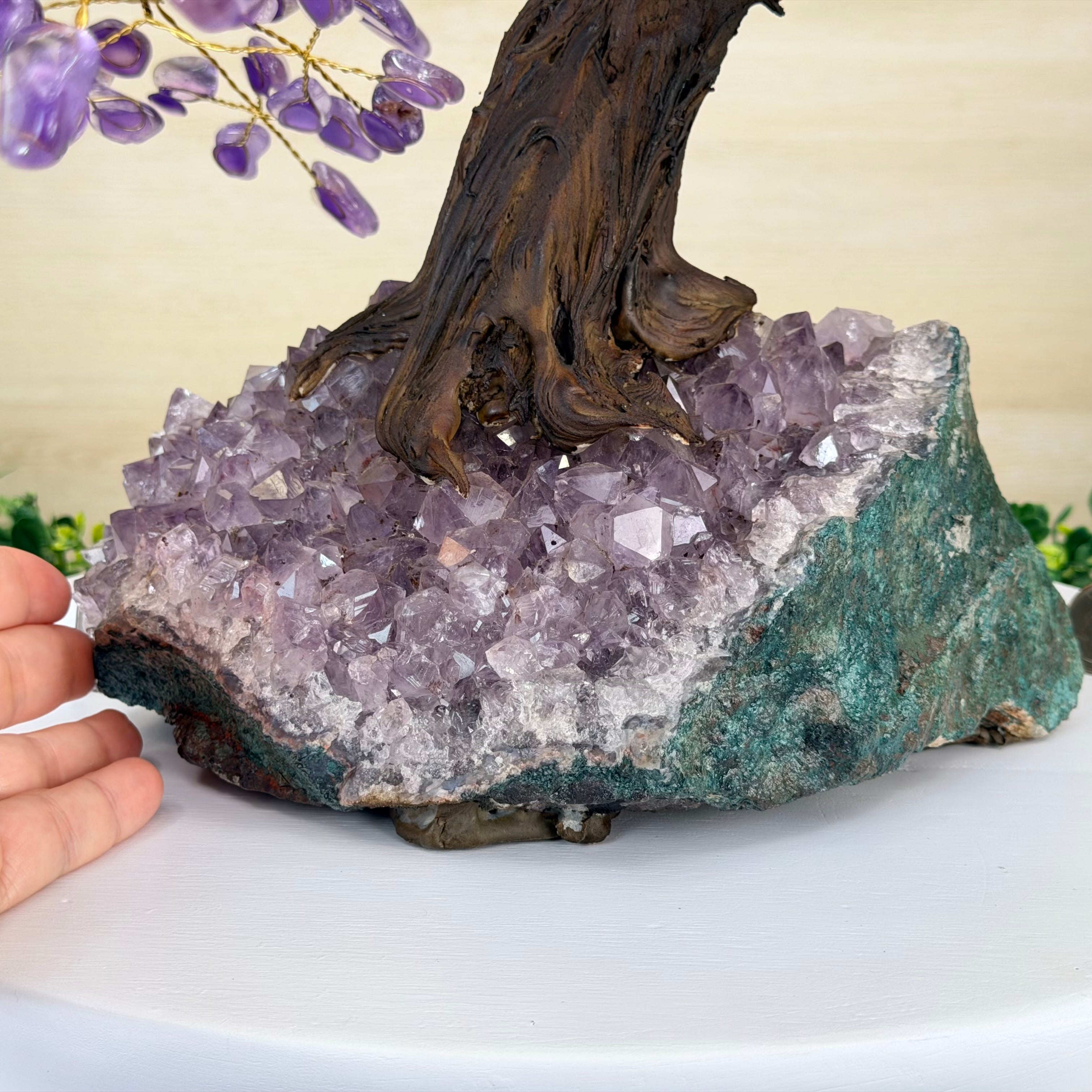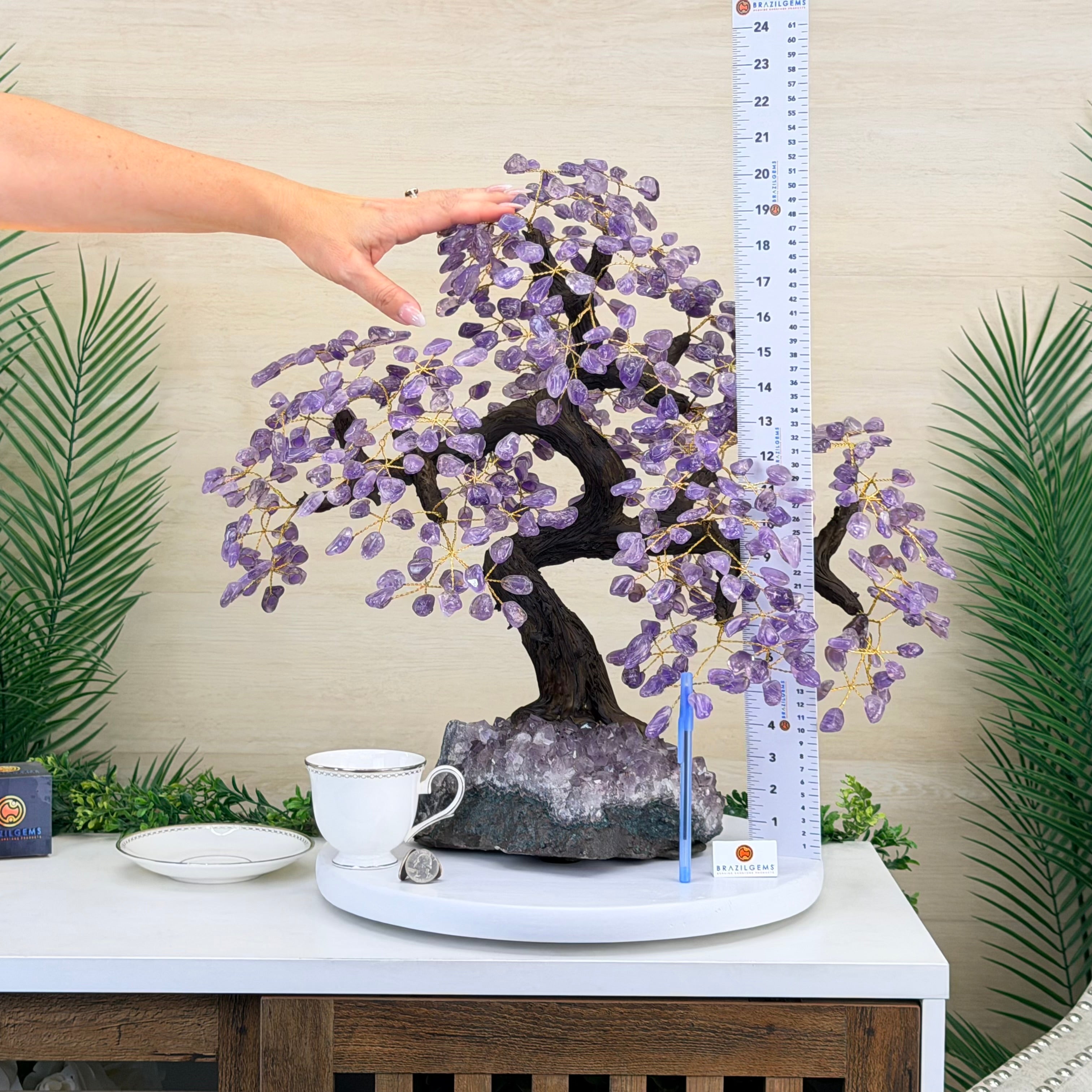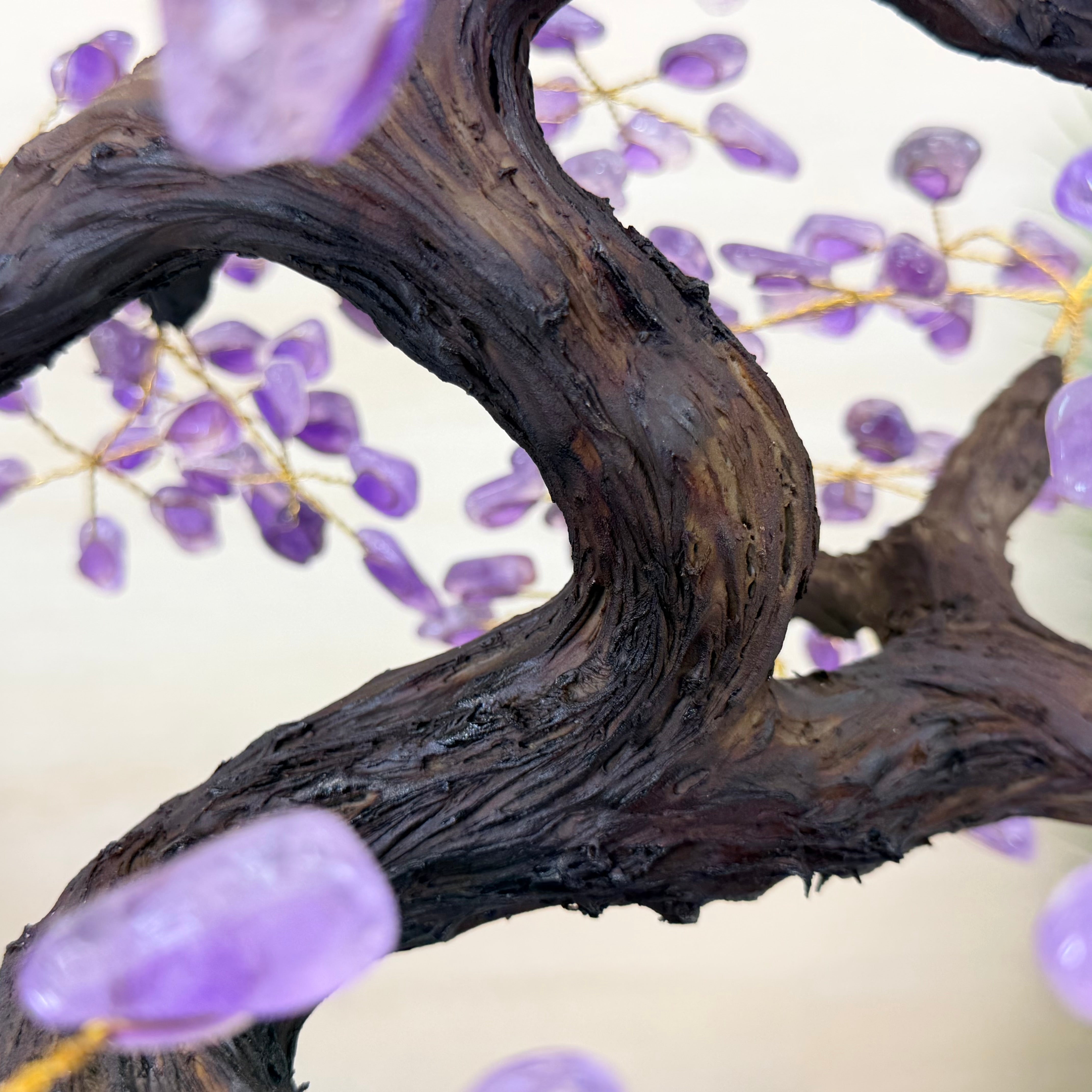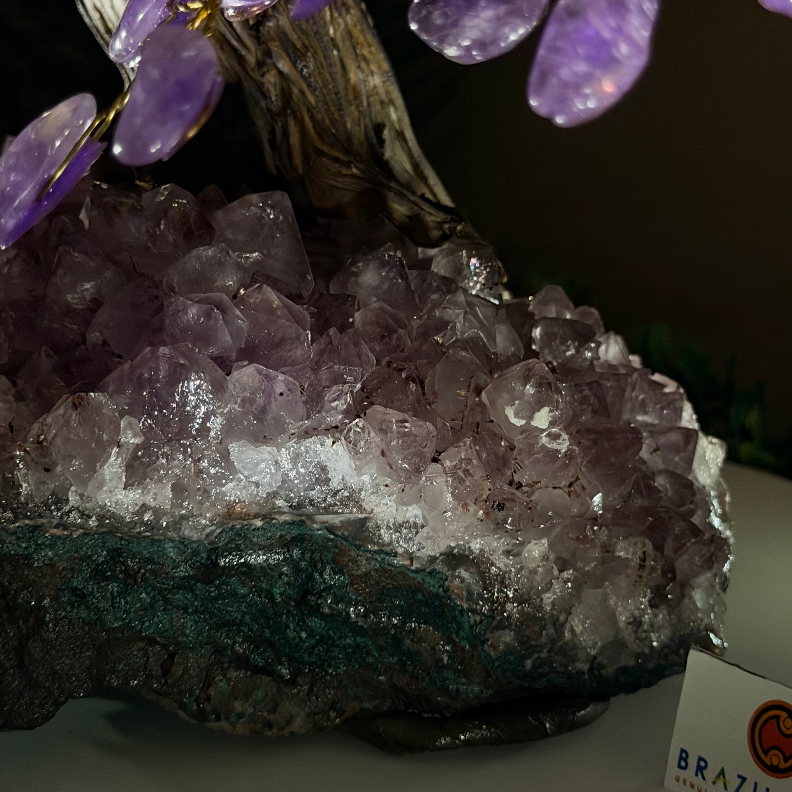 Brazil Gems® brings you Handmade Amethyst Gemstone trees with a crystal cluster base, resin trunk, wired branches and tumbled Amethyst gemstones.