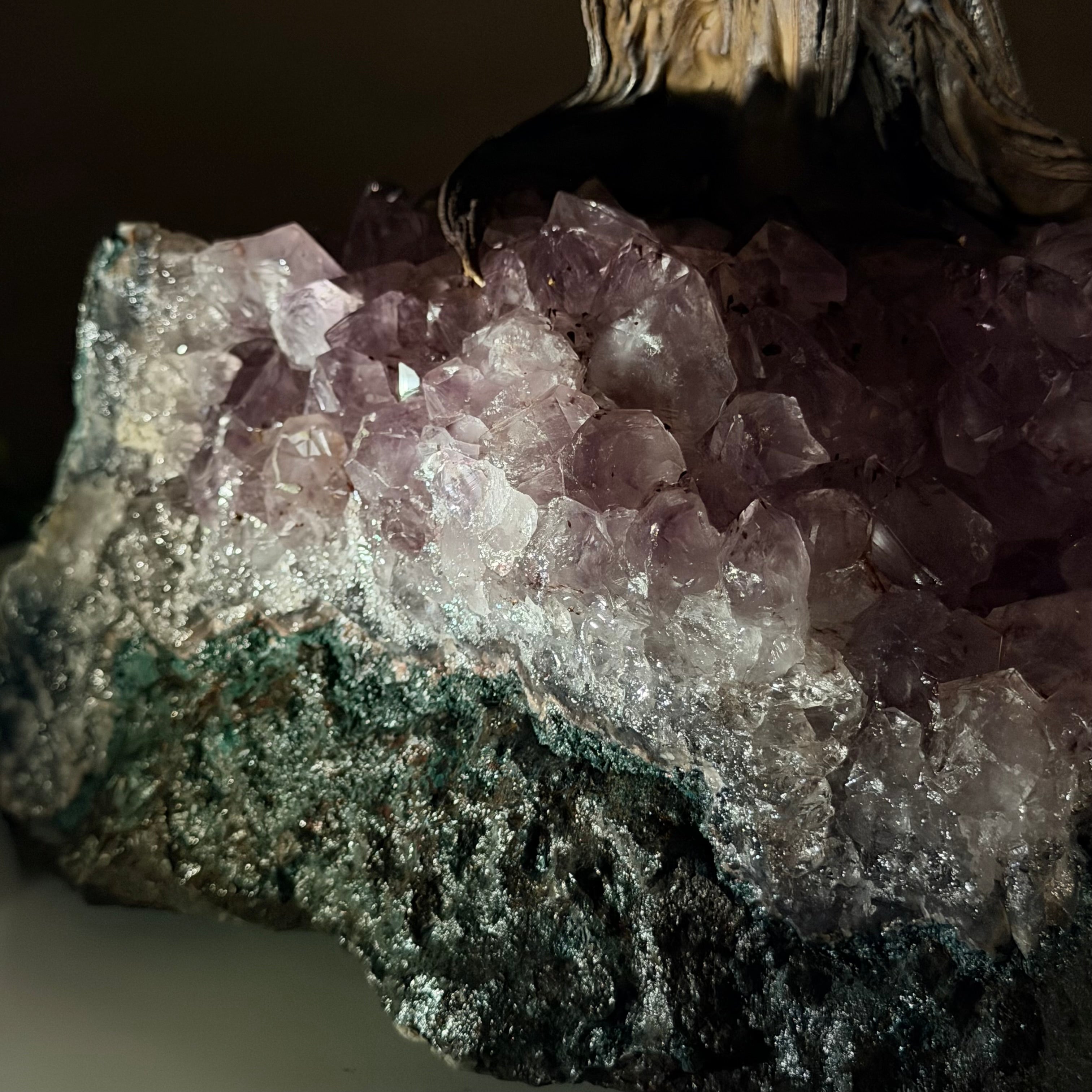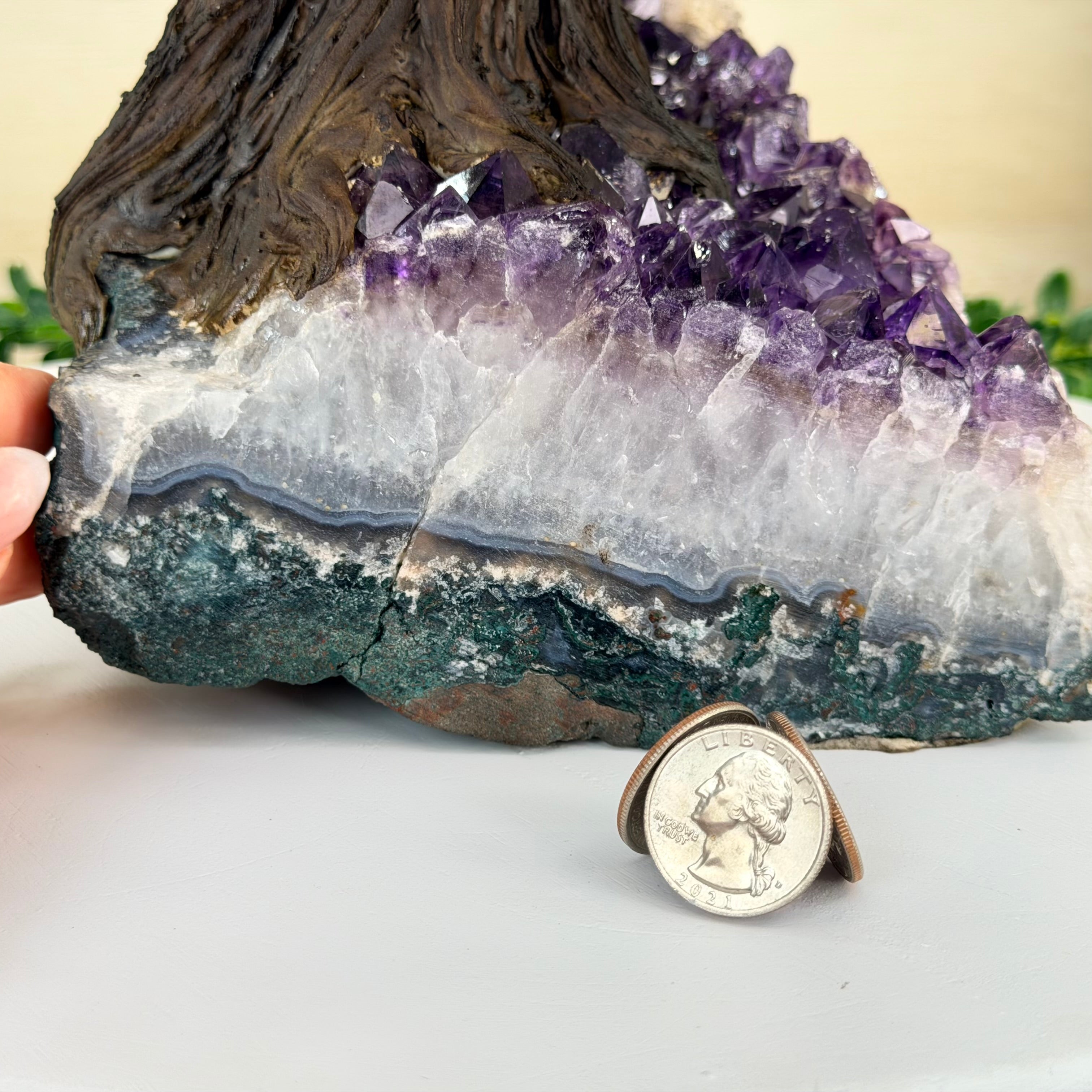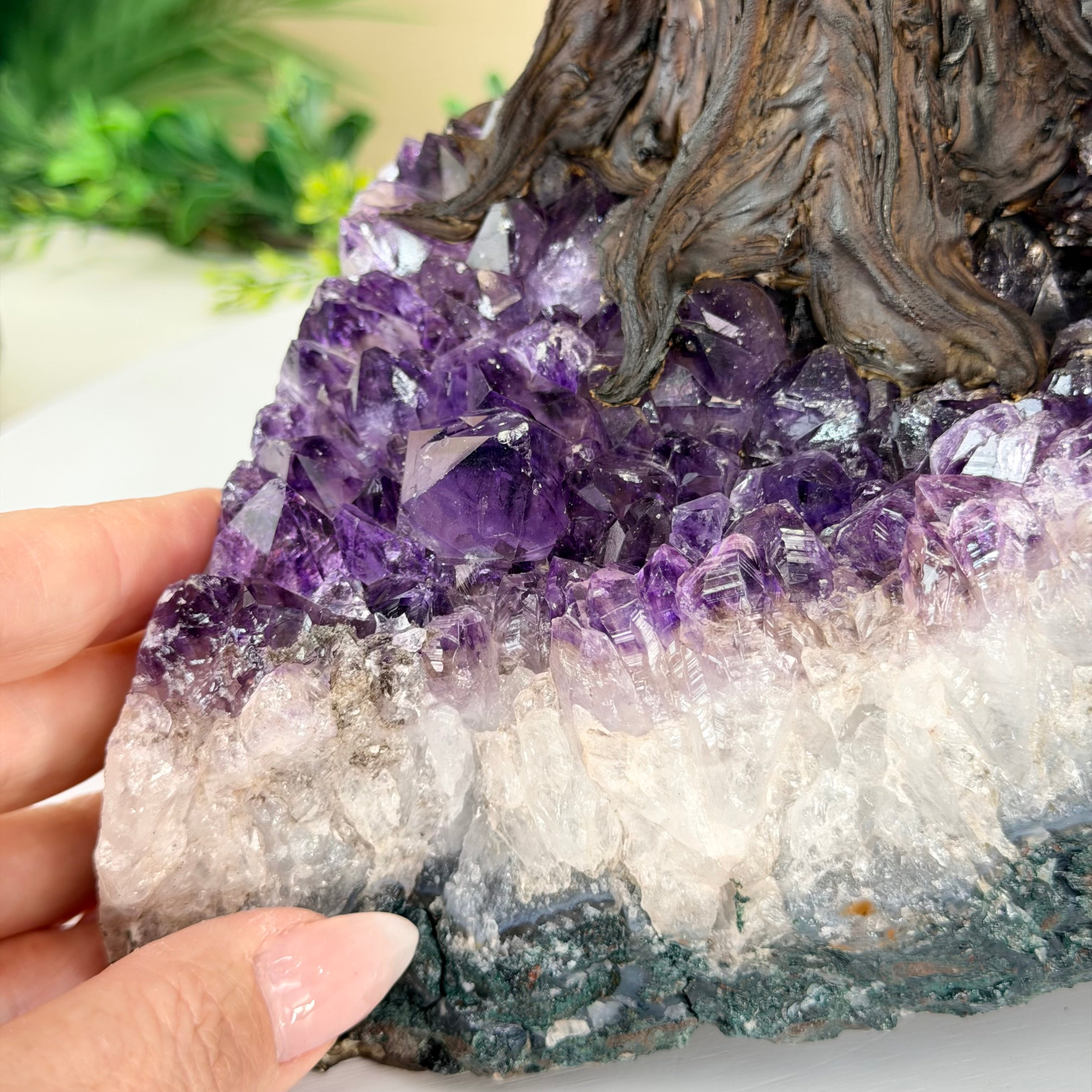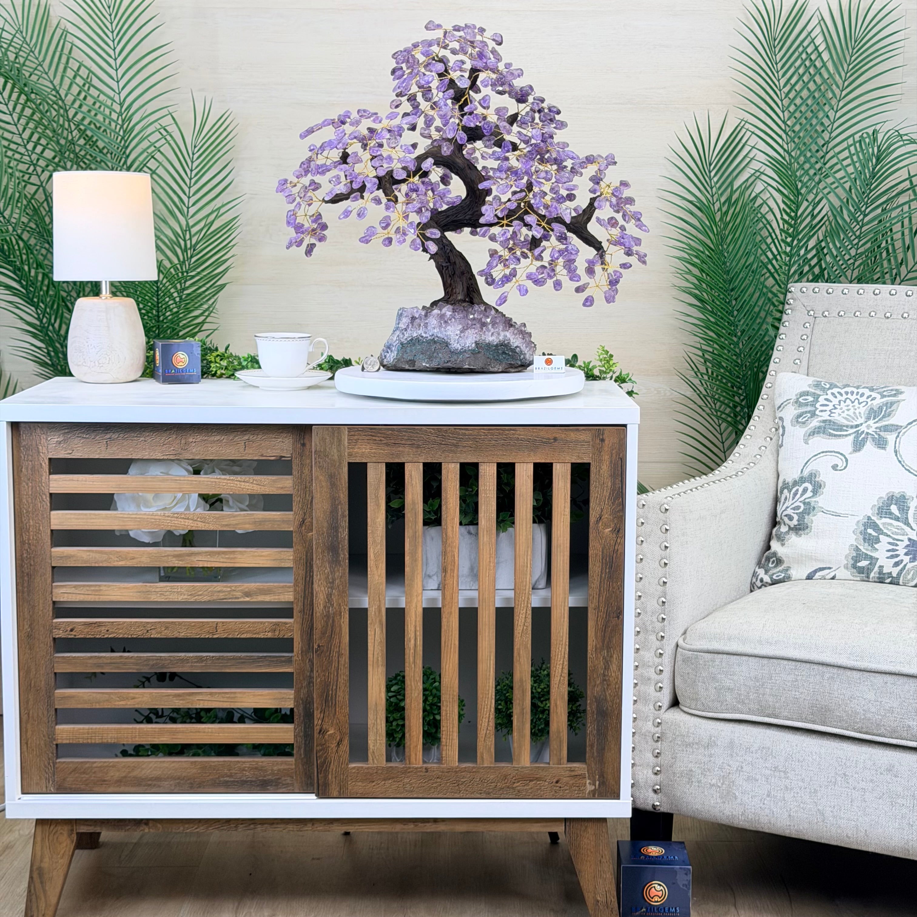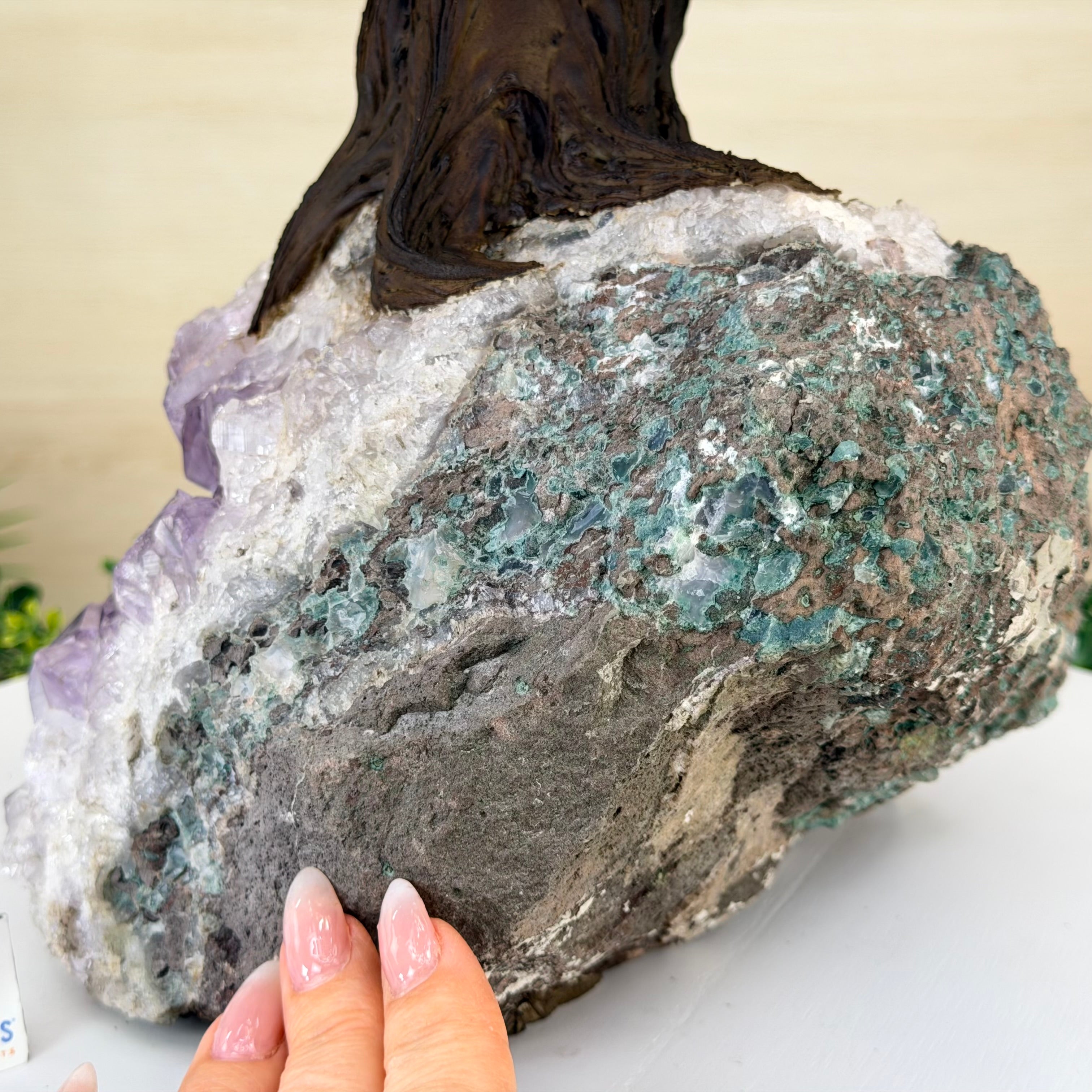 Brazil Gems® brings you Handmade Amethyst Gemstone trees with a crystal cluster base, resin trunk, wired branches and tumbled Amethyst gemstones.