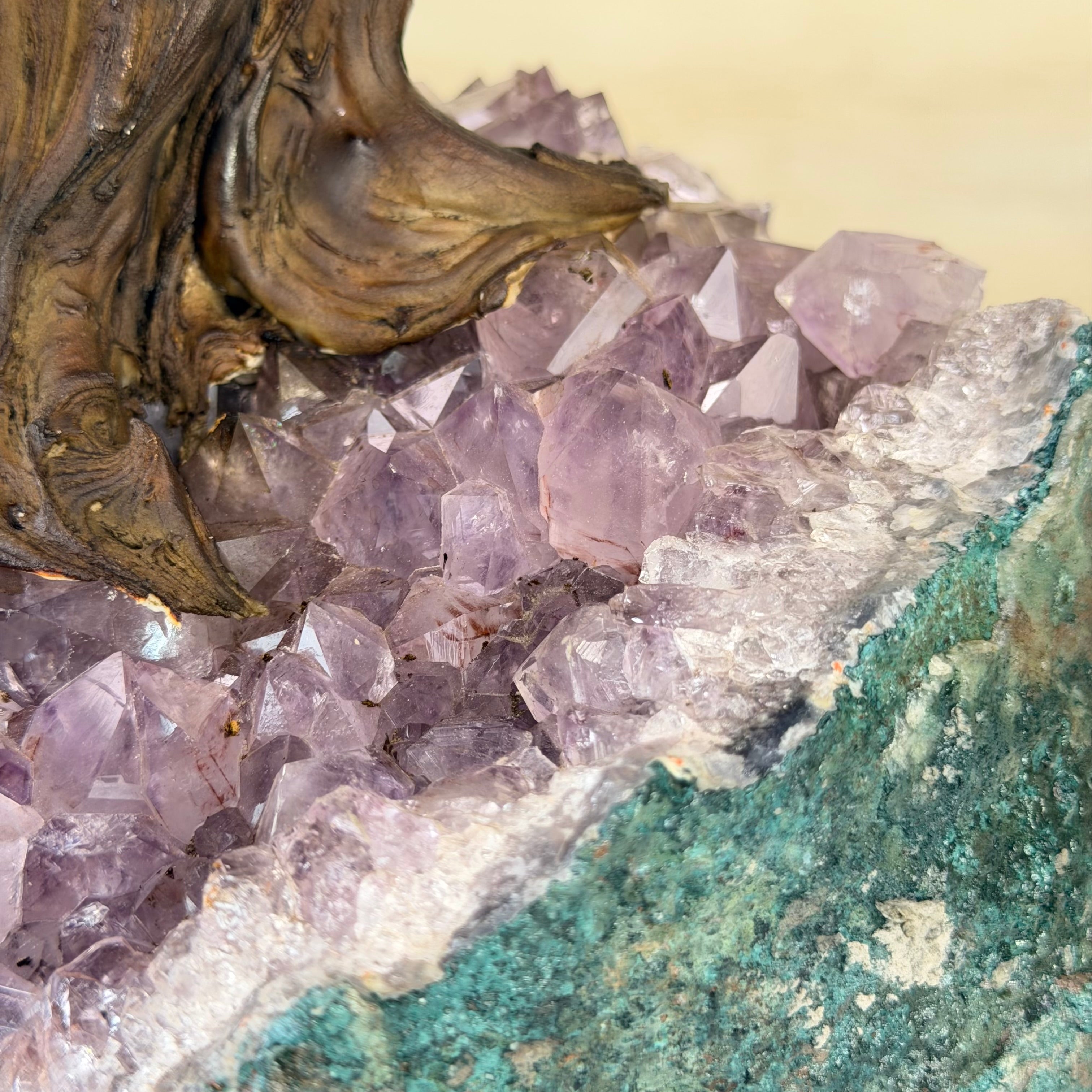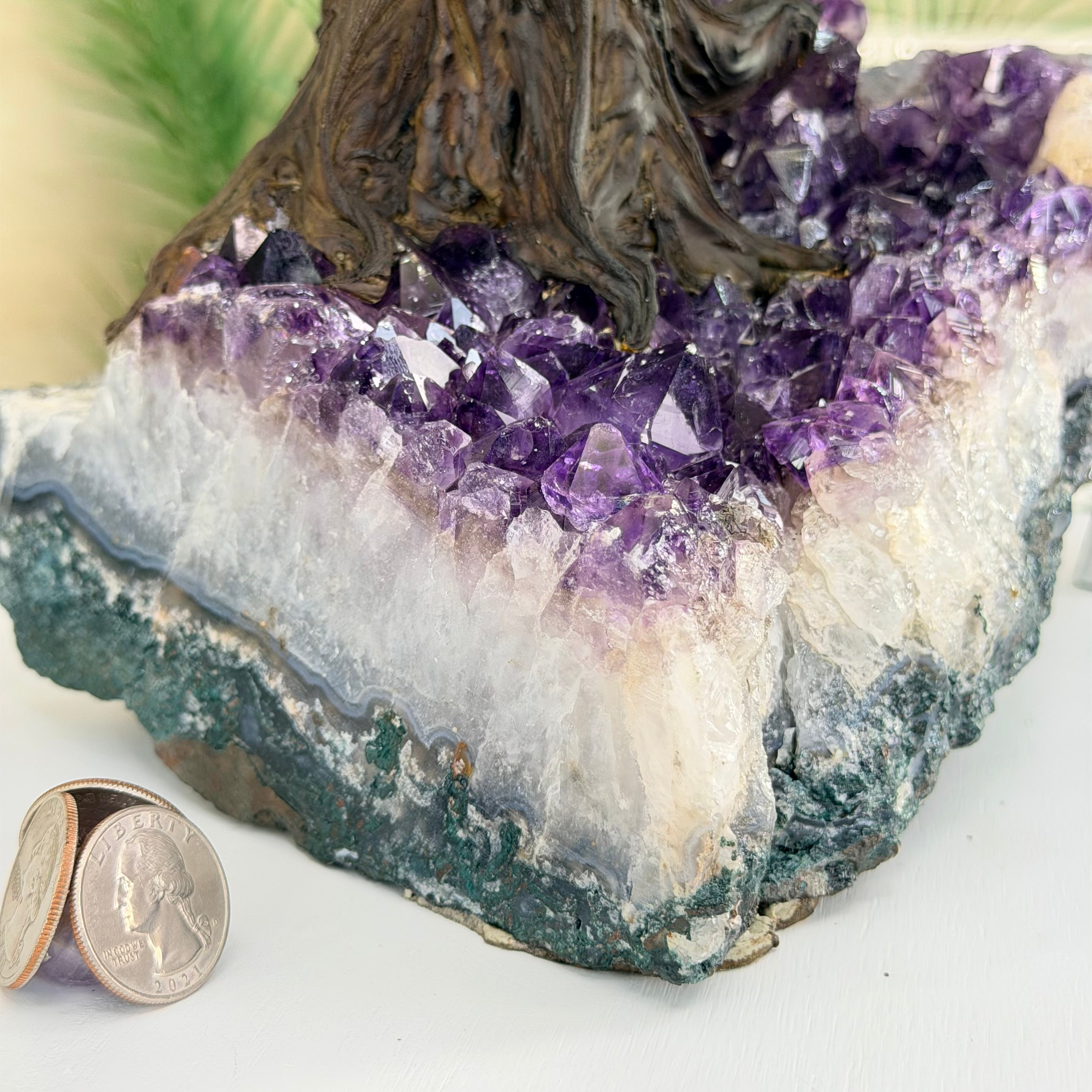 The process to make a gemstone tree like this is very extensive and meticulous. A special amethyst cluster is selected for the base, the resin trunk and branches are crafted by Brazilian artisans and then each gemstone is glued to the tree by hand. MADE IN BRAZIL!