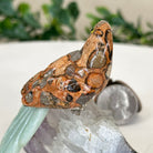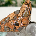 X-Small Hand-Carved Bird's Eye Rhyolite Parrot 3.8" Long on an Amethyst Base #3001-BEPAM-084