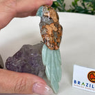 Each intricate detail of the bird is meticulously carved by skilled Brazilian artisans who have mastered the technique that combines the beauty of Brazil's gemstones with their colorful native birds into an amazing art piece. Elevate your space with the timeless charm of our Parrot gemstone bird on an Amethyst base.