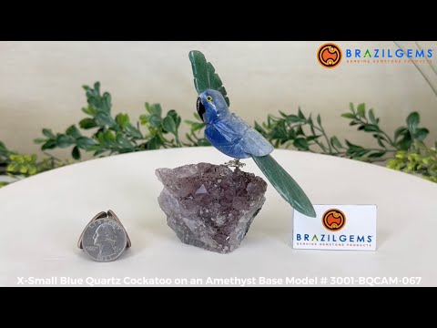 Each intricate detail of the bird is meticulously carved by skilled Brazilian artisans who have mastered the technique that combines the beauty of Brazil's gemstones with their colorful native birds into an amazing art piece. Elevate your space with the timeless charm of our Cockatoo gemstone bird on an Amethyst base.