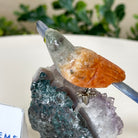X-Small Hand-Carved Orange Apatite Toucan 3.5" Long on an Amethyst Base, #3001-OPTAM-066