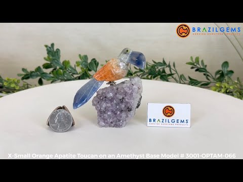 Each intricate detail of the bird is meticulously carved by skilled Brazilian artisans who have mastered the technique that combines the beauty of Brazil's gemstones with their colorful native birds into an amazing art piece. Elevate your space with the timeless charm of our Toucan gemstone bird on an Amethyst base.