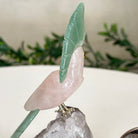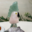 X-Small Hand-Carved Rose Quartz Cockatoo 4.2" Long on an Amethyst Base #3001-RQCAM-070