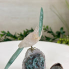 Disclaimer: This is a natural gemstone product sold by Brazil Gems® as is and as you see it in its images and video. The bird figurine has been hand carved out of natural gemstones and constructed together to give it its unique look. It and its cluster base may contain natural imperfections as well as imperfections, broken edges and repairs from the hand carving, extraction, mounting and prepping processes. The cluster base has a small hole drilled in the top for the bird to mount into. The crystal bird detaches from its base for shipping purposes. At Brazil Gems® we make every effort to get measurements as exact as possible but they are done by human hands and eyes and therefore may have minor discrepancies.