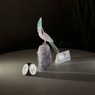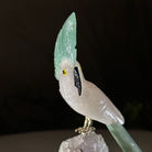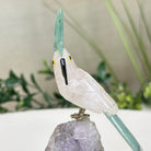 Each intricate detail of the bird is meticulously carved by skilled Brazilian artisans who have mastered the technique that combines the beauty of Brazil's gemstones with their colorful native birds into an amazing art piece. Elevate your space with the timeless charm of our Cockatoo gemstone bird on an Amethyst base.