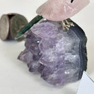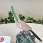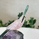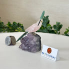 X-Small Hand-Carved Rose Quartz Cockatoo 4.4" Long on an Amethyst Base #3001-RQCAM-073