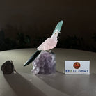 Each intricate detail of the bird is meticulously carved by skilled Brazilian artisans who have mastered the technique that combines the beauty of Brazil's gemstones with their colorful native birds into an amazing art piece. Elevate your space with the timeless charm of our Cockatoo gemstone bird on an Amethyst base.