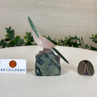 Disclaimer: This is a natural gemstone product sold by Brazil Gems® as is and as you see it in its images and video. The bird figurine has been hand carved out of natural gemstones and constructed together to give it its unique look. It and its cluster base may contain natural imperfections as well as imperfections, broken edges and repairs from the hand carving, extraction, mounting and prepping processes. The cluster base has a small hole drilled in the top for the bird to mount into. The crystal bird detaches from its base for shipping purposes. At Brazil Gems® we make every effort to get measurements as exact as possible but they are done by human hands and eyes and therefore may have minor discrepancies.