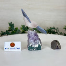Disclaimer: This is a natural gemstone product sold by Brazil Gems® as is and as you see it in its images and video. The bird figurine has been hand carved out of natural gemstones and constructed together to give it its unique look. It and its cluster base may contain natural imperfections as well as imperfections, broken edges and repairs from the hand carving, extraction, mounting and prepping processes. The cluster base has a small hole drilled in the top for the bird to mount into. The crystal bird detaches from its base for shipping purposes. At Brazil Gems® we make every effort to get measurements as exact as possible but they are done by human hands and eyes and therefore may have minor discrepancies.