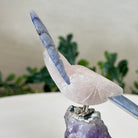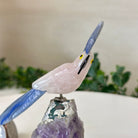 X-Small Hand-Carved Rose Quartz Cockatoo 4.6" Long on an Amethyst Base #3001-RQCAM-076