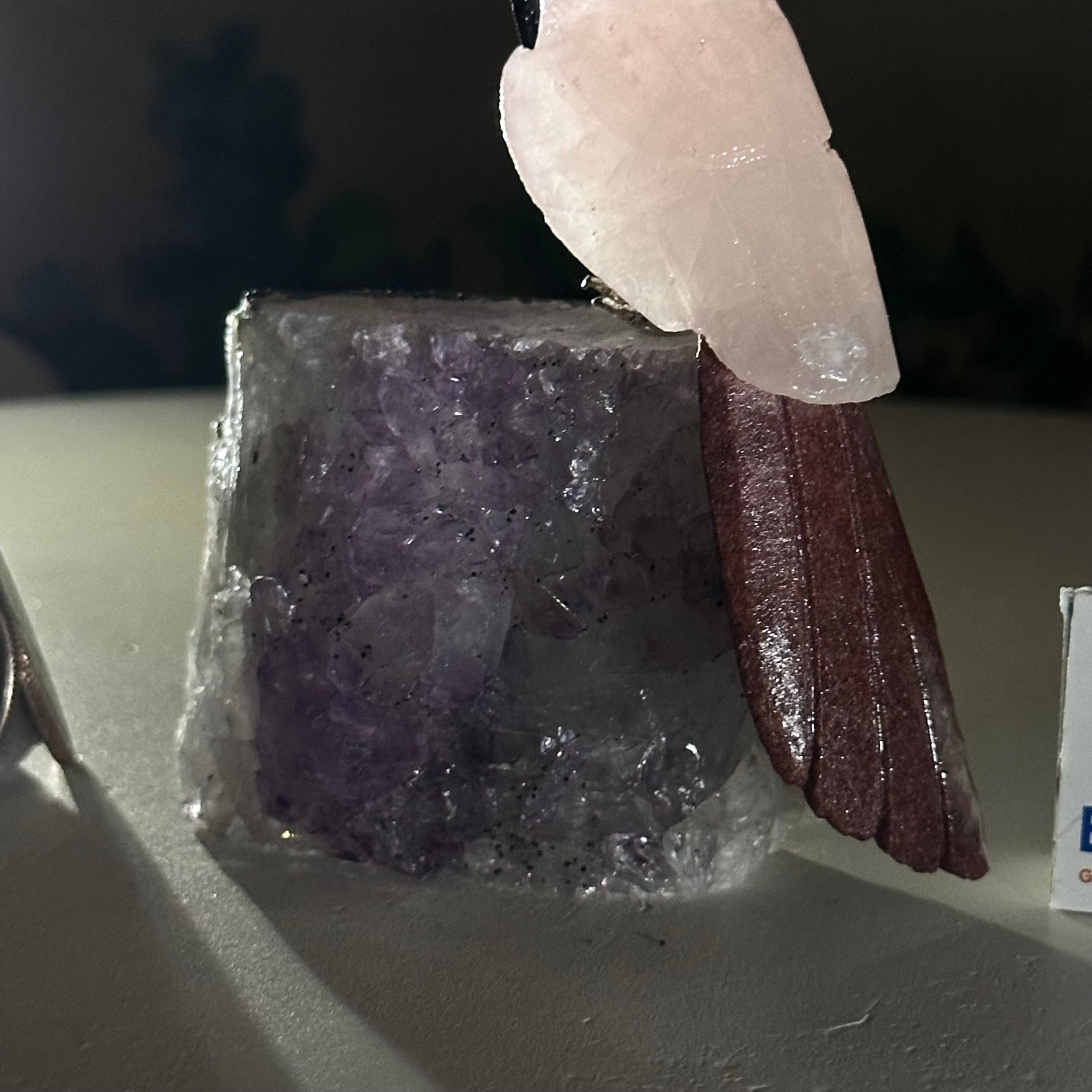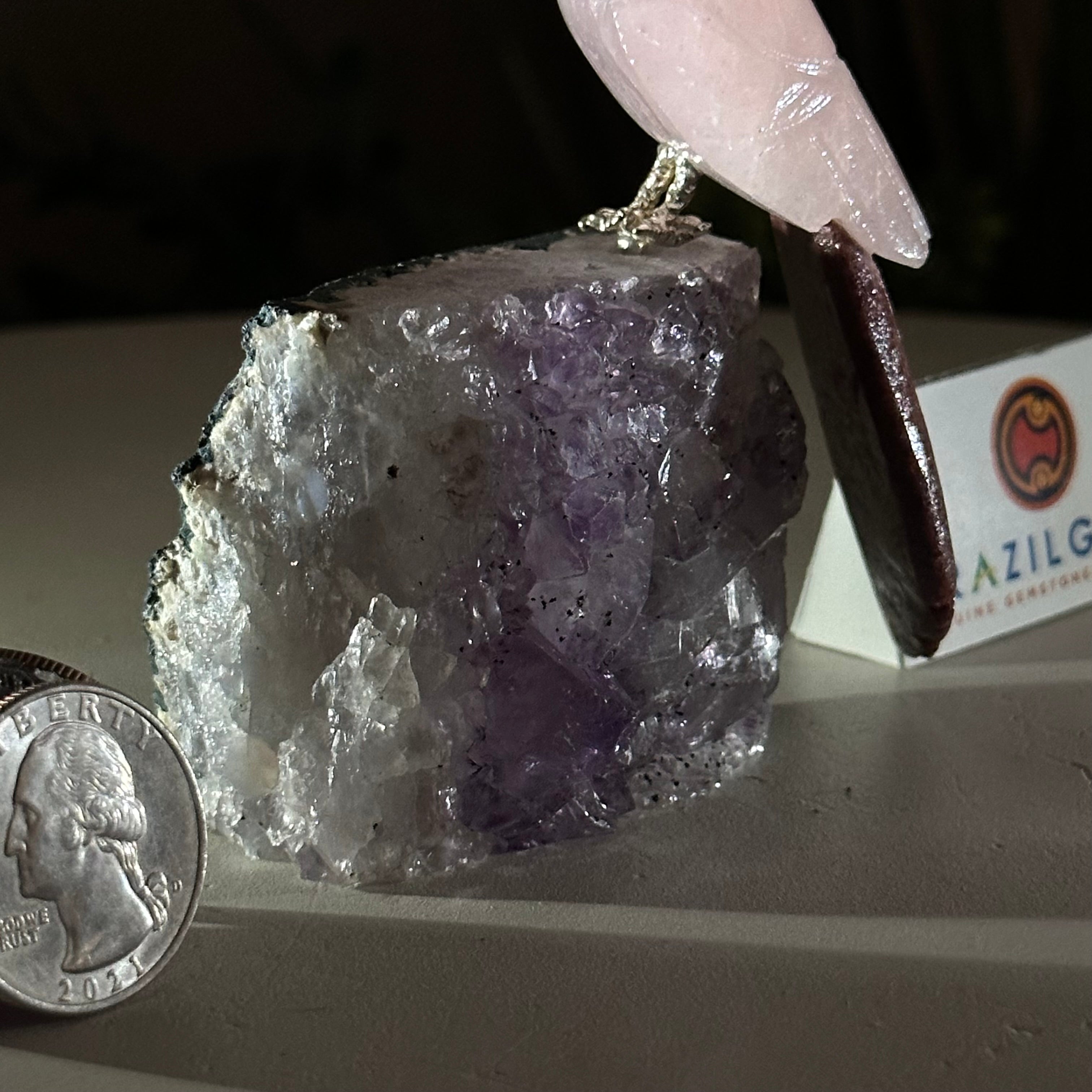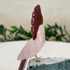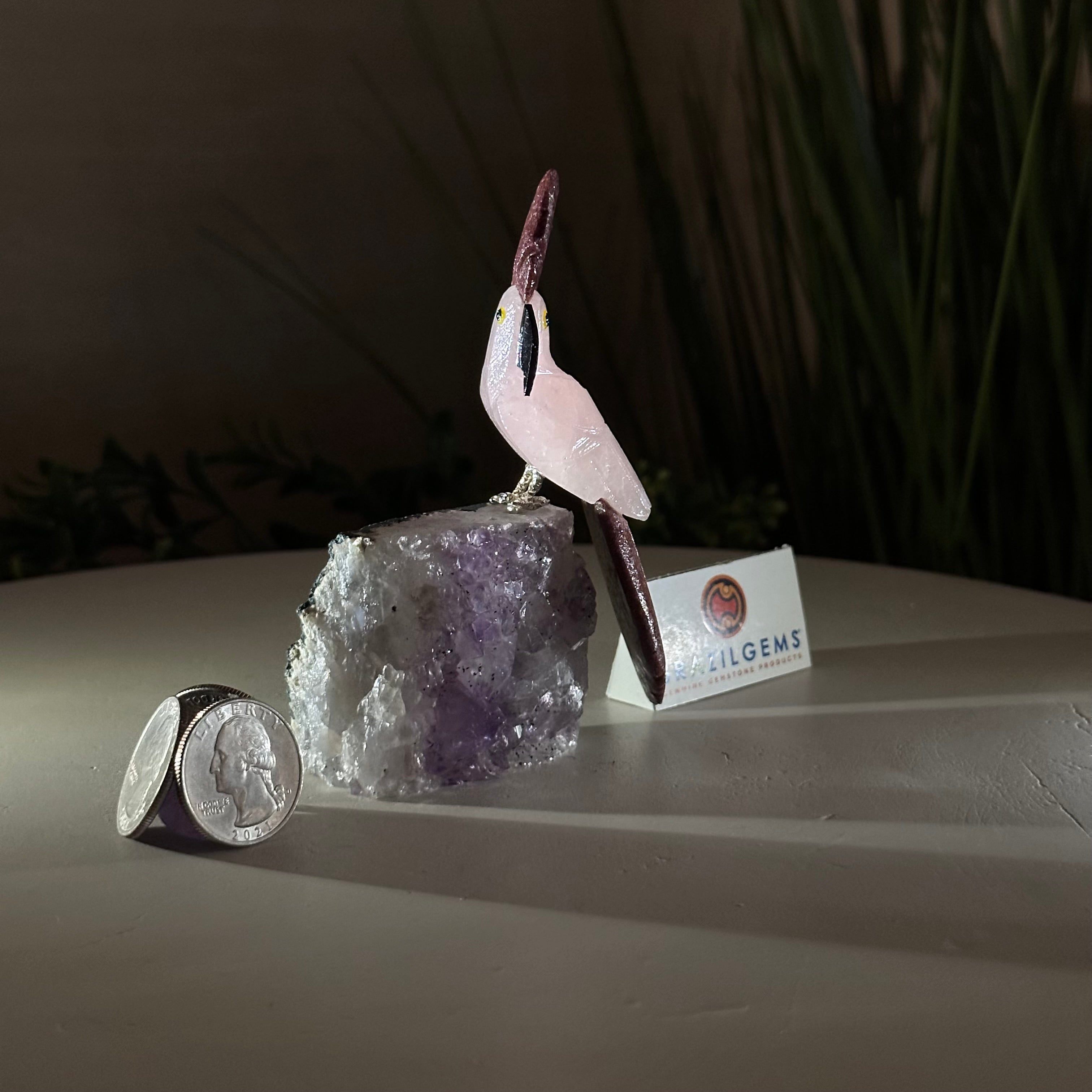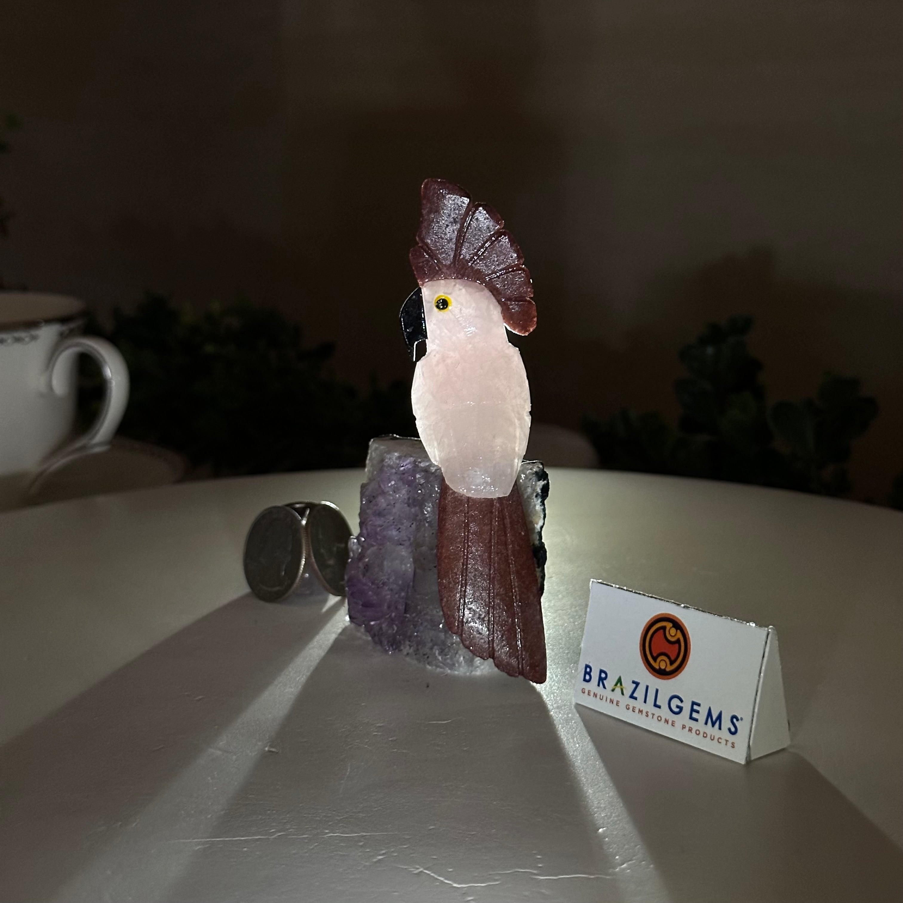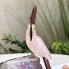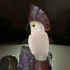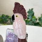 X-Small Hand-Carved Rose Quartz Cockatoo 4.3" Long on an Amethyst Base #3001-RQCAM-077