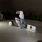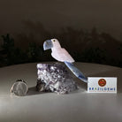 Each intricate detail of the bird is meticulously carved by skilled Brazilian artisans who have mastered the technique that combines the beauty of Brazil's gemstones with their colorful native birds into an amazing art piece. Elevate your space with the timeless charm of our Toucan gemstone bird on an Amethyst base.