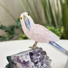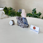 X-Small Hand-Carved Rose Quartz Toucan 3.7" Long on an Amethyst Base #3001-RQTAM-065