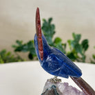 X-Small Hand-Carved Sodalite Cockatoo 4.2" Long on an Amethyst Base #3001-SOCAM-068