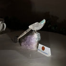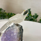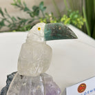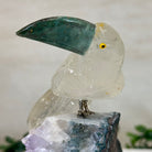 Small Hand-Carved Clear Quartz Toucan 4.6" Long on an Amethyst Base #3002-CQTAM-049