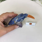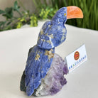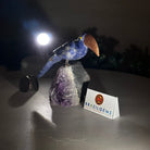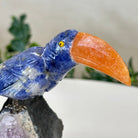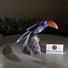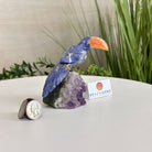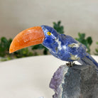 Small Hand-Carved Sodalite Toucan 5.1" Long on an Amethyst Base #3002-SOTAM-051